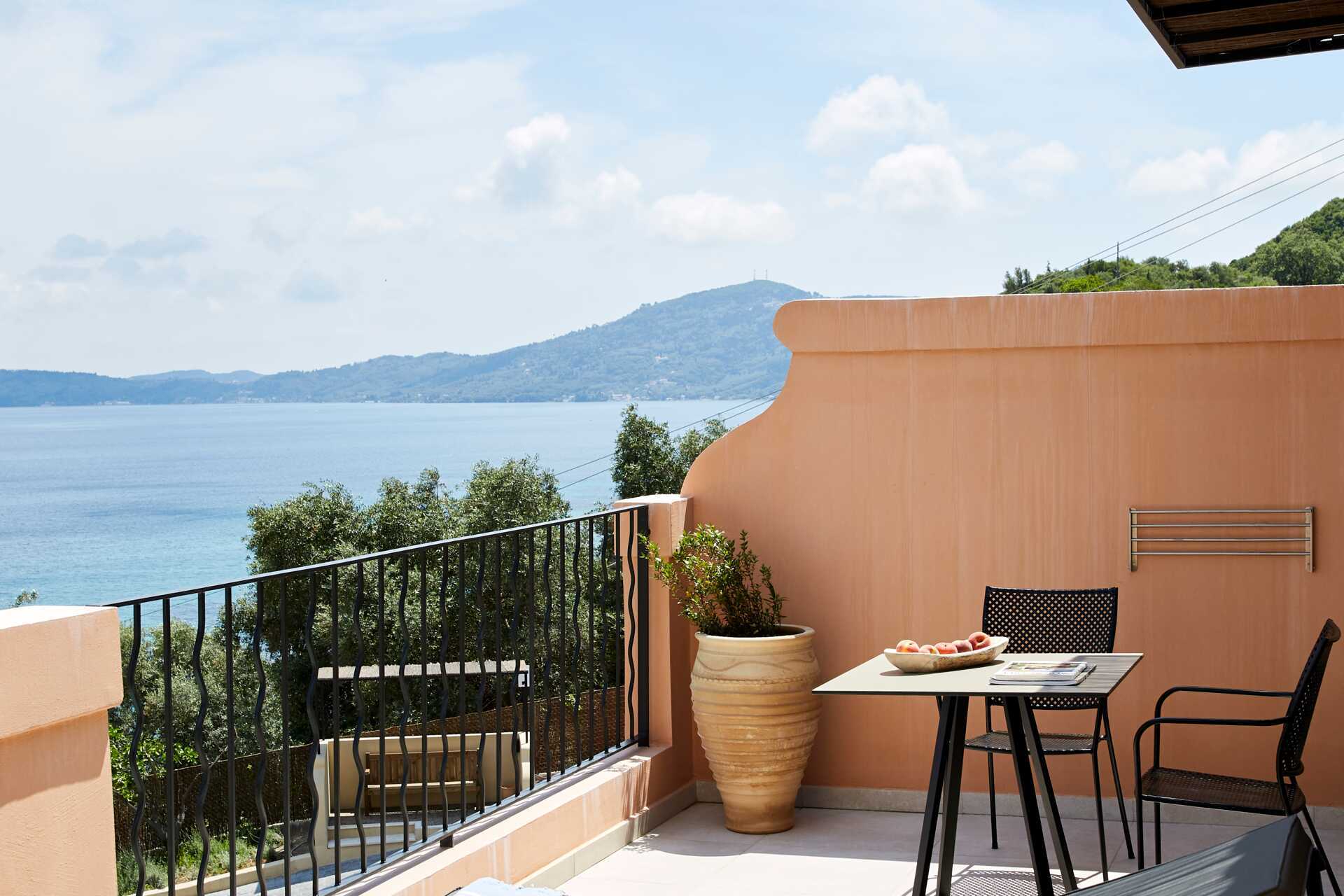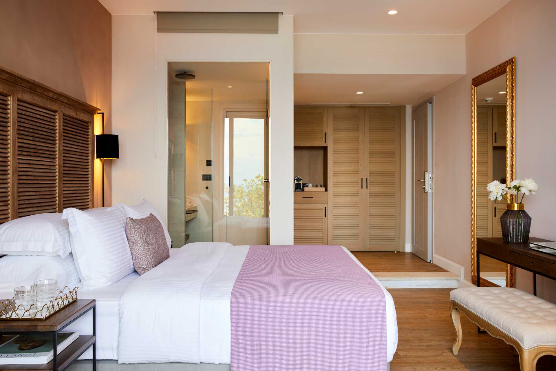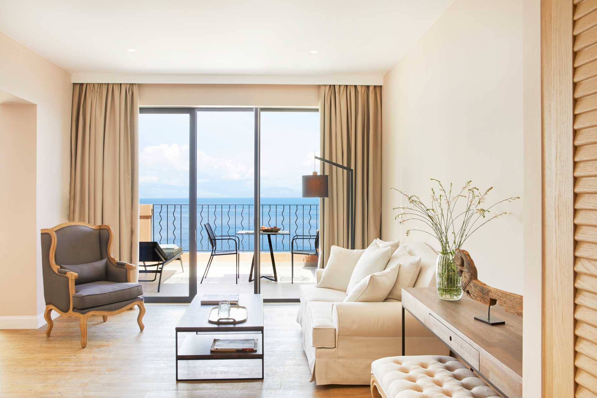 Juniorsvit med balkong eller terrass med havsutsikt. På uteplatsen finns en privat pool och två solstolar. I rummet finns en sittgrupp med en soffa. En dubbelsäng eller två enkelsängar. Wifi, luftkonditionering samt deponering ingår. Minibar. Vattenkokare, Nespressomaskin samt kaffe och te. Tv med internationella kanaler. Hårtork. Öppen planlösning till tvättställ, dusch och wc. Städning 7 ggr/vecka.