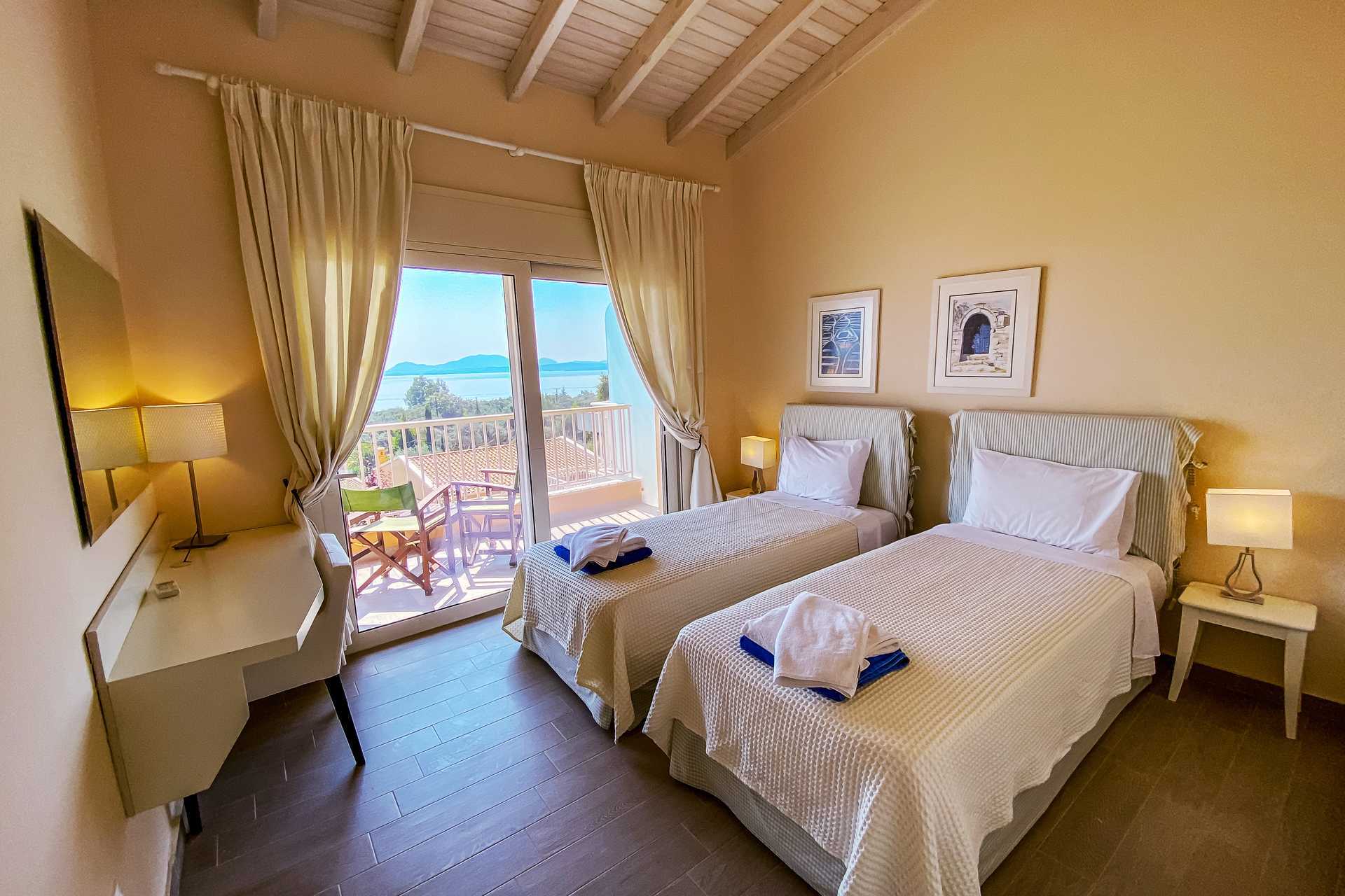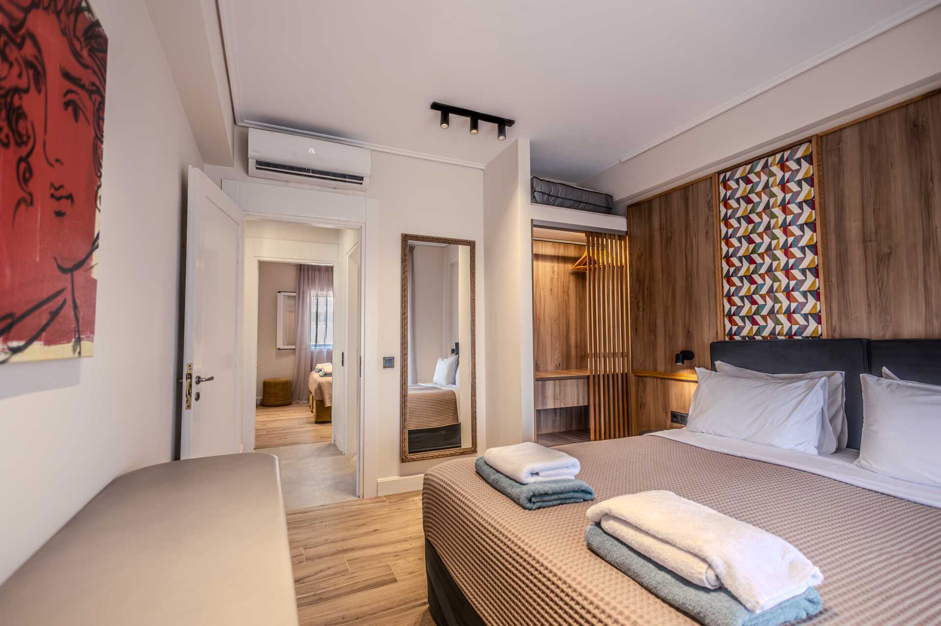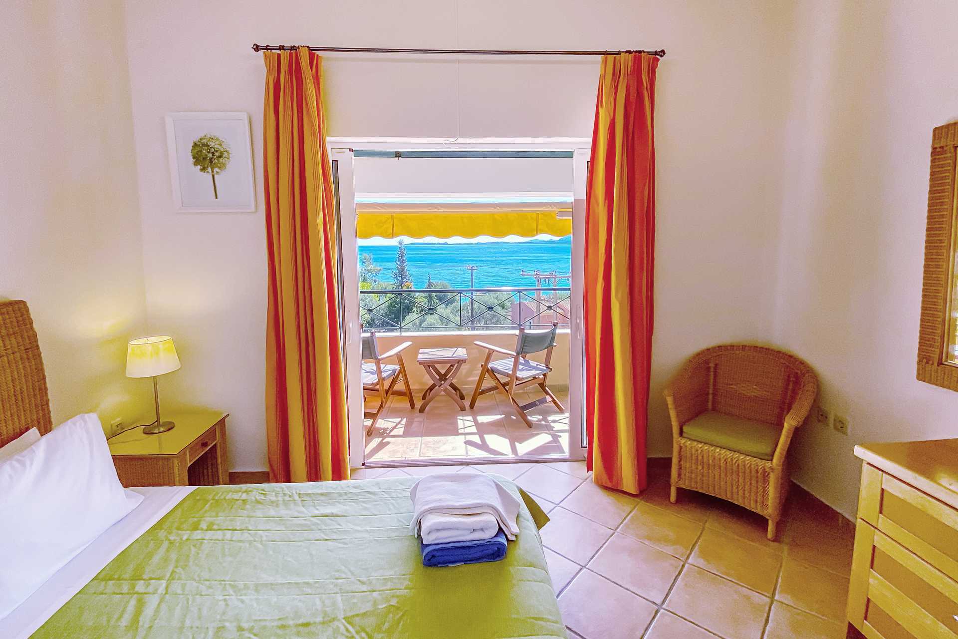 Trerumslägenhet superior med balkong eller terrass. Lägenheterna är belägna nära stranden. Lägenheterna renoverades till sommaren 2023. Två sovrum, ett med en dubbelsäng och ett med två enkelsängar samt ett kombinerat vardagsrum och minikök. Möjlighet till extrabädd i bäddsoffa. Wifi, luftkonditionering och deponering ingår. Minikök med kokplattor, mikrovågsugn, kylskåp, kaffebryggare, vattenkokare, brödrost och enkel köksutrustning. Diskmaskin. Tvättmaskin. Tv med lokala kanaler. Hårtork. Badrum med dusch och wc. Städning 2 ggr/vecka.
