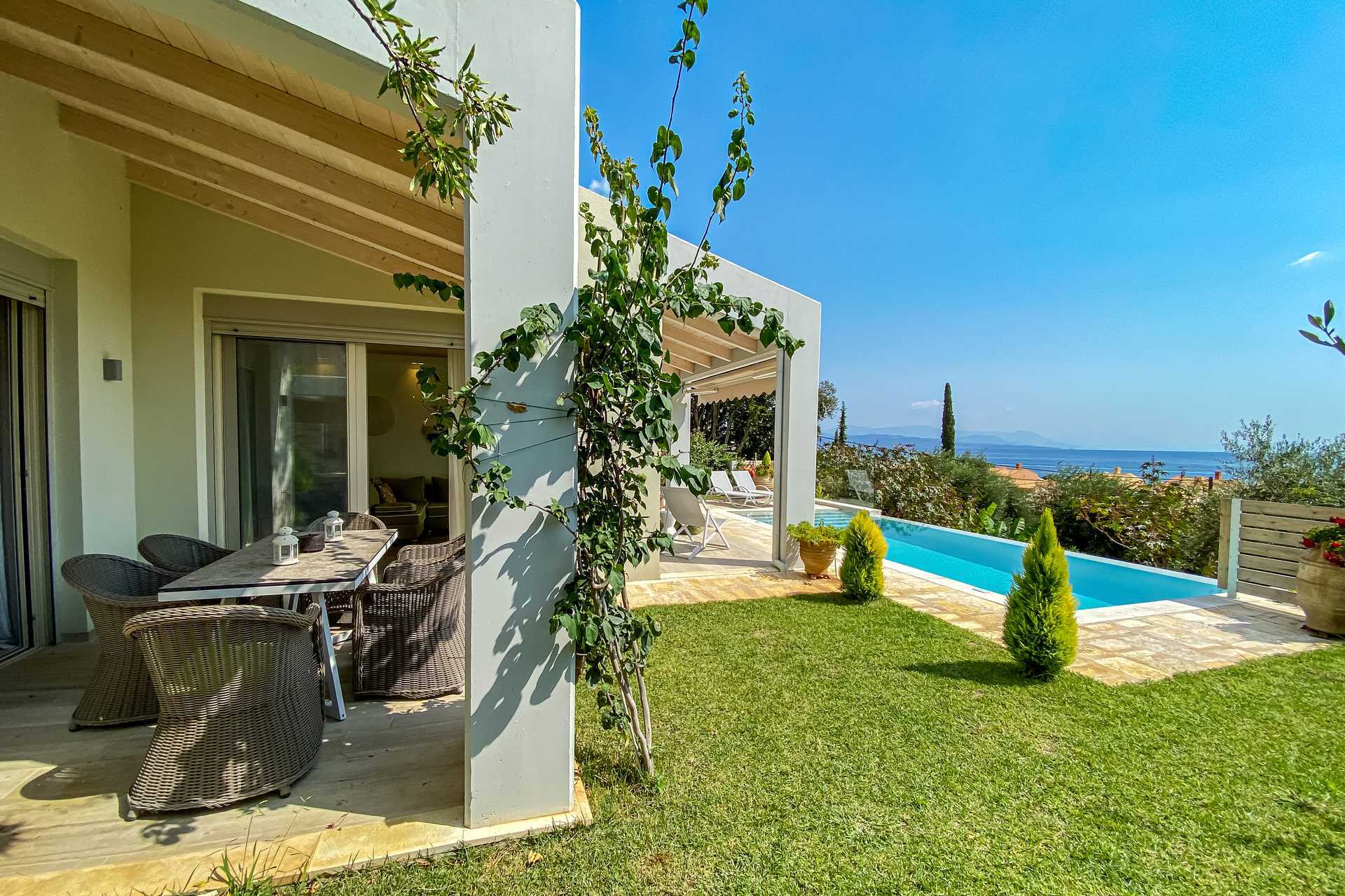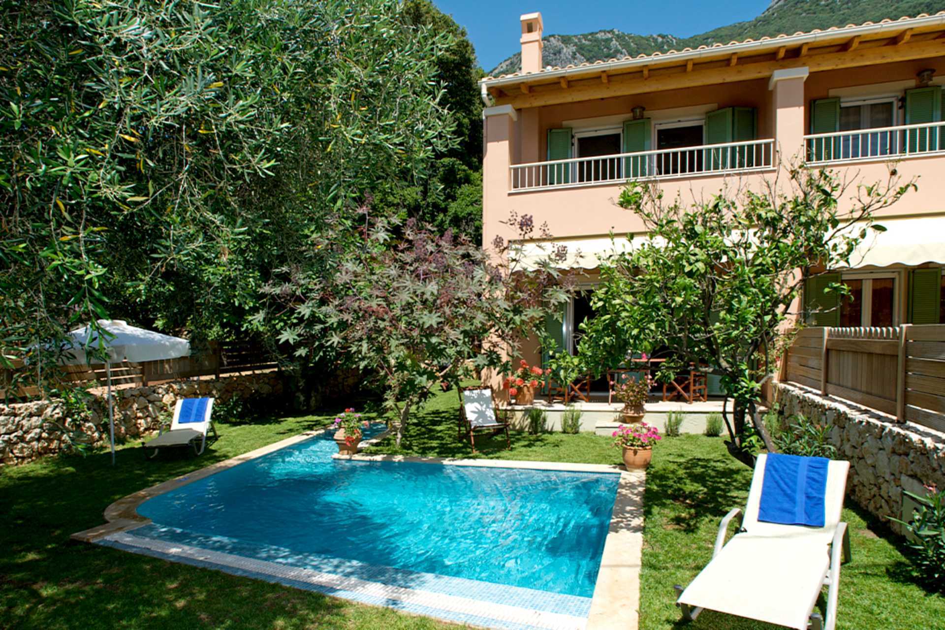 Trerumsvilla med uteplats och privat pool. På uteplatsen finns bord och stolar samt solstolar. På entréplan finns ett kombinerat vardagsrum med minikök och möjlighet till extrabädd i bäddsoffa samt ett sovrum med en dubbelsäng samt ett badrum med dusch och wc. En trappa upp finns ett sovrum med två enkelsängar samt ett badrum med dusch och wc. Minikök med kokplattor och ugn, mikrovågsugn, kylskåp, kaffebryggare, vattenkokare, brödrost och enkel köksutrustning samt en diskmaskin. Wifi, luftkonditionering och deponering ingår. Tvättmaskin. Tv med lokala kanaler. Hårtork. Städning 2 ggr/vecka.