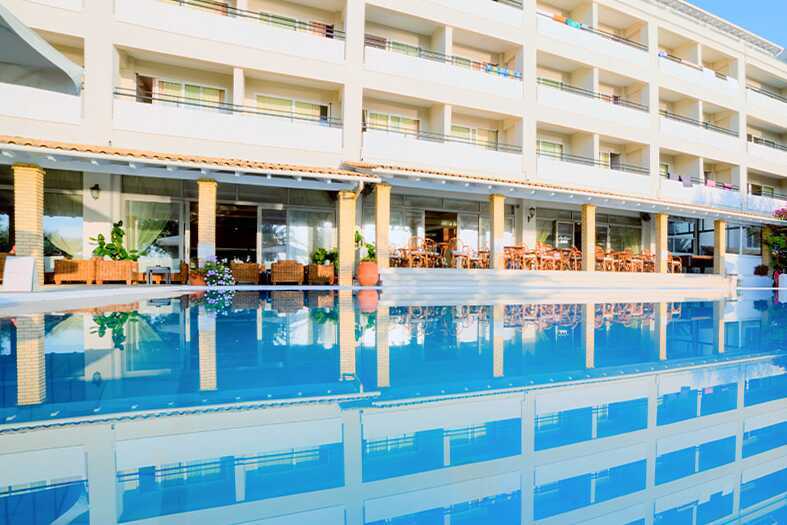 Dubbelrum med balkong, vissa med havsutsikt. En dubbelsäng eller två enkelsängar. Möjlighet till extrabädd i enkelsäng. Wifi och luftkonditionering ingår. Deponering mot avgift. Kylskåp. Vattenkokare samt kaffe och te. Tv med internationella kanaler. Hårtork. Badrum med badkar eller dusch samt wc. Städning 7 ggr/vecka.