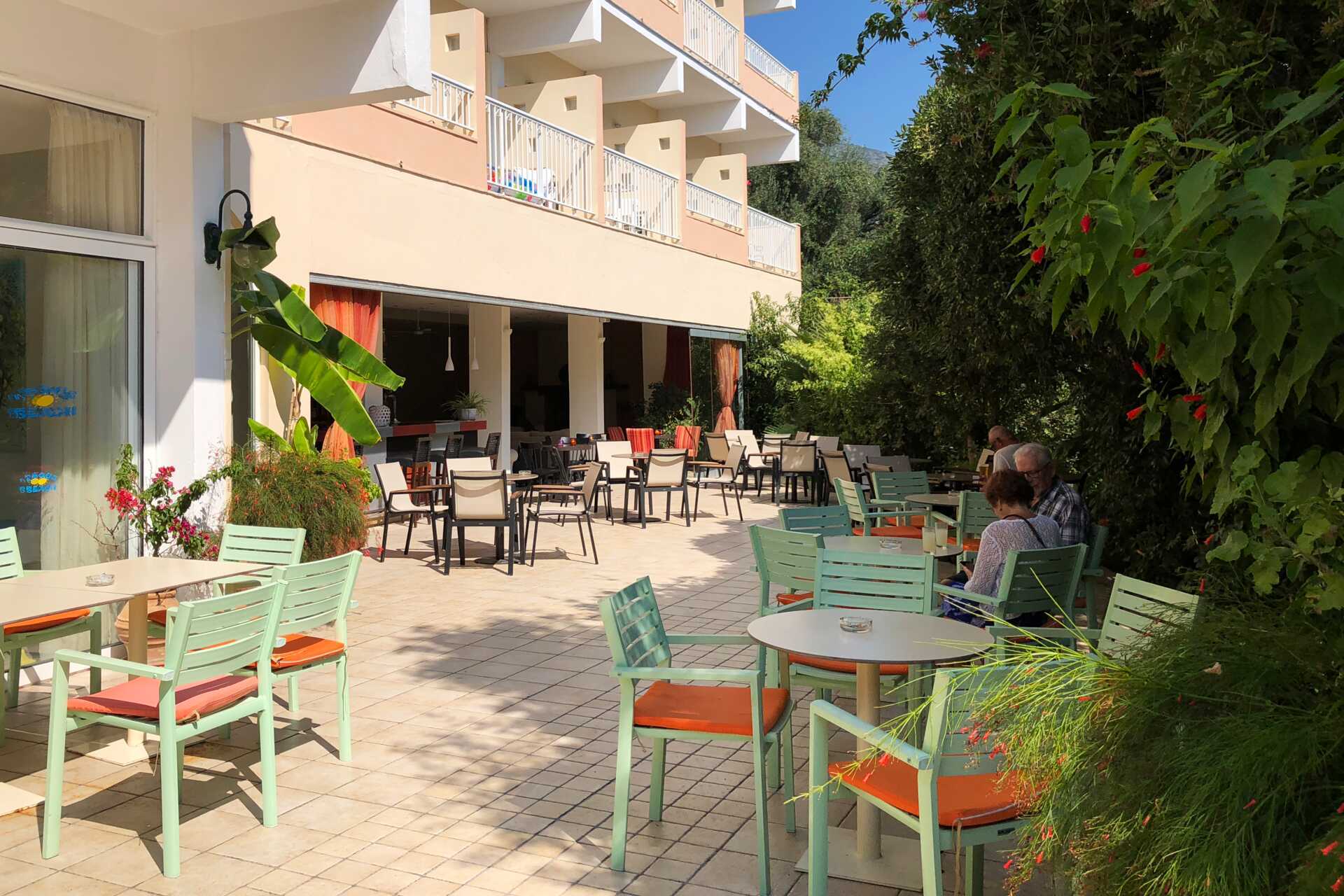 Ein an und für sich sehr ruhiges Hotel, nur die Hähne ab dem Morgengrauen sind nervig. Vor allem bei Zimmern mit Meerblick zu hören. Außerdem sind die Klimaanlagen auf dieser Seite unvorteilhaft installiert, stehen zwischen 2 Balkonen. Hört man in der Nacht ganz schön, wenn man bei offener Balkontür schlafen möchte und der Ventilator bläst auf den Nachbarbalkon. Ein paar Reparaturarbeiten könnten nicht schaden. Die Sauberkeit passt und das Personal ist wirklich freundlich und hilfsbereit. Extra zu erwähnen wäre der Mitarbeiter Nikos an der Pool Bar, kompetent und äußerst gewissenhaft. Der Pool Bereich ist schön und ruhig. Empfehlenswert ist es Mückenstecker mit zu nehmen und gleich bei Bezug des Zimmers anzustecken, sonst ist man in der ersten Nacht zerstochen (zumindest war es im September so). Das Frühstück ist gut, wenn auch nicht sehr Abwechslungsreich. Alles in Allem ist das Hotel wirklich gut und ist auch gut gelegen.