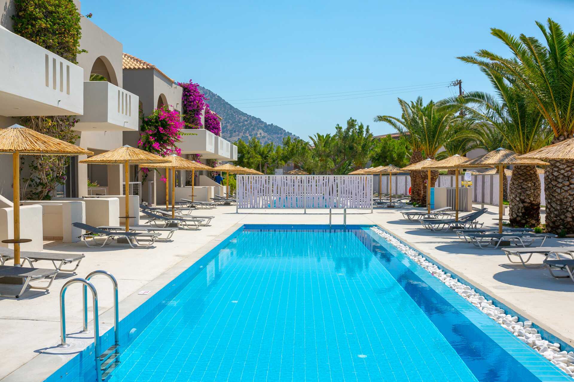 Låg standard på rummen, dåliga solsängar och delvis nonchalant personal