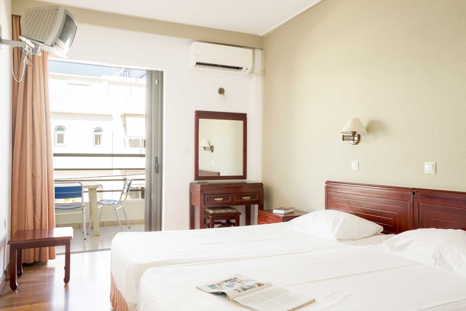 Enrumslägenhet med balkong eller markbalkong. Kombinerat sovrum med minikök. En dubbelsäng eller två enkelsängar. Möjlighet till extrabädd i hopvikbar säng. Minikök med kokplattor, kylskåp, mikrovågsugn, vattenkokare, kaffebryggare och enkel köksutrustning. Wifi ingår. Luftkonditionering och deponering mot avgift. Tv med internationella kanaler. Hårtork. Badrum med dusch och wc. Städning 6 ggr/vecka.