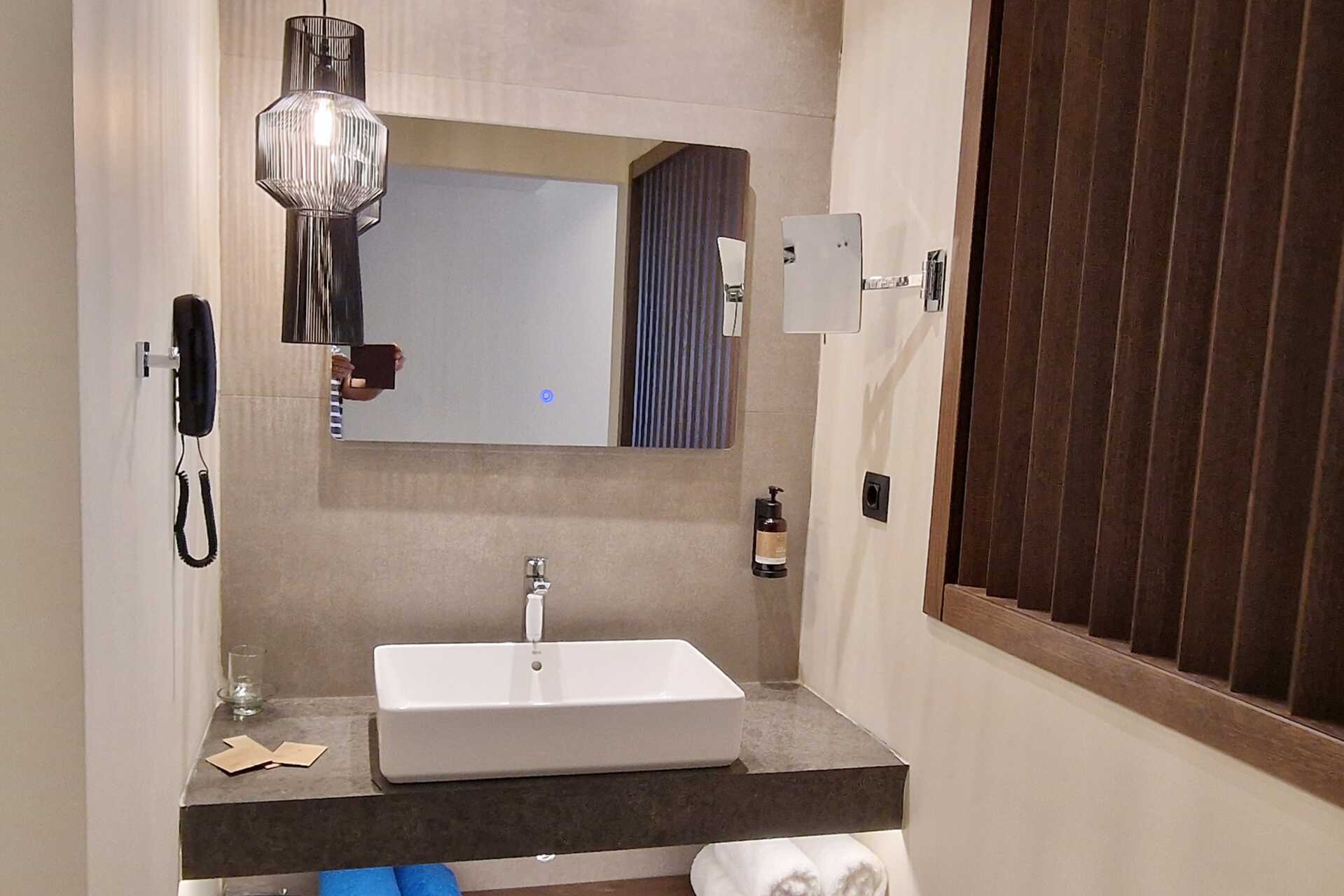 Juniorsvit med balkong. Juniorsviterna ligger i byggnaden från 2024. En dubbelsäng eller två enkelsängar. Möjlighet till extrabädd i enkelsäng. Wifi, luftkonditionering och deponering ingår. Kylskåp. Vattenkokare samt kaffe och te. Espressomaskin Krups, kapslar mot avgift. Tv med internationella kanaler. Hårtork. Badrum med dusch och wc. Städning 7 ggr/vecka. Åldersgränsen är 16 år för bo i den här rumstypen.