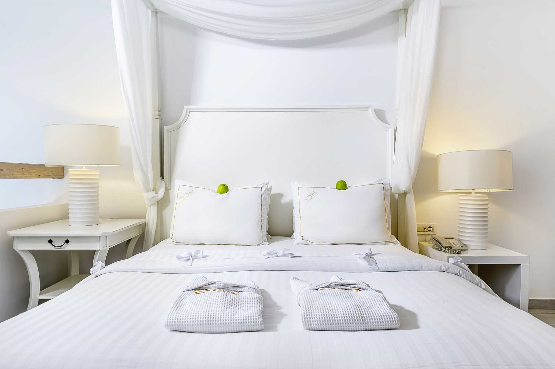 Superiorrum med balkong eller terrass. En dubbelsäng. Wifi, luftkonditionering och deponering ingår. Minibar. Vattenkokare samt kaffe och te. Vatten, vin och frukt finns i rummet vid ankomst. Tv med internationella kanaler. Badrockar och tofflor. Hårtork. Badrum med dusch och wc. Städning 7 ggr/vecka.