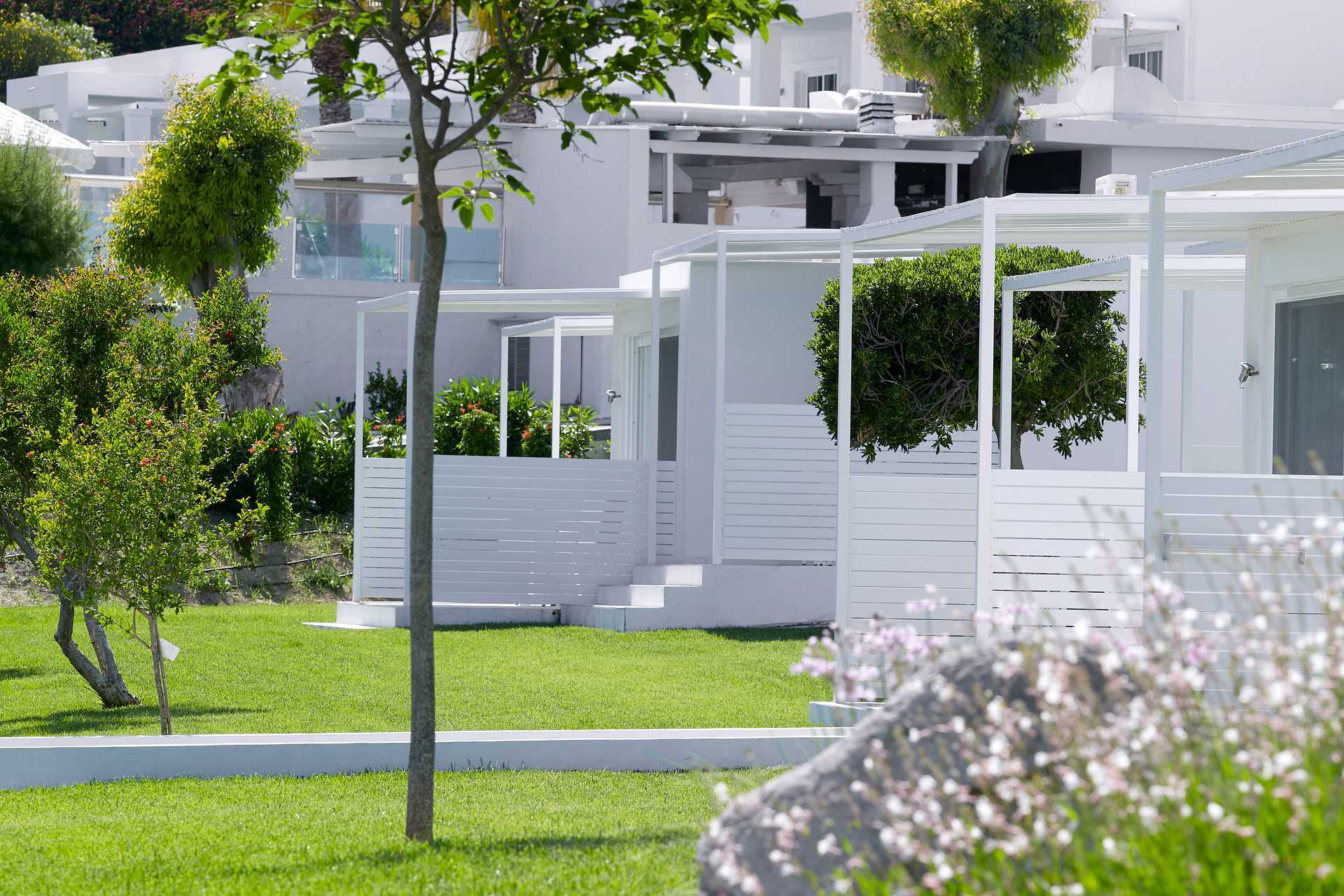 Dubbelrum i bungalow med markterrass, vissa med havsutsikt och vissa dubbelrum ligger närmast havet med utsikt mot havet. Rummen med utsikt mot havet har en terrass med solstolar. En dubbelsäng eller två enkelsängar. Möjlighet till extrabädd i bäddsoffa. Wifi, luftkonditionering och deponering ingår. Kylskåp. Vattenkokare samt kaffe och te. Tv med internationella kanaler. Hårtork. Badrockar och tofflor. Badrum med dusch och wc. Städning 7 ggr/vecka. Barn under två år räknas in i maxantalet personer i rummet.