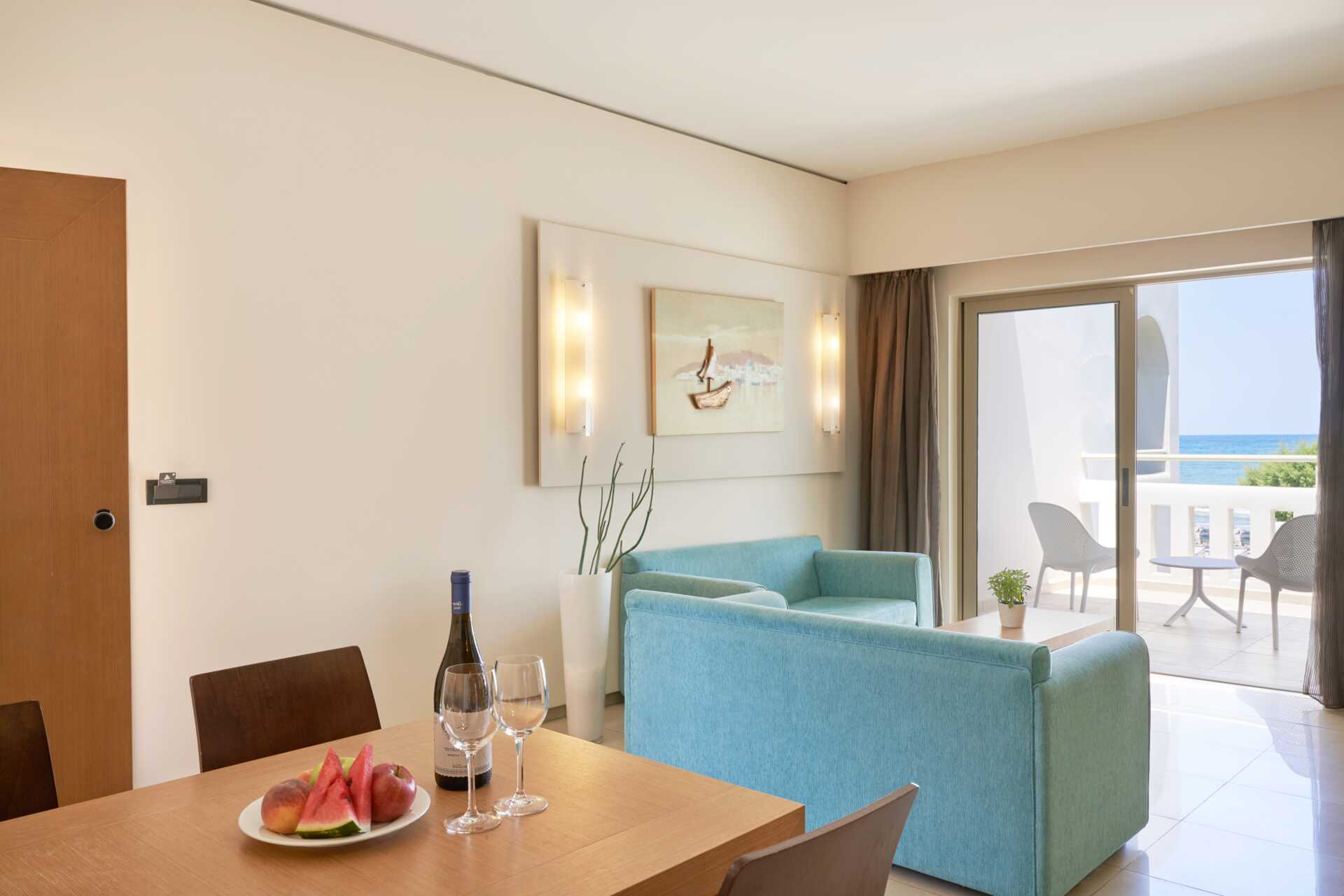 Juniorsvit med balkong eller terrass. Juniorsviten består av ett sovrum och ett vardagsrum. En dubbelsäng eller två enkelsängar. Möjlighet till två extrabäddar i två bäddsoffor. Wifi, luftkonditionering och deponering ingår. Kylskåp. Vattenkokare samt kaffe och te. Tv med internationella kanaler i varje rum. Badrockar och tofflor. Hårtork. Badrum med badkar, dusch samt wc. Städning 7 ggr/vecka.