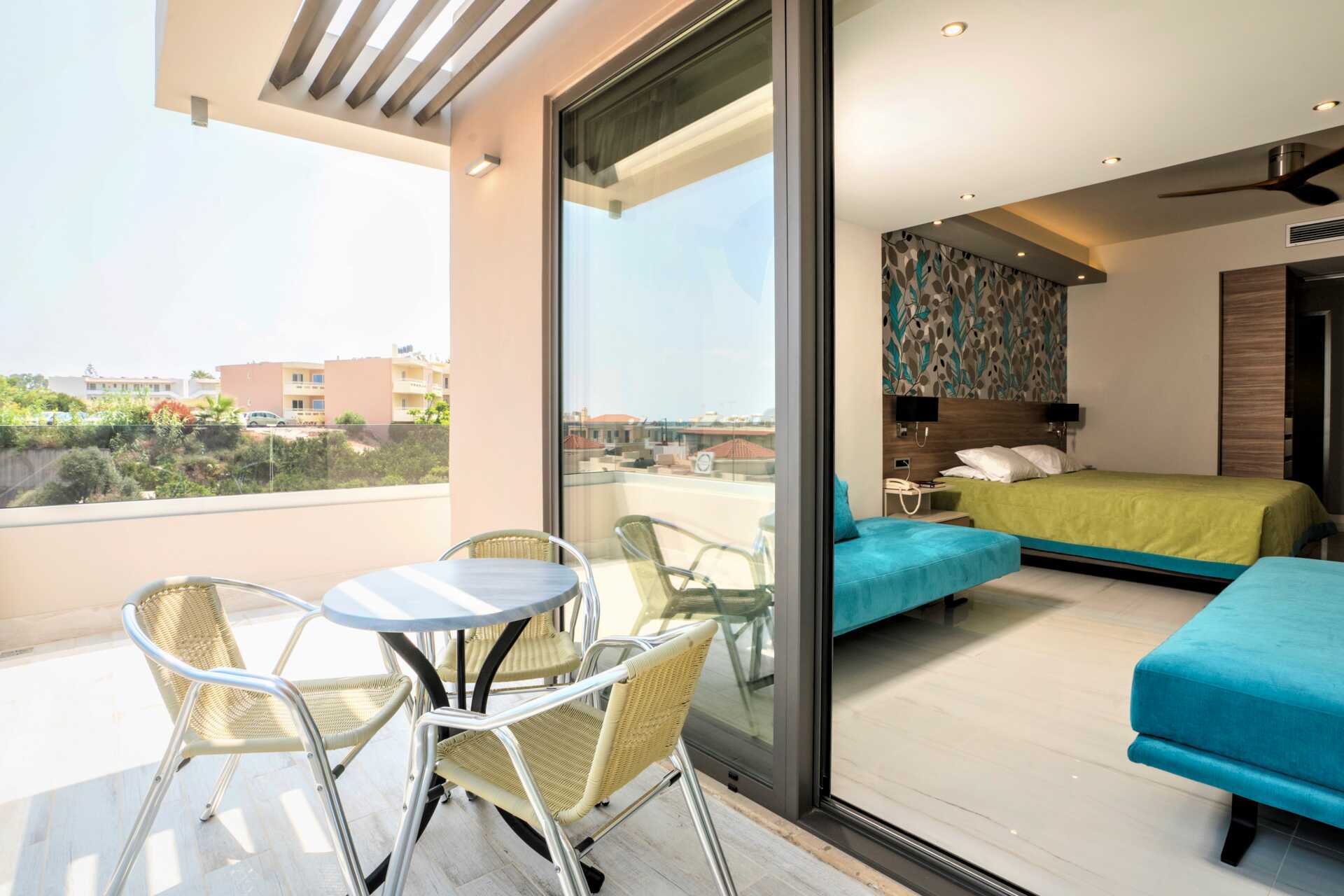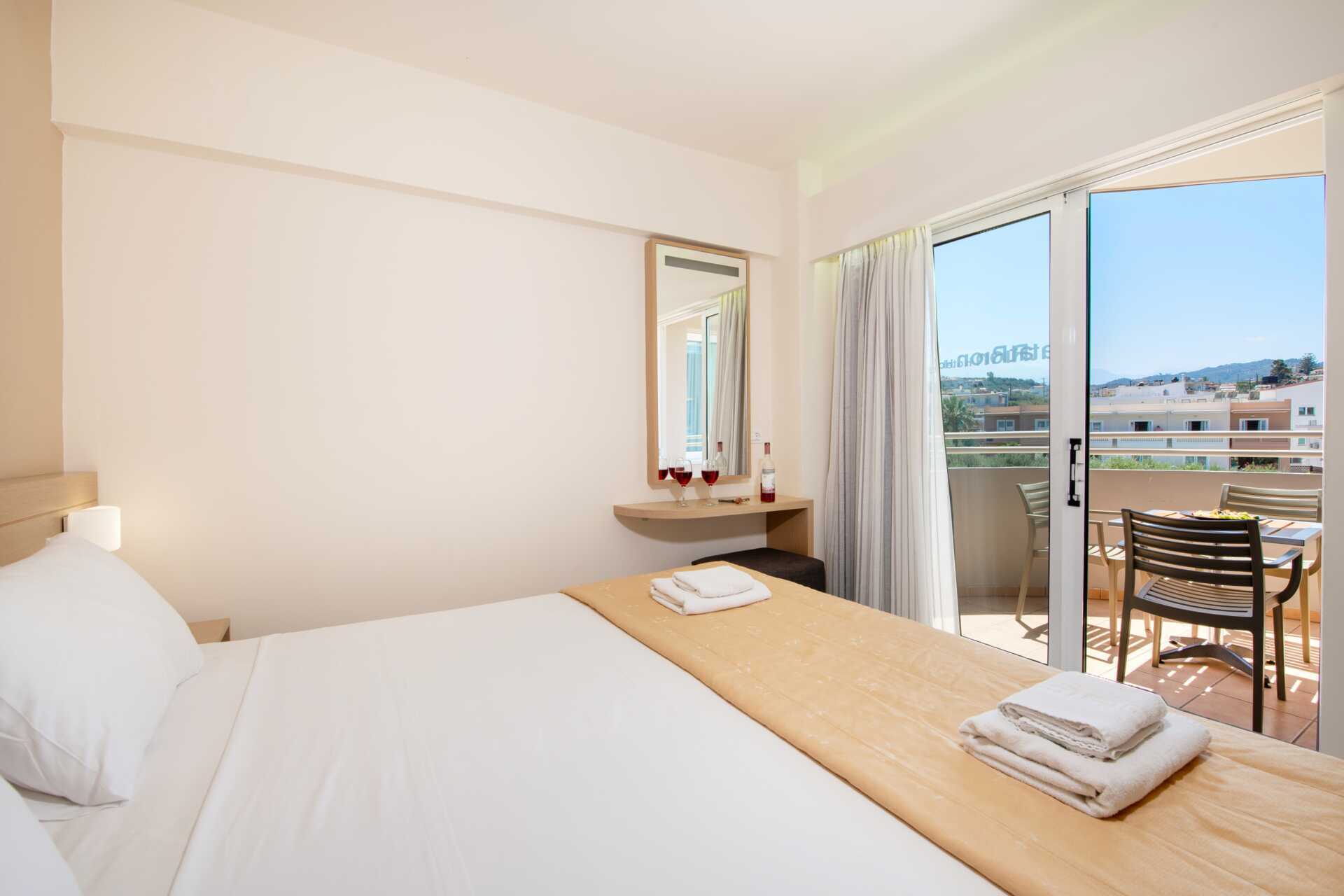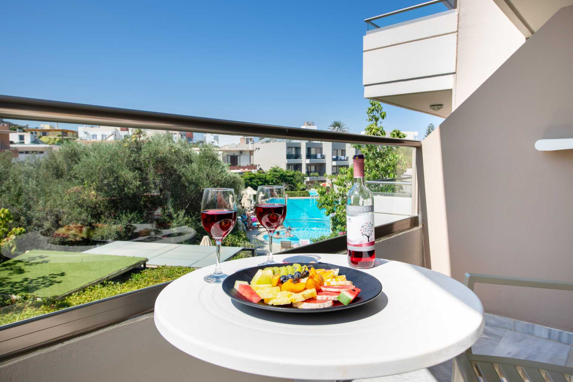 Superiorrum med balkong eller terrass. En dubbelsäng. Möjlighet till en extrabädd i bäddsoffa. Wifi, luftkonditionering och deponering ingår. Kylskåp. Nespressomaskin, kapslar ingår och fylls på under veckan. Tv med internationella kanaler. Tofflor. Hårtork. Badrum med dusch och wc. Städning 6 ggr/vecka.
