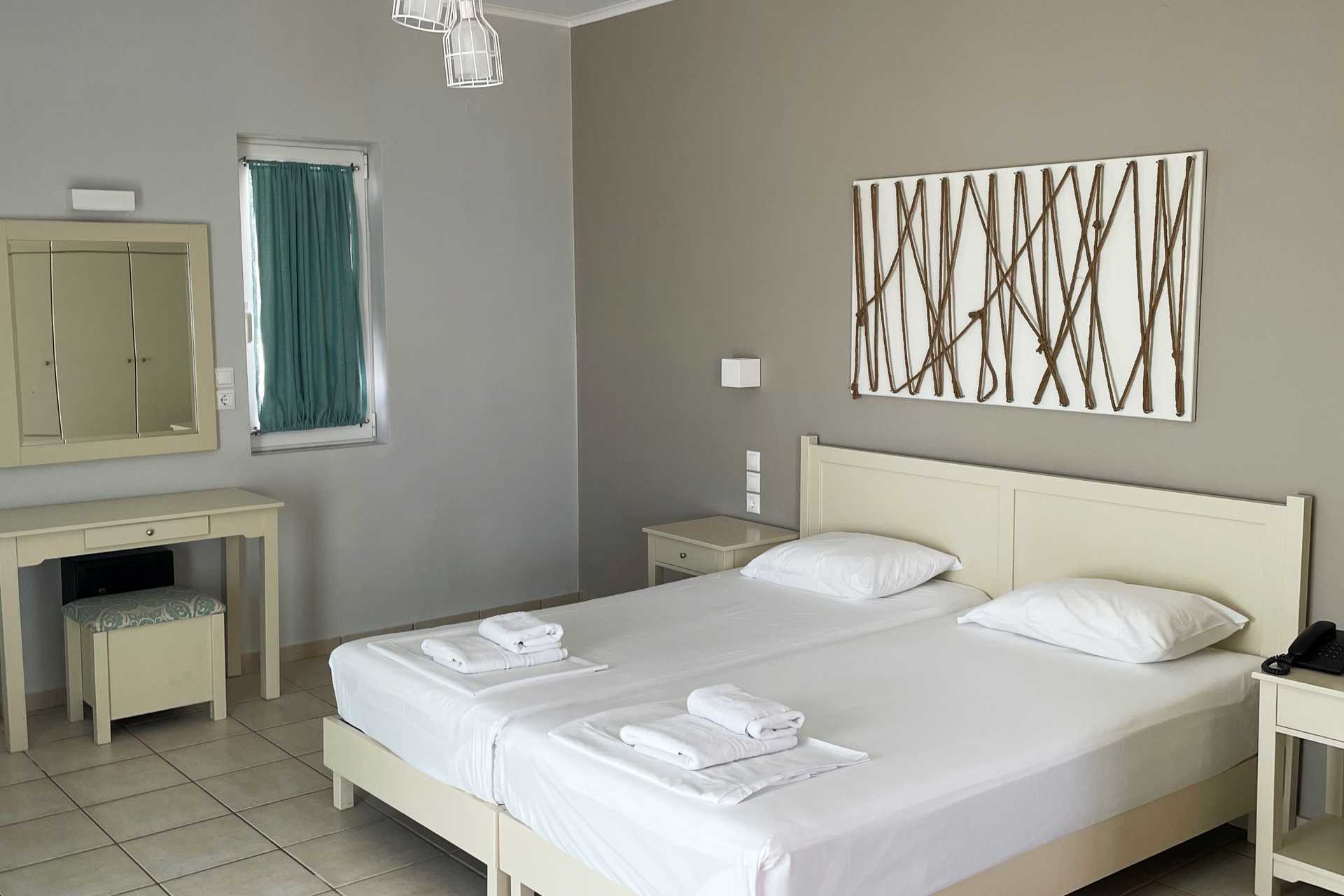 Tvårumslägenhet superior med balkong eller terrass. Lägenheterna renoverades till sommaren 2023. Sovrum och kombinerat vardagsrum med minikök. Två enkelsängar. Möjlighet till extrabäddar i bäddsoffa eller i hopfällbar säng. Minikök med kokplattor, kylskåp, brödrost, kaffebryggare och enkel köksutrustning. Wifi, luftkonditionering och deponering ingår. Tv med lokala kanaler. Hårtork. Badrum med dusch och wc. Städning 6 ggr/vecka.
