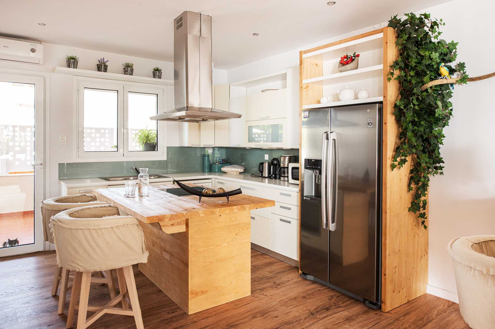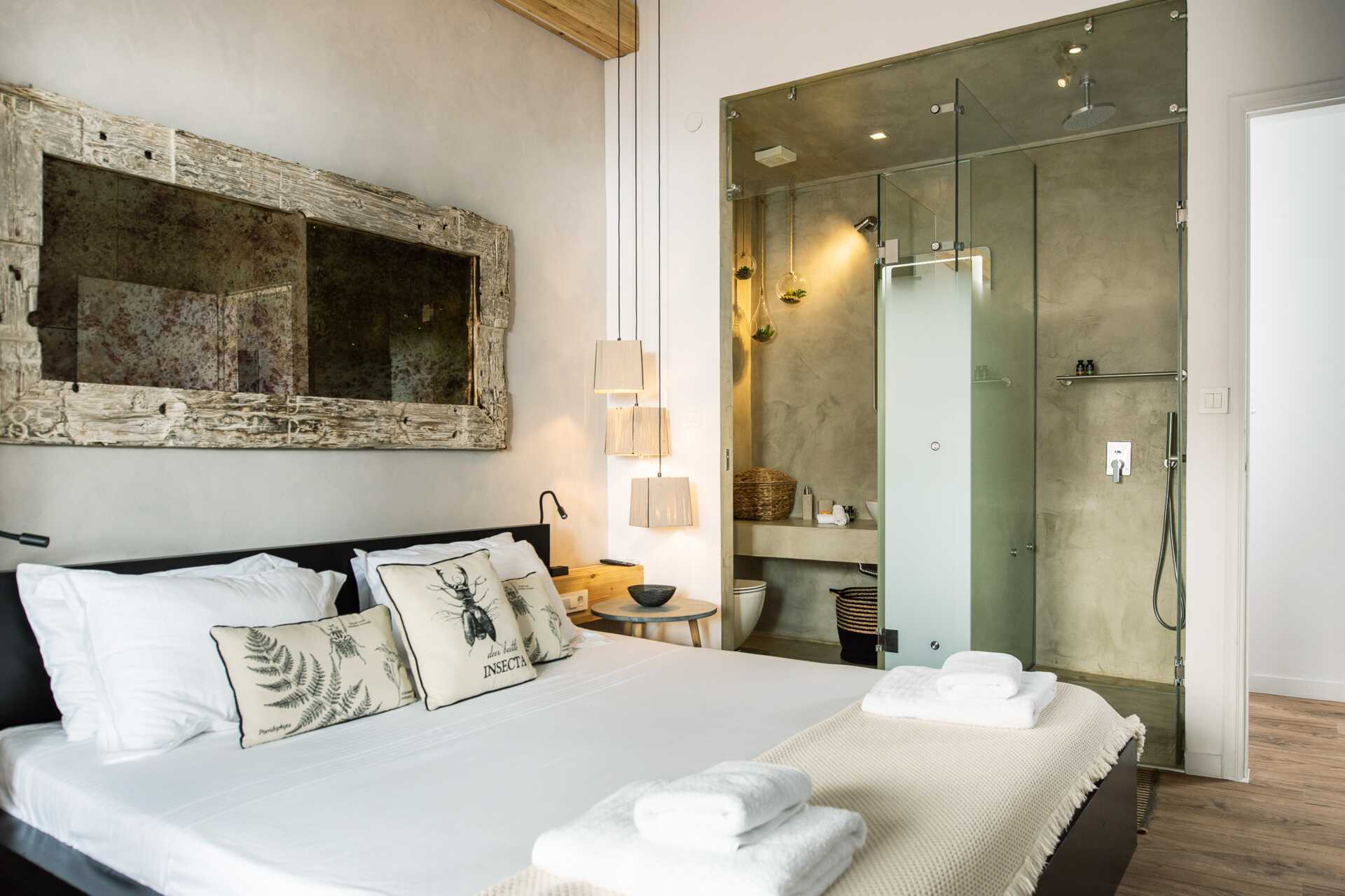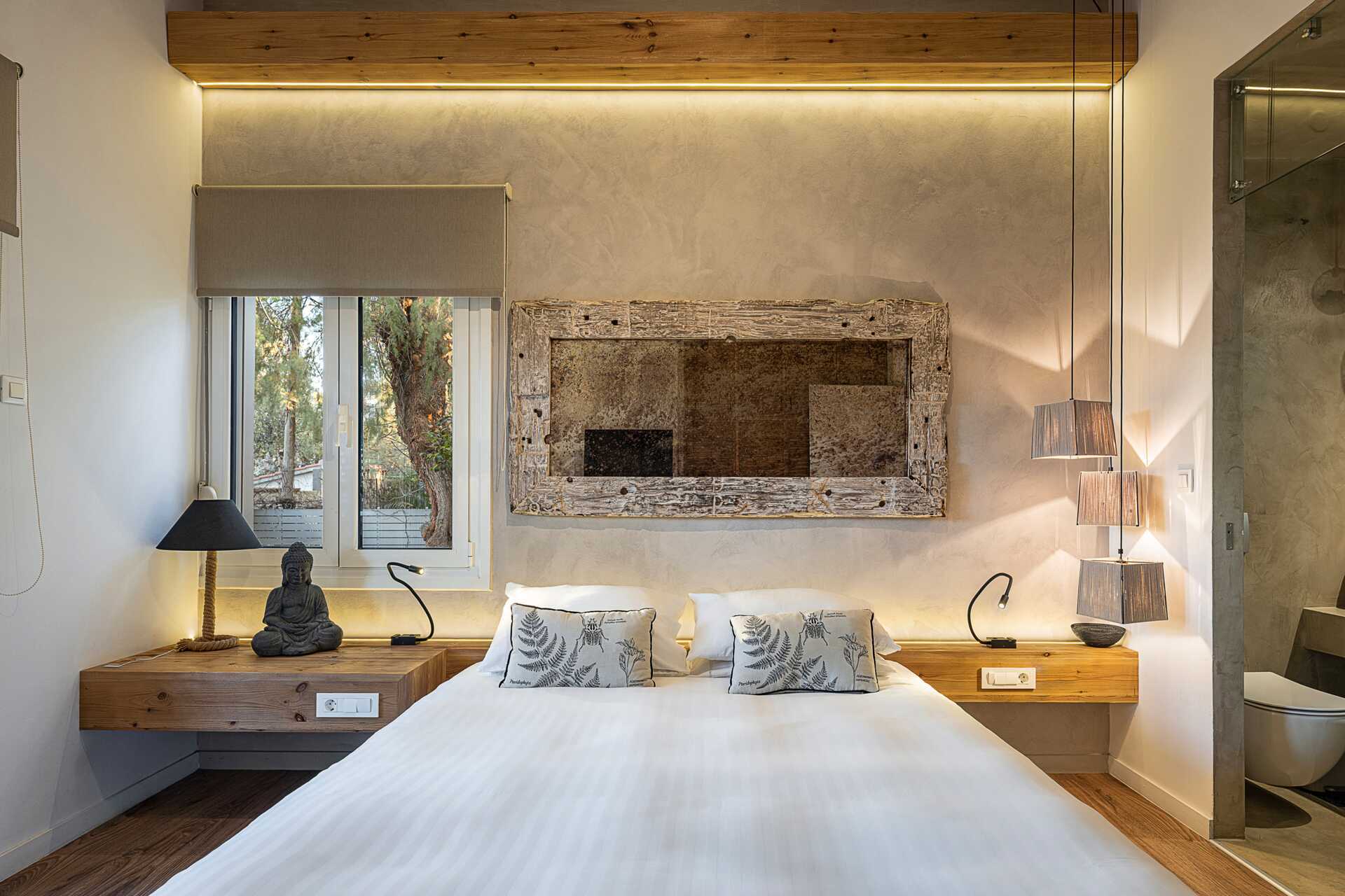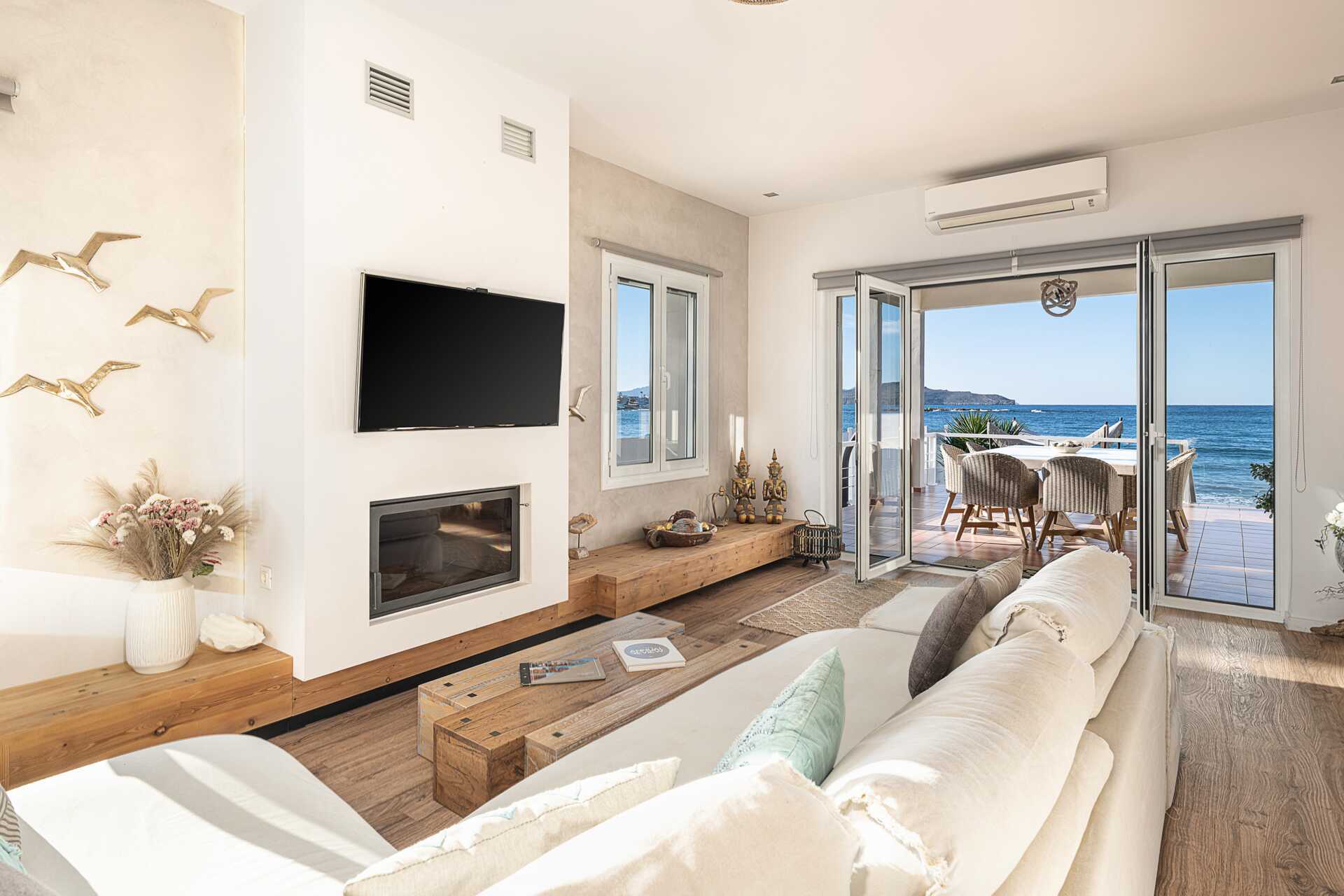 Det stora sovrummet har vacker utsikt från fönstret, en stor dubbelsäng och ett badrum med två tvättställ, badkar samt wc. Det andra sovrummet, med två enkelsängar, har ett badrum med dusch och wc som har frostade glasdörrar. Det tredje sovrummet har en dubbelsäng, badrum med dusch och wc med frostade glasdörrar samt utgång till en uteplats. Kök och vardagsrum med öppen planlösning och i vardagsrummet finns bäddsoffor och en öppen spis. Fullt utrustat kök med matplats, kokplattor, ugn, mikrovågsugn, kaffebryggare, Nespressomaskin, kyl och frys med ismaskin,