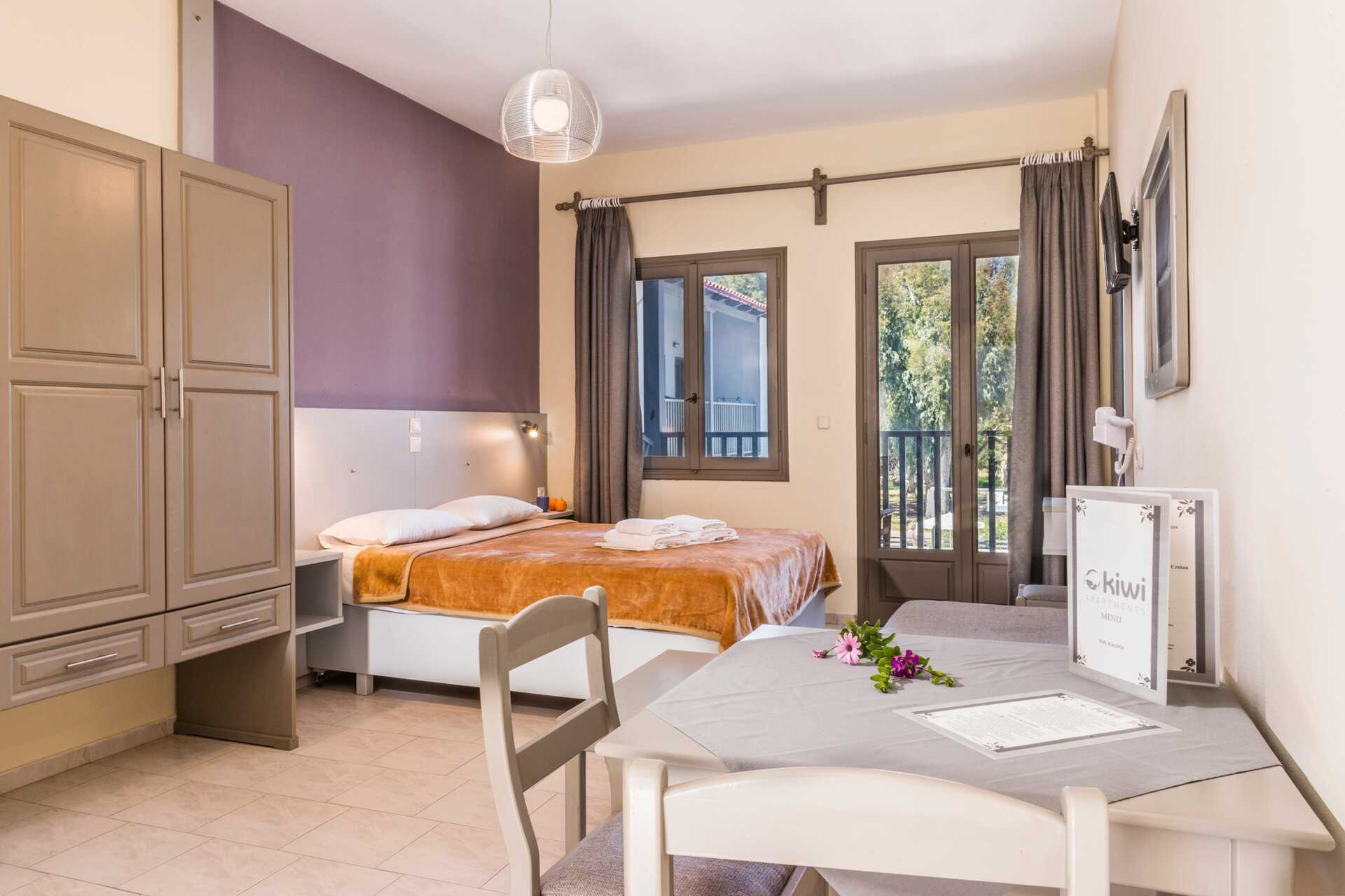 Hotell Kiwi på Kreta erbjuder trevliga lägenheter, nära stranden i Agii Apostoli på Kreta. Njut av ett härligt poolområde med solstolar och ett fåtal parasoller, och en poolbar som serverar dryck och enklare snacks. Hotellet ligger nära de fina badvikarna i Agii Apostoli, och du hittar stranden bara ett stenkast bort. På stranden finns solstolar och parasoller att hyra.