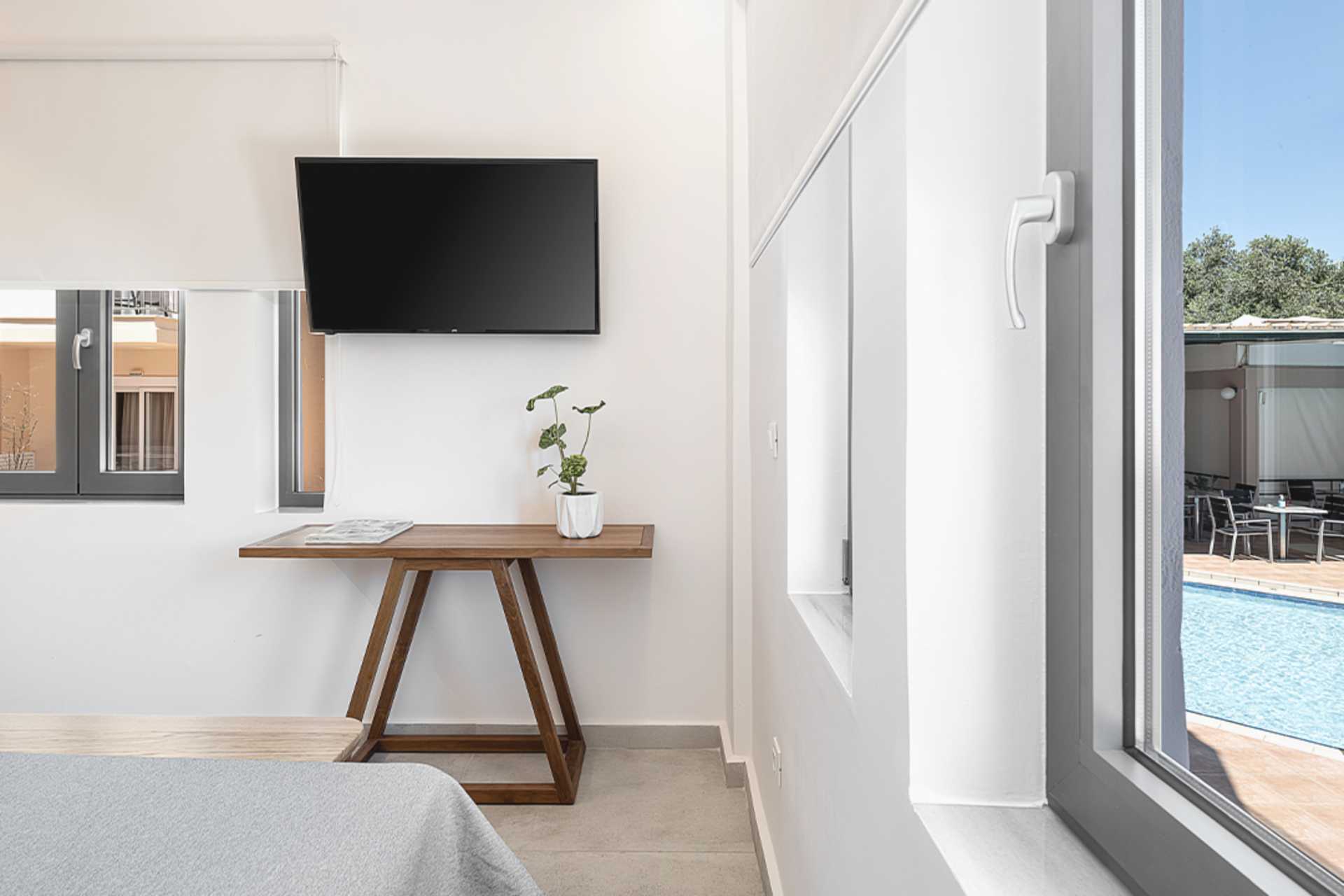 Enrumslägenhet superior med balkong eller terrass. Kombinerat sovrum och minikök. En dubbelsäng eller två enkelsängar. Möjlighet med extrabädd i bäddsoffa. Minikök med kokplattor, kylskåp, vattenkokare och enkel köksutrustning. Wifi ingår. Luftkonditionering och deponering mot avgift. Tv med internationella kanaler. Badrum med dusch och wc. Städning 6 ggr/vecka.