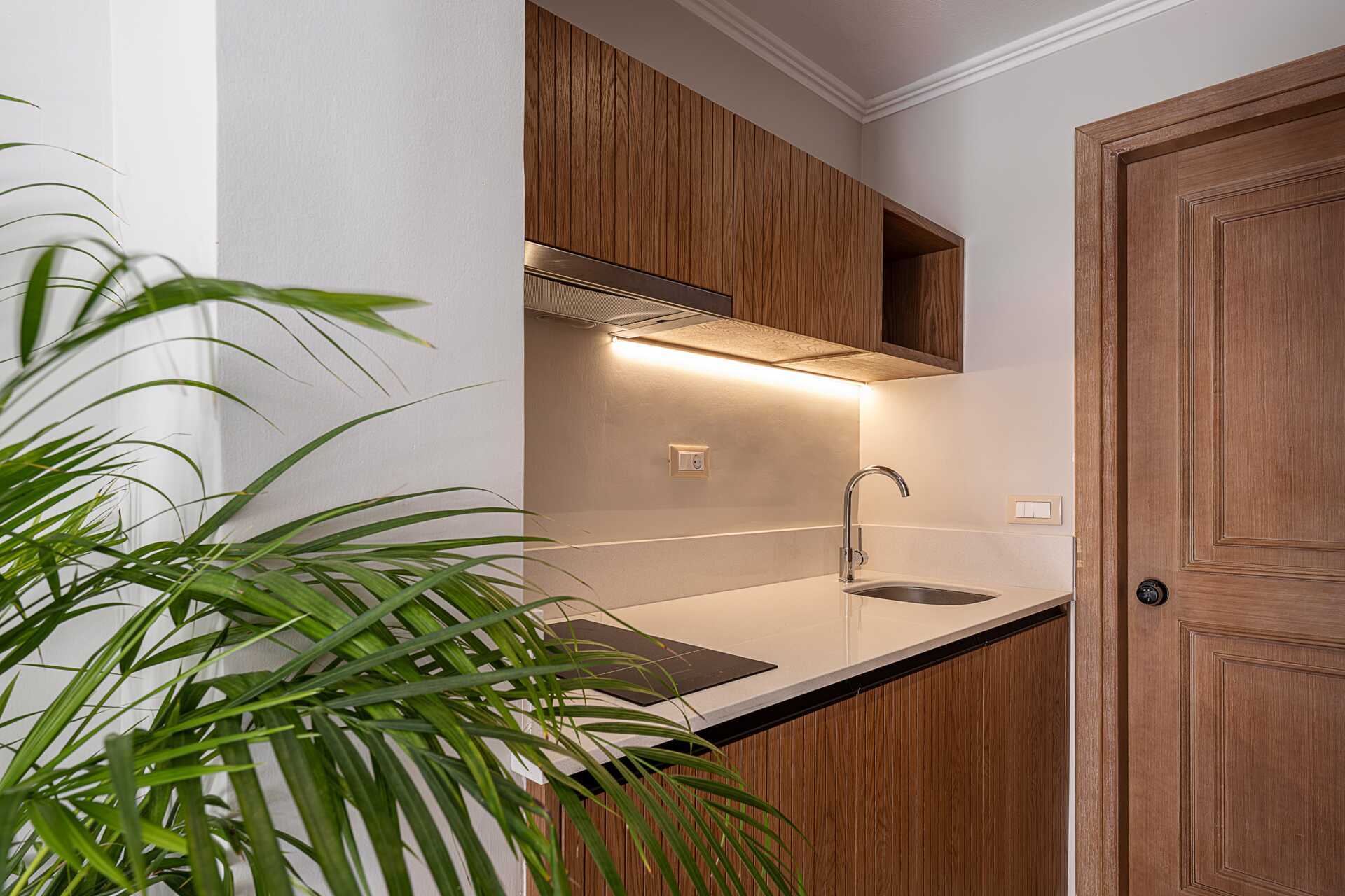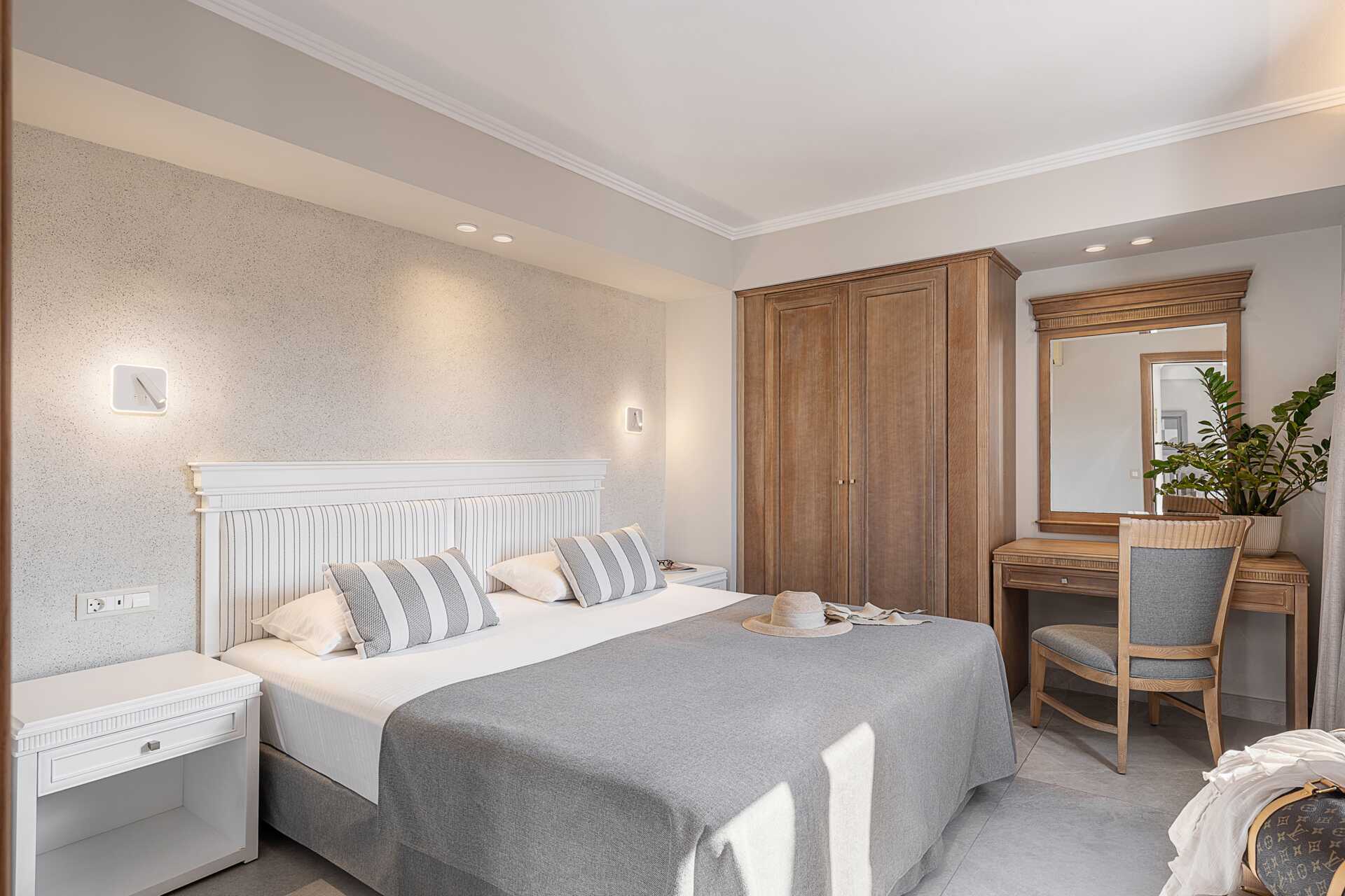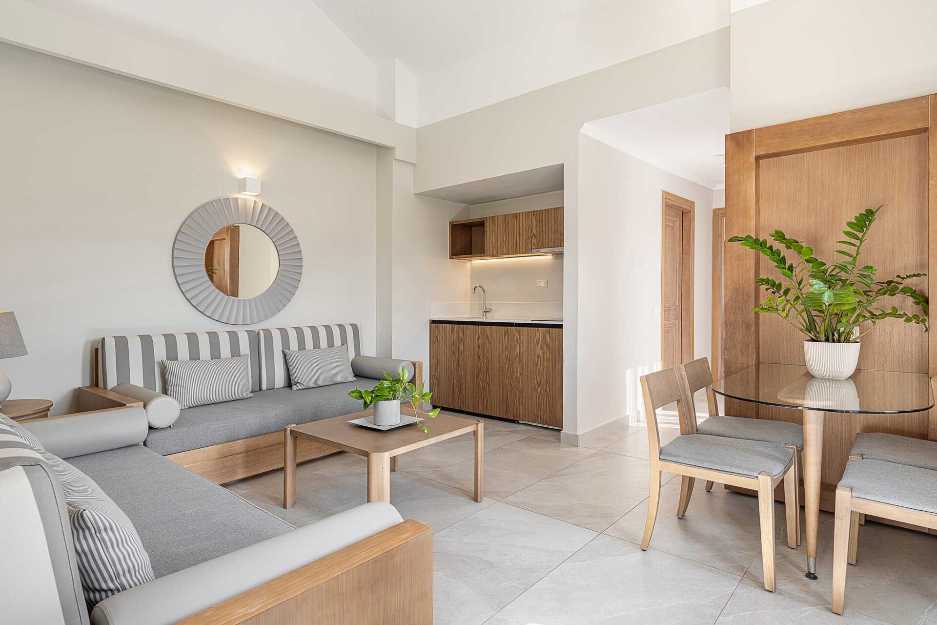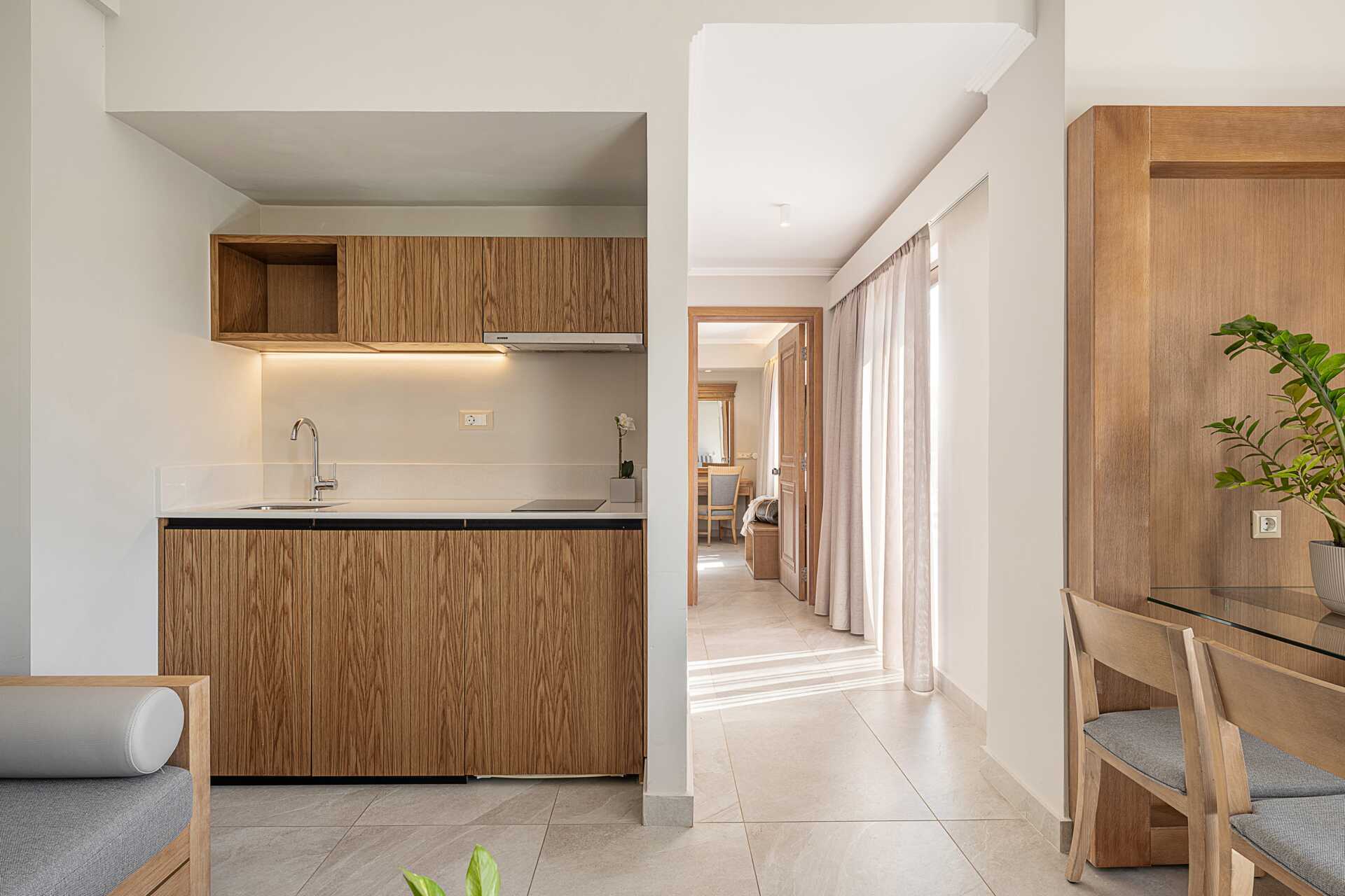 Mindre tvårumslägenheter med markbalkong av varierande utförande och storlek med poolutsikt. Ett sovrum och ett kombinerat vardagsrum med minikök. En dubbelsäng eller två enkelsängar. Minikök med kokplattor, kylskåp, mikrovågsugn, vattenkokare, kaffebryggare/kaffepress och enkel köksutrustning. Wifi och luftkonditionering ingår. Deponering mot extra kostnad. Tv med internationella kanaler. Hårtork. Badrum med dusch och wc. Städning 6 ggr/vecka.