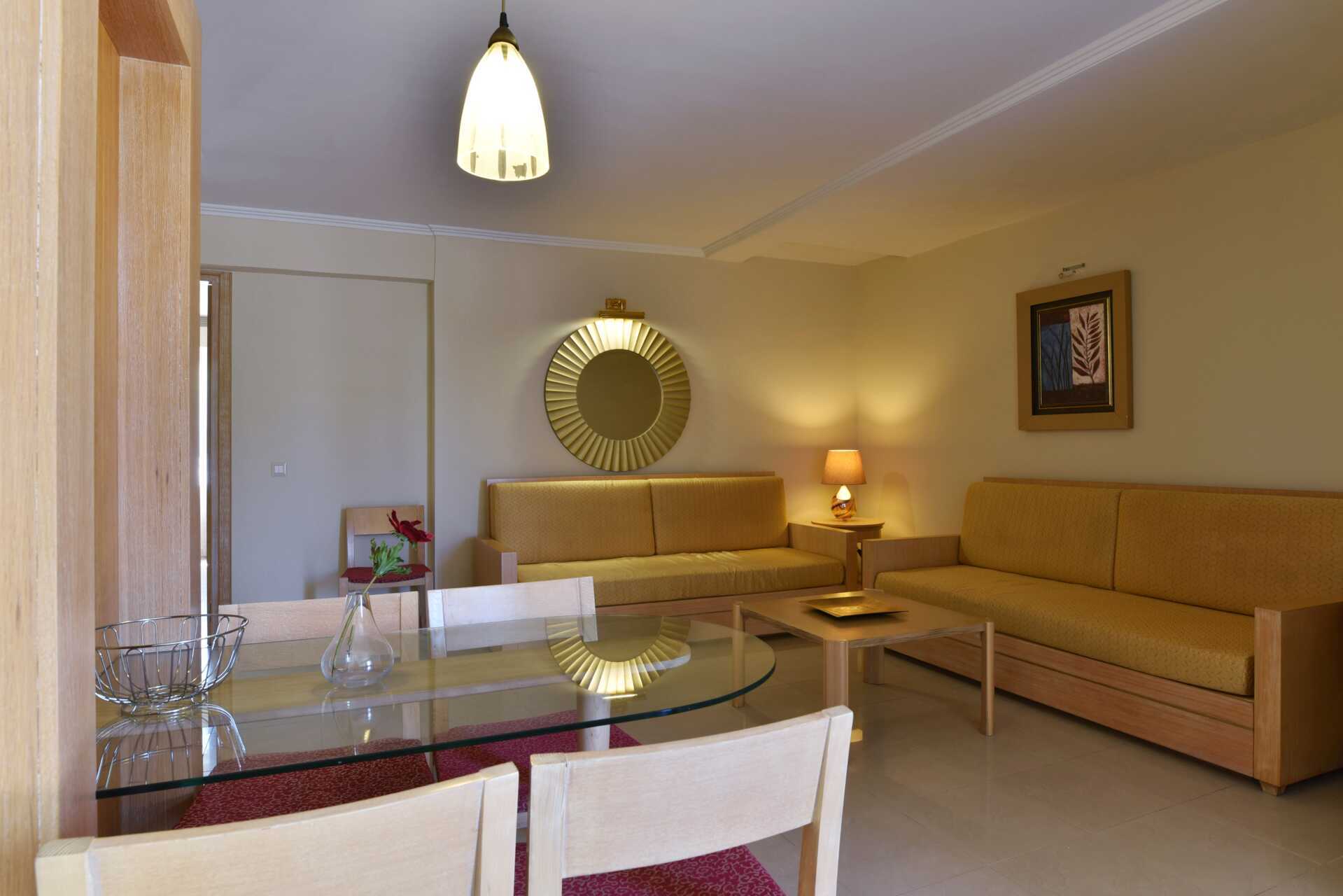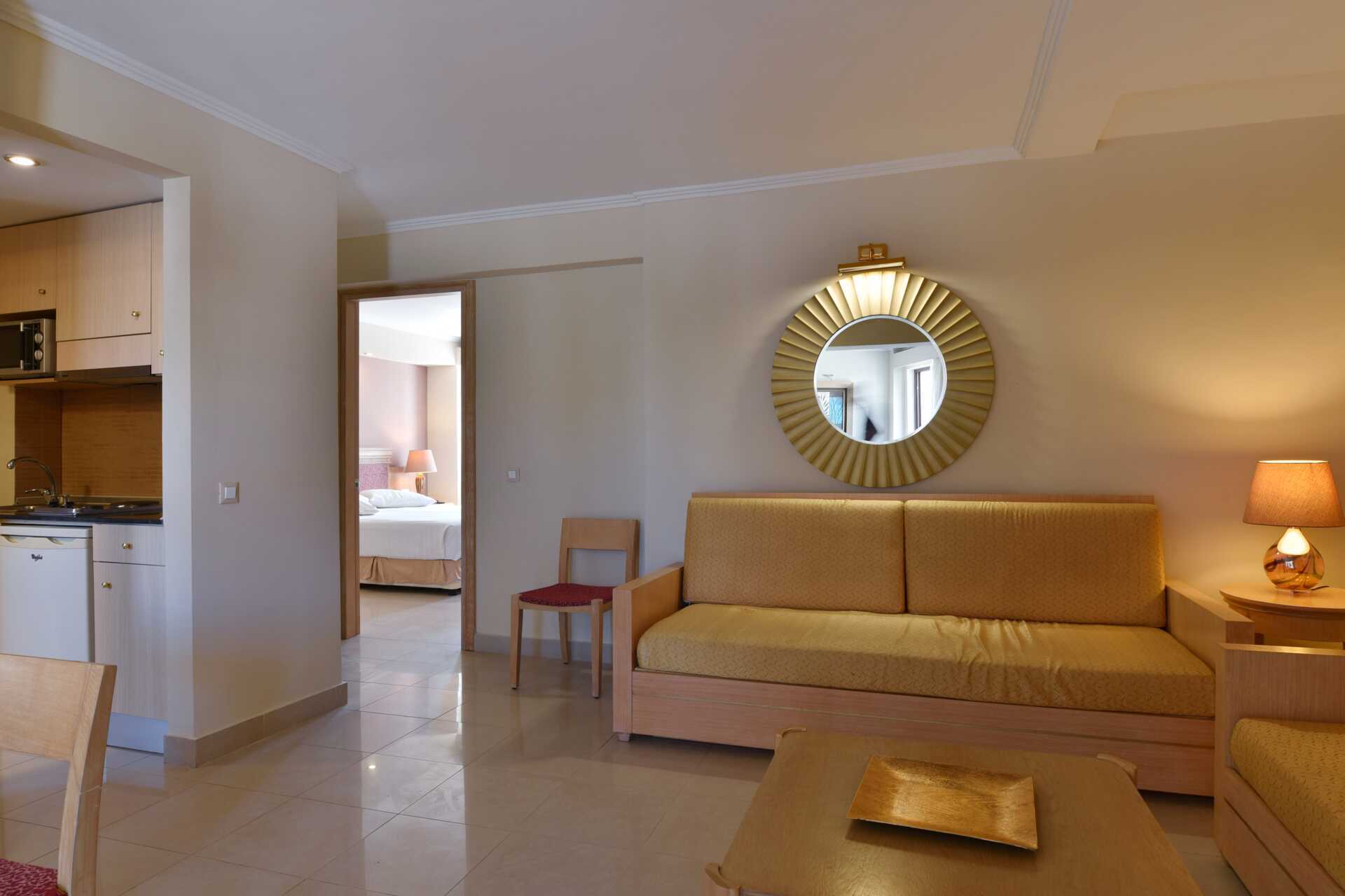 Tvårumslägenheter med balkong eller markbalkong av varierande utförande och storlek, vissa med poolutsikt. Lägenheterna är av varierande storlekar och utseende. Ett sovrum samt kombinerat vardagsrum och minikök. Två enkelsängar eller en dubbelsäng. Möjliga extrabäddar i bäddsoffa. I lägenheterna som tar 5 personer är en av extrabäddarna placerad inne i sovrummet. Minikök med kokplattor, kylskåp, mikrovågsugn, vattenkokare, kaffebryggare/kaffepress och enkel köksutrustning. Wifi och luftkonditionering ingår. Deponering mot extra kostnad. Tv med internationella kanaler. Hårtork. Badrum med dusch samt wc. Städning 6 ggr/vecka.