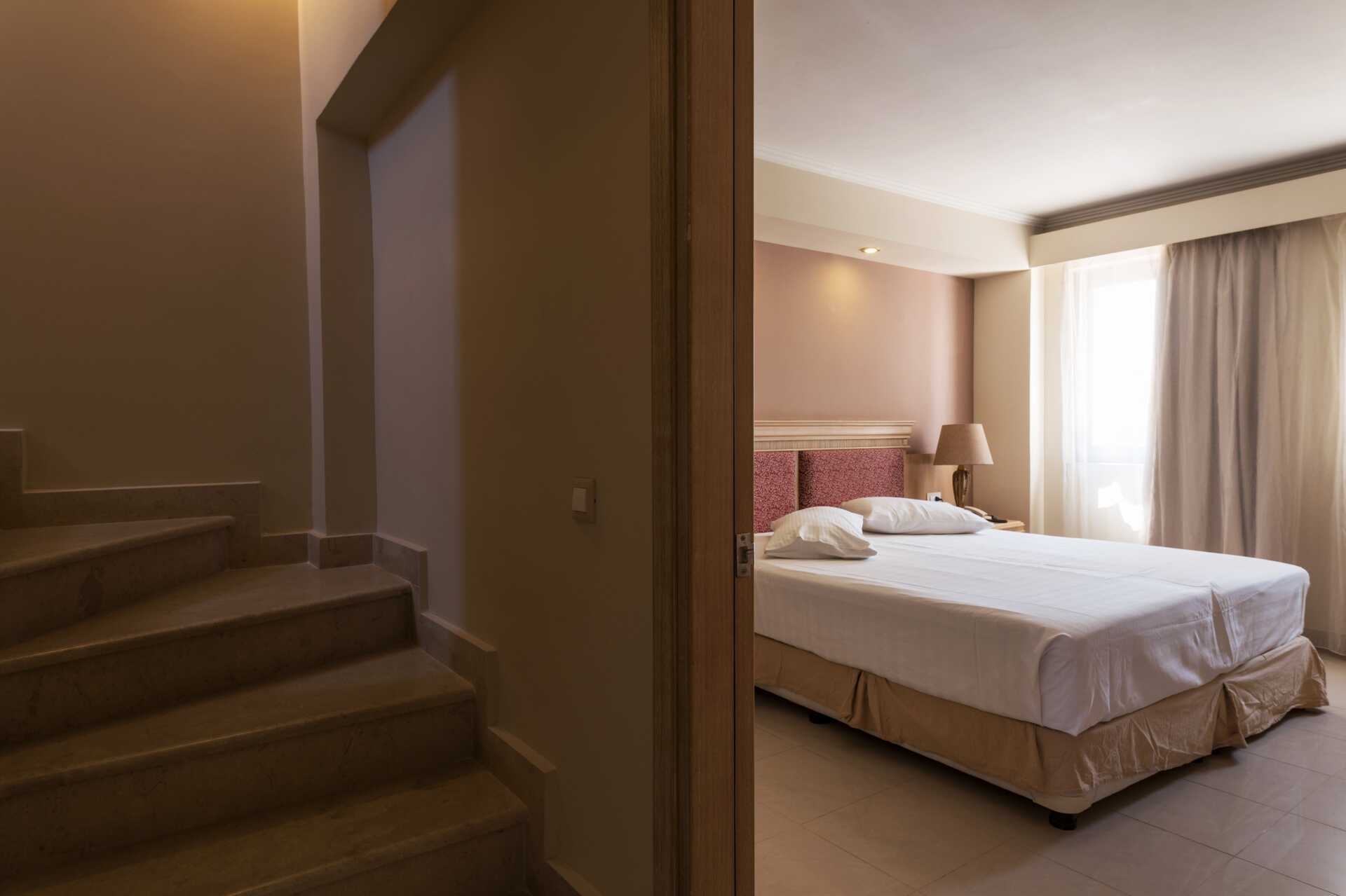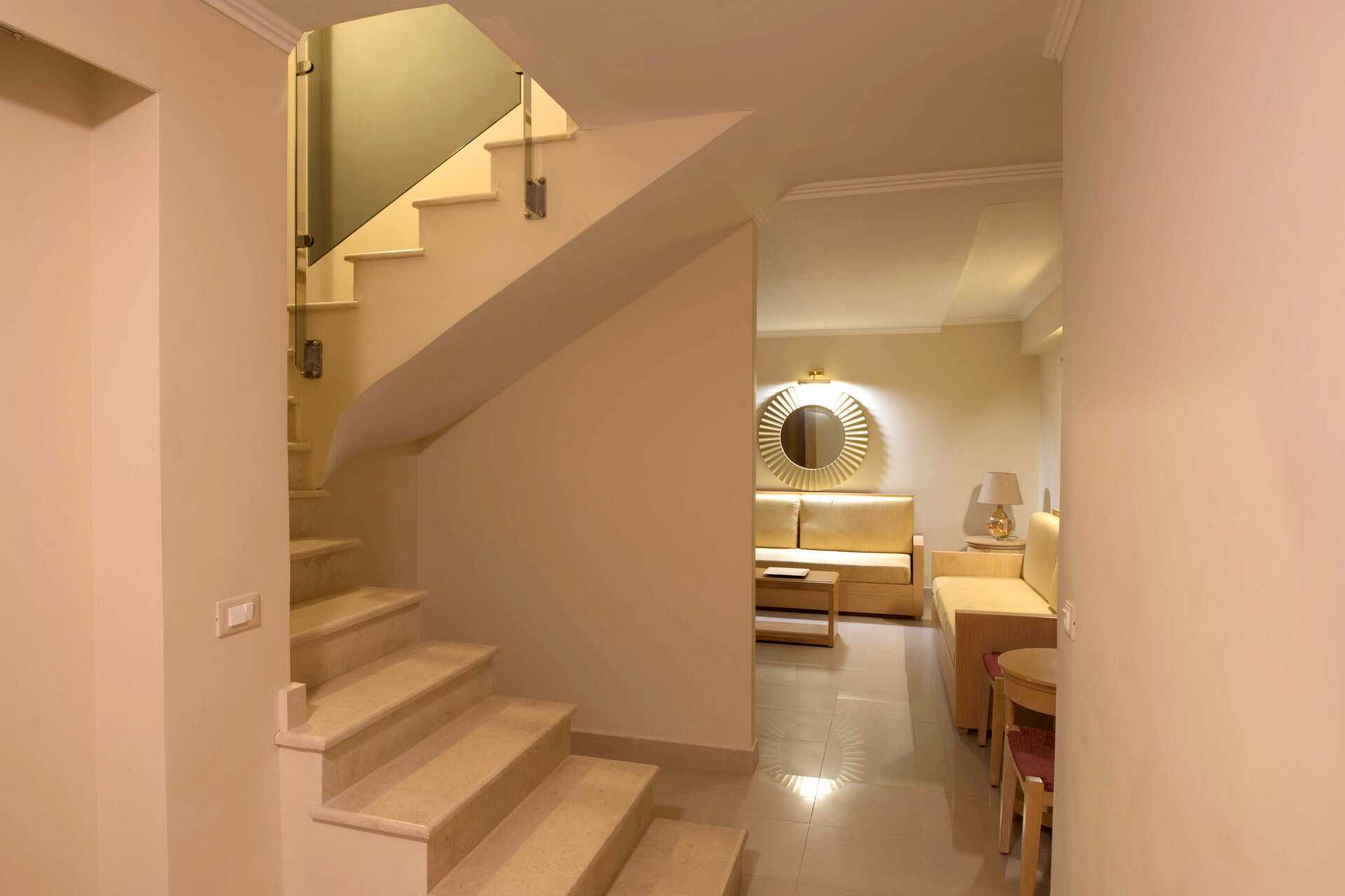 Trerumslägenheter i etage, med privat pool, som är belägna på andra och tredje våningen. Balkong av varierande utförande och storlek. Den privata poolen nås via en trappa från balkongen. På entréplan finns kombinerat vardagsrum och minikök samt ett sovrum med två enkelsängar eller en dubbelsäng samt ett badrum. En trappa upp finns ett sovrum med två enkelsängar eller en dubbelsäng samt ett badrum. Möjlighet till extrabädd i bäddsoffa. Minikök med kokplattor, kylskåp, mikrovågsugn, vattenkokare, kaffebryggare/kaffepress och enkel köksutrustning. Wifi och luftkonditionering ingår. Deponering mot avgift. Tv med internationella kanaler. Hårtork. Badrum med dusch och wc. Städning 6 ggr/vecka.