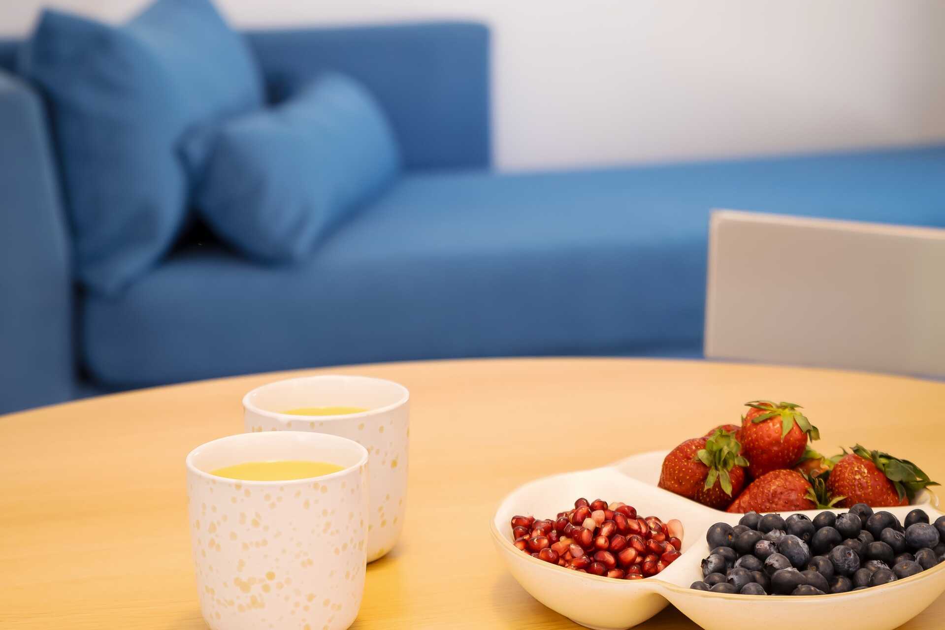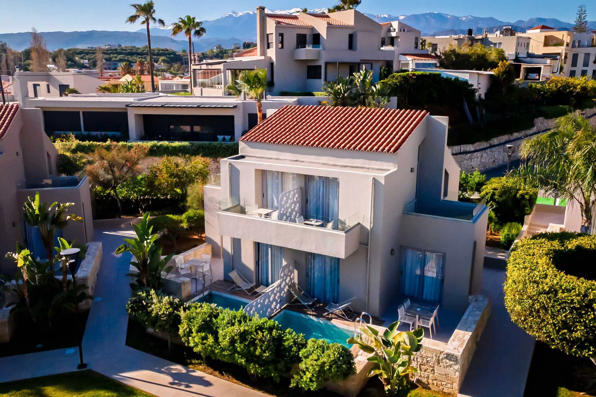 Tvårumslägenhet med balkong, markbalkong, markterrass (som nås via ett trappsteg) eller med stor balkong, vissa lägenheter har poolutsikt. Lägenheterna med markbalkong eller markterrass ligger i Village-delen och lägenheterna med balkong ligger i Royal och Village-delen. Ett sovrum och ett kombinerat vardagsrum med minikök. En dubbelsäng. Möjlighet till extrabäddar i bäddsoffor. Minikök med kokplattor, kylskåp, kaffebryggare, vattenkokare och enkel köksutrustning. Wifi, luftkonditionering och deponering ingår. Tv med internationella kanaler. Hårtork. Badrum med badkar eller dusch samt wc. Städning 6 ggr/vecka.