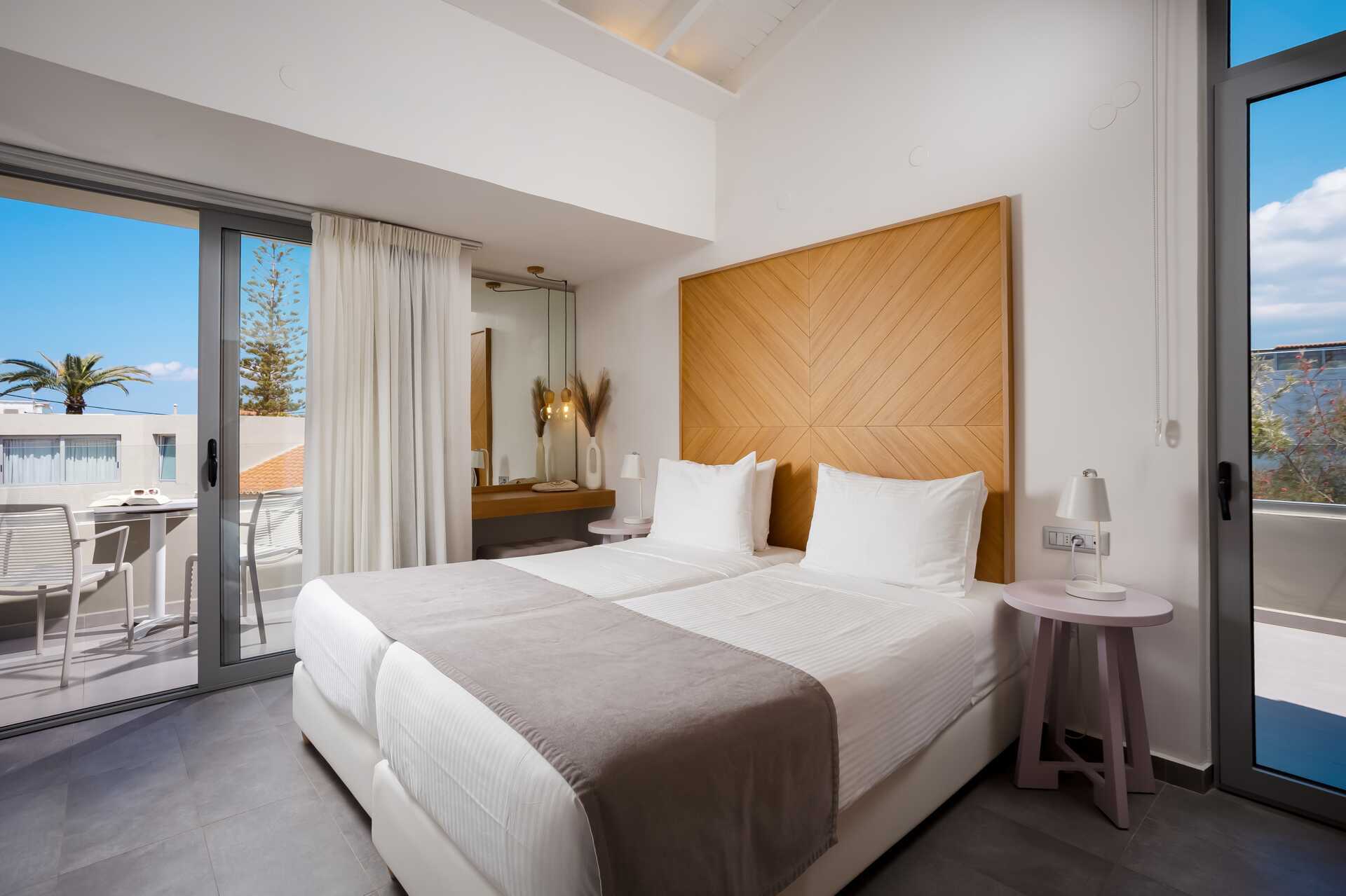 Trerumslägenhet med balkong med poolutsikt eller med stor balkong med poolutsikt. Lägenheterna ligger i Village-delen. Två sovrum och ett kombinerat vardagsrum med minikök. Två enkelsängar i varje sovrum. Minikök med kokplattor, kylskåp, kaffebryggare, vattenkokare och enkel köksutrustning. Wifi, luftkonditionering och deponering ingår. Luftkonditionering finns i varje rum. Tv med internationella kanaler. Hårtork. Badrum med badkar eller dusch samt wc. Städning 6 ggr/vecka.
