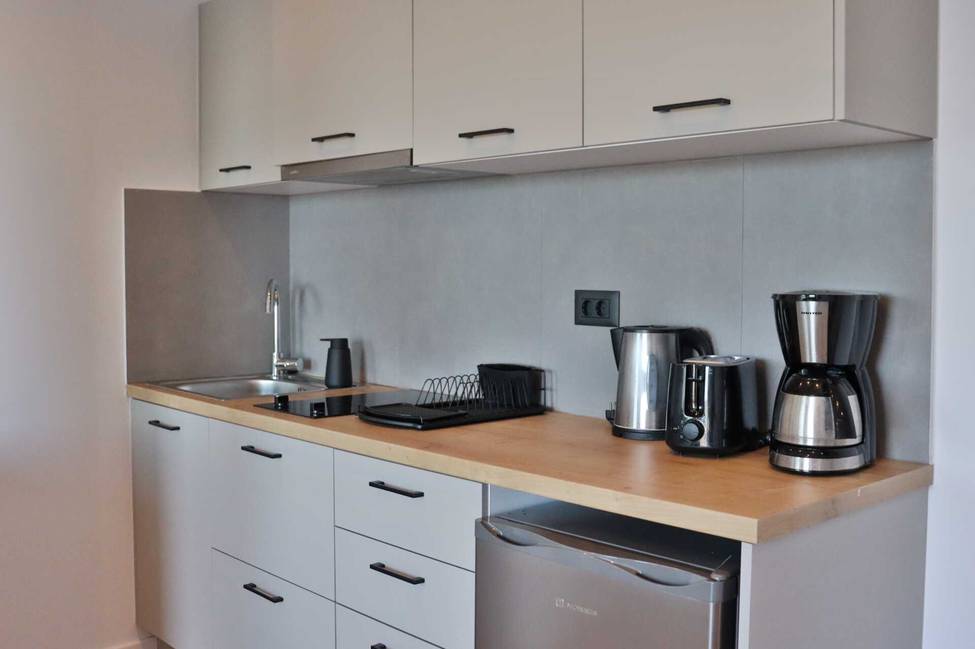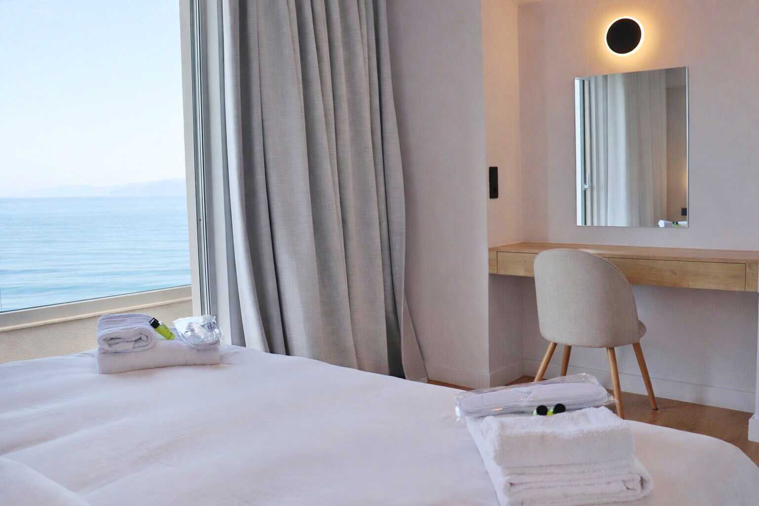 Tvårumslägenheter med balkong eller terrass och havsutsikt. Ett sovrum och ett kombinerat vardagsrum med minikök. En dubbelsäng eller två enkelsängar. Möjlighet till extrabädd i bäddsoffa med utdragbar säng. Minikök med kokplattor, kylskåp, vattenkokare, kaffebryggare och enkel köksutrustning. Wifi, luftkonditionering och deponering ingår. Tv med en lokal kanal. Hårtork. Badrum med dusch och wc. Städning 6 ggr/vecka.
