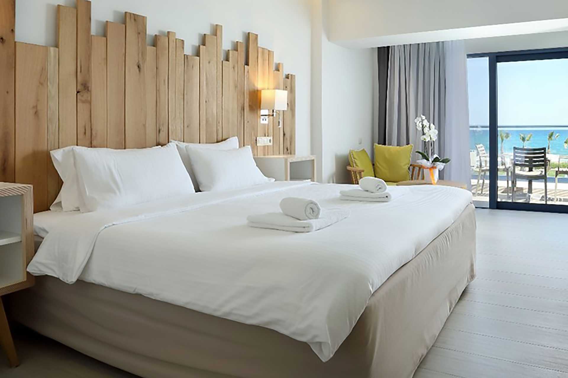 Juniorsviter med uteplats och tillgång till delad pool. Juniorsviterna ligger vid stranden med begränsad havsutsikt. En dubbelsäng. Wifi, luftkonditionering och deponering ingår. Kylskåp. Mikrovågsugn. Nespresso kaffemaskin - kapslar ingår och fylls på varje dag. Välkomstpaket med frukt och vin väntar vid ankomst. Tv med internationella kanaler. Strykjärn och strykbräda. Badrockar och tofflor. Badrum med dusch och wc. Städning 7 ggr/vecka. Barn under två år räknas in i maxantalet personer i rummet.