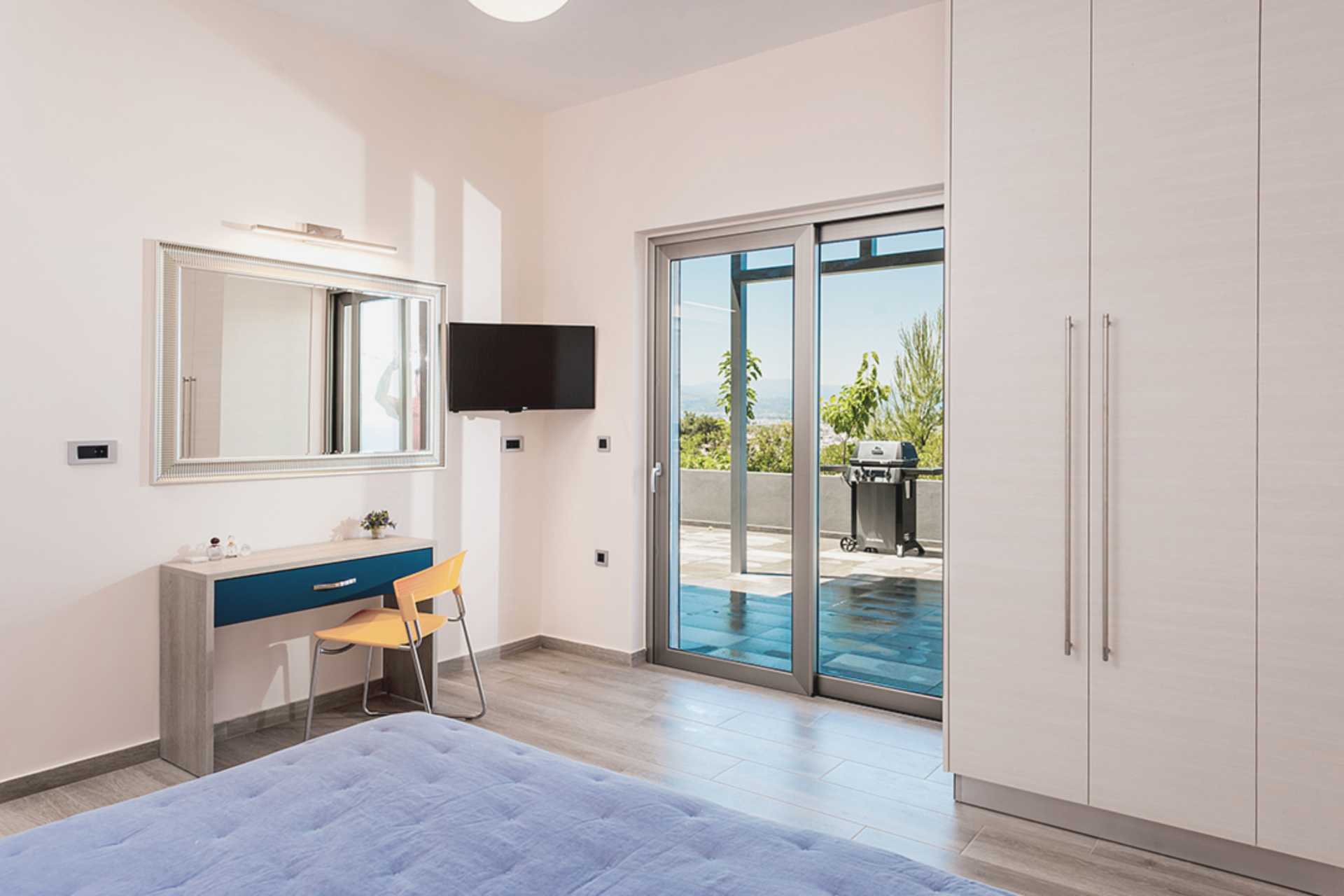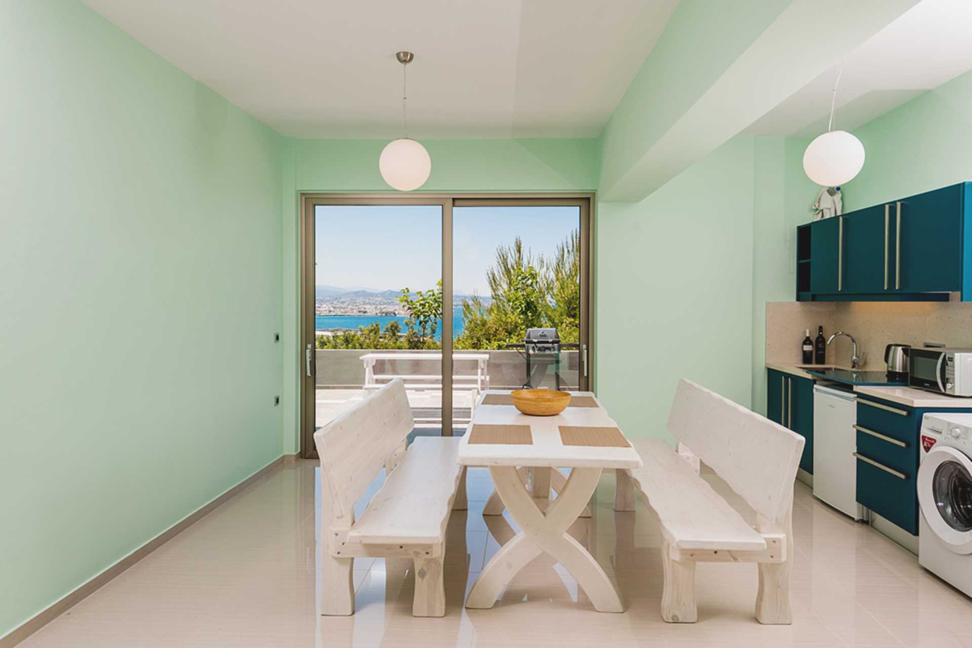 Blue Sea Chania Villa är byggd i två våningar med vacker havsutsikt. Balkong med havsutsikt med bord, stolar och gasolgrill. På södra sidan av villan finns en pool med solstolar och ett parasoll. Bordsfotboll och biljard. Fem sovrum och ett kombinerat vardagsrum/kök. Fem sovrum med en dubbelsäng eller två enkelsängar. Möjlighet till extrabäddar i bäddsoffor. Kök med spis, två ugnar, kylskåp och frys, vattenkokare, kaffebryggare, köksutrustning, matplats samt tvättmaskin och diskmaskin. Wifi, luftkonditionering i alla rum och deponering ingår. Tv med internationella kanaler finns i alla rum. Hårtork. Fyra badrum med dusch samt wc. Villan städas innan ankomst och en städning ingår per vecka. Handdukar och sängkläder finns.