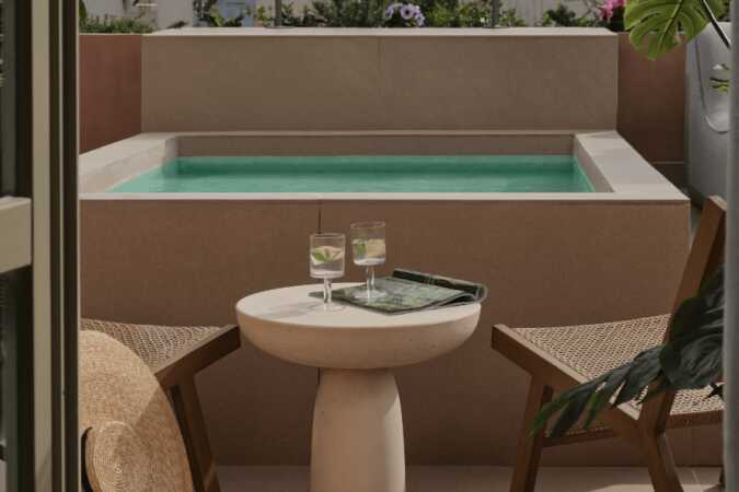 Juniorsvit med markterrass. På uteplatsen finns en jacuzzi samt solstolar. Trappor upp till jacuzzin. En dubbelsäng. Minibar. Nespresso kaffemaskin. Vattenkokare samt kaffe och te. Wifi, luftkonditionering och deponering ingår. Tv med internationella kanaler. Poolhanddukar ingår och finns på rummet. Badrockar och tofflor. Hårtork. Badrum med dusch och wc. Städning 7 ggr/vecka.