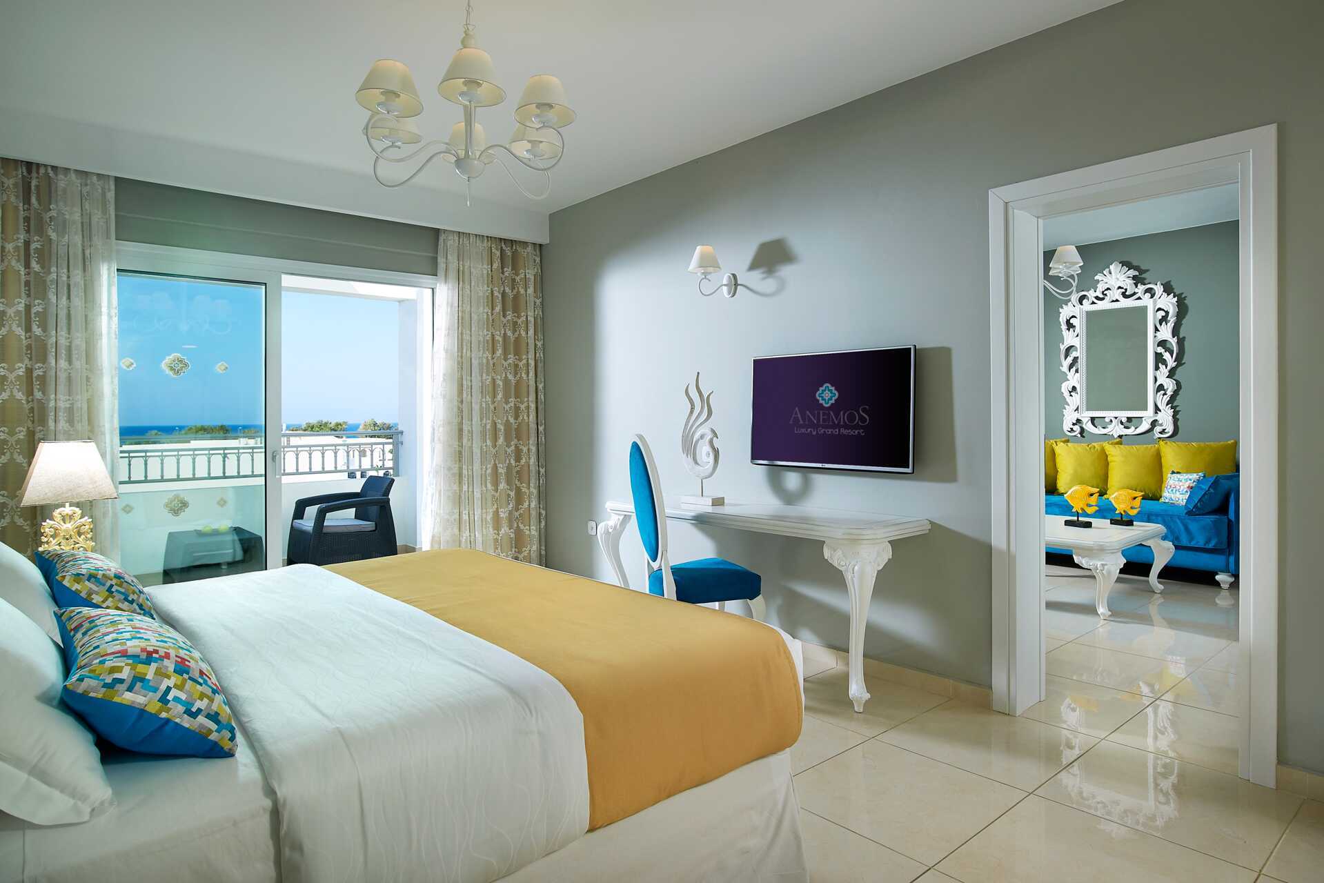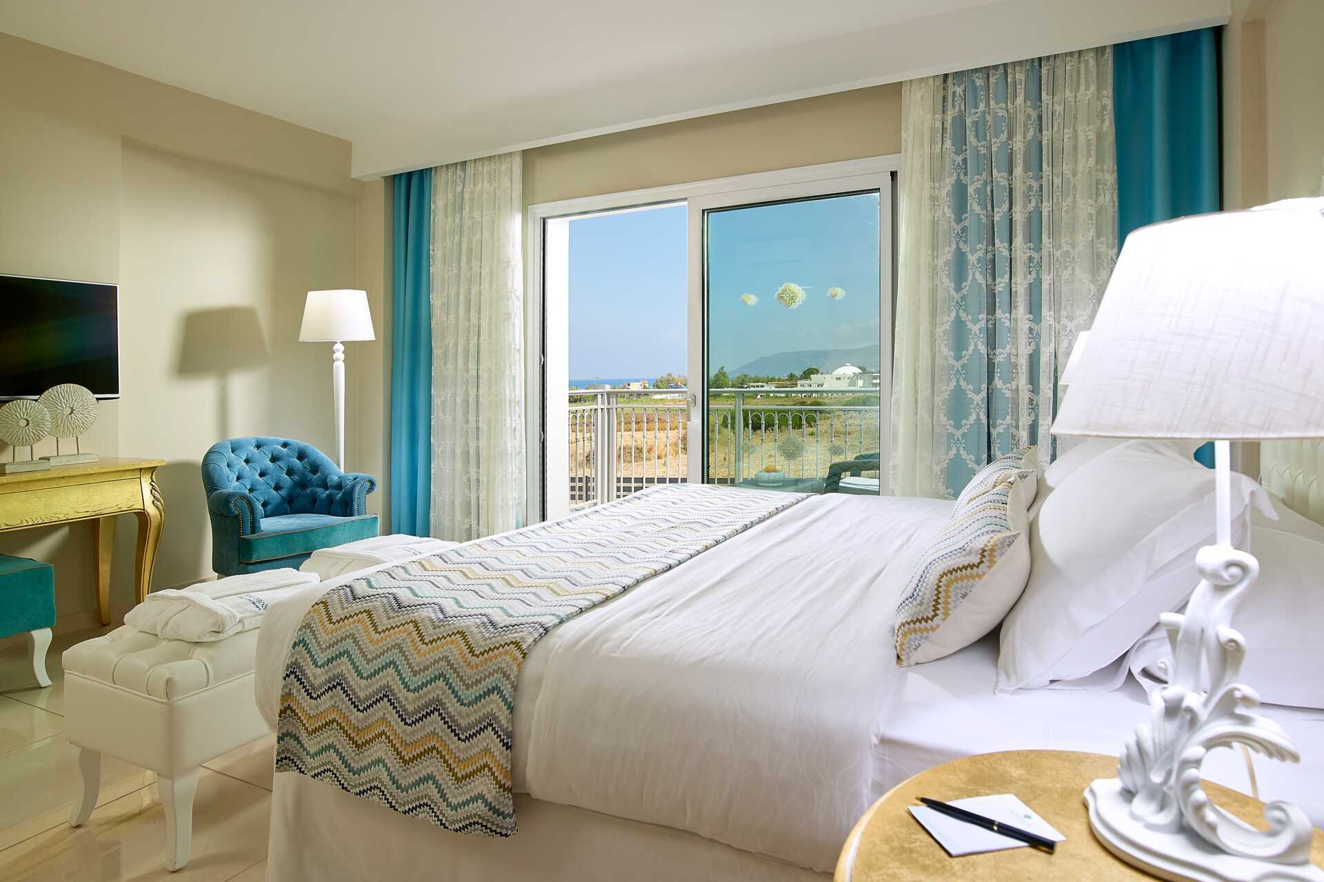 Deluxerum med balkong eller terrass, vissa vetter mot havet. En dubbelsäng eller två enkelsängar. Möjlighet till extrabädd i enkelsäng eller i hopfällbar säng. Välj din favoritkudde från hotellets kuddmeny. Wifi, luftkonditionering och deponering ingår. Minibar. Vattenkokare samt kaffe och te. Nespressomaskin - två kapslar ingår vid ankomst - därefter finns det att köpa. Tv med internationella kanaler. Strykjärn och strykbräda. Badrockar och tofflor. Hårtork. Badrum med badkar eller dusch samt wc. Städning 7 ggr/vecka. Barn under två år räknas in i max antal personer i rummet.