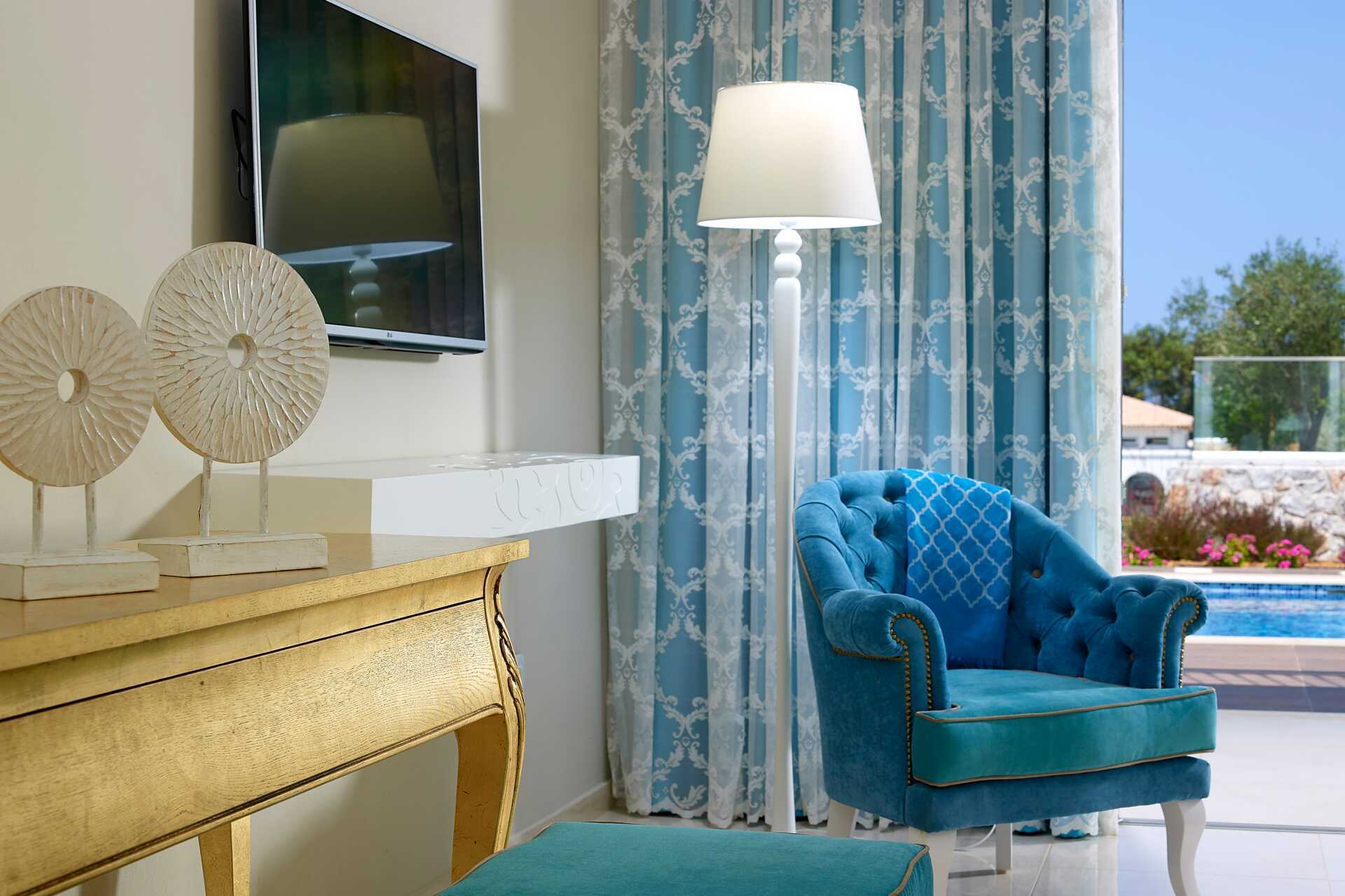 Dubbelrum med utgång till privat pool från markterrassen. En dubbelsäng eller två enkelsängar. Möjlighet till extrabädd i enkelsäng eller i hopfällbar säng. Välj din favoritkudde från hotellets kuddmeny. Wifi, luftkonditionering och deponering ingår. Minibar. Vattenkokare samt kaffe och te. Nespressomaskin - två kapslar ingår vid ankomst - därefter finns det att köpa. Tv med internationella kanaler. Strykjärn och strykbräda. Badrockar och tofflor. Hårtork. Badrum med badkar eller dusch samt wc. Städning 7 ggr/vecka. Barn under två år räknas in i max antal personer i rummet.