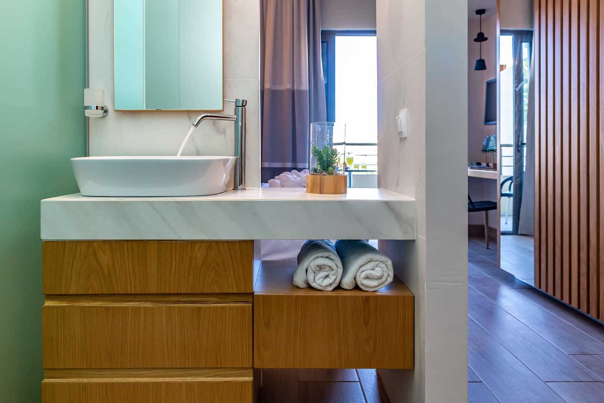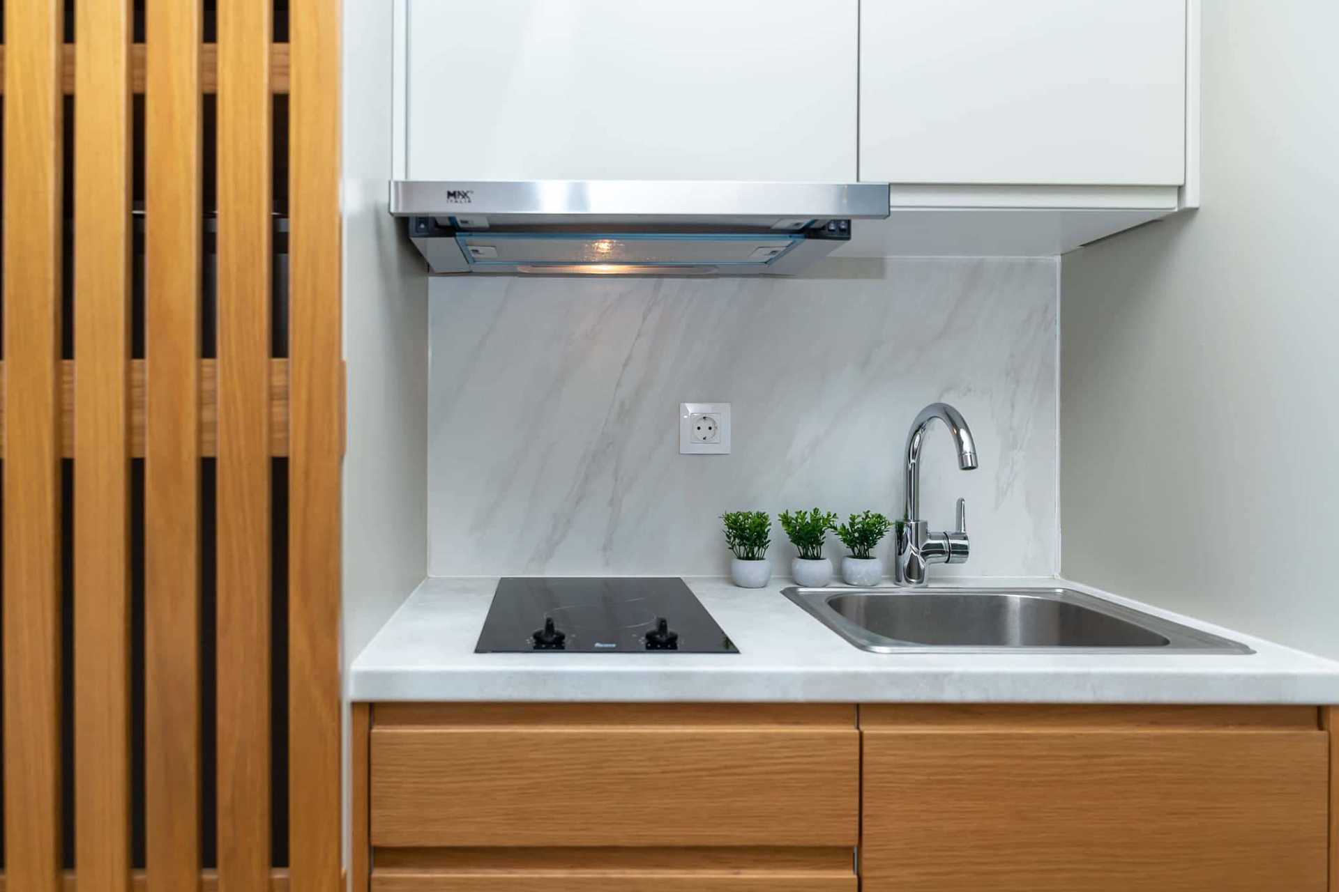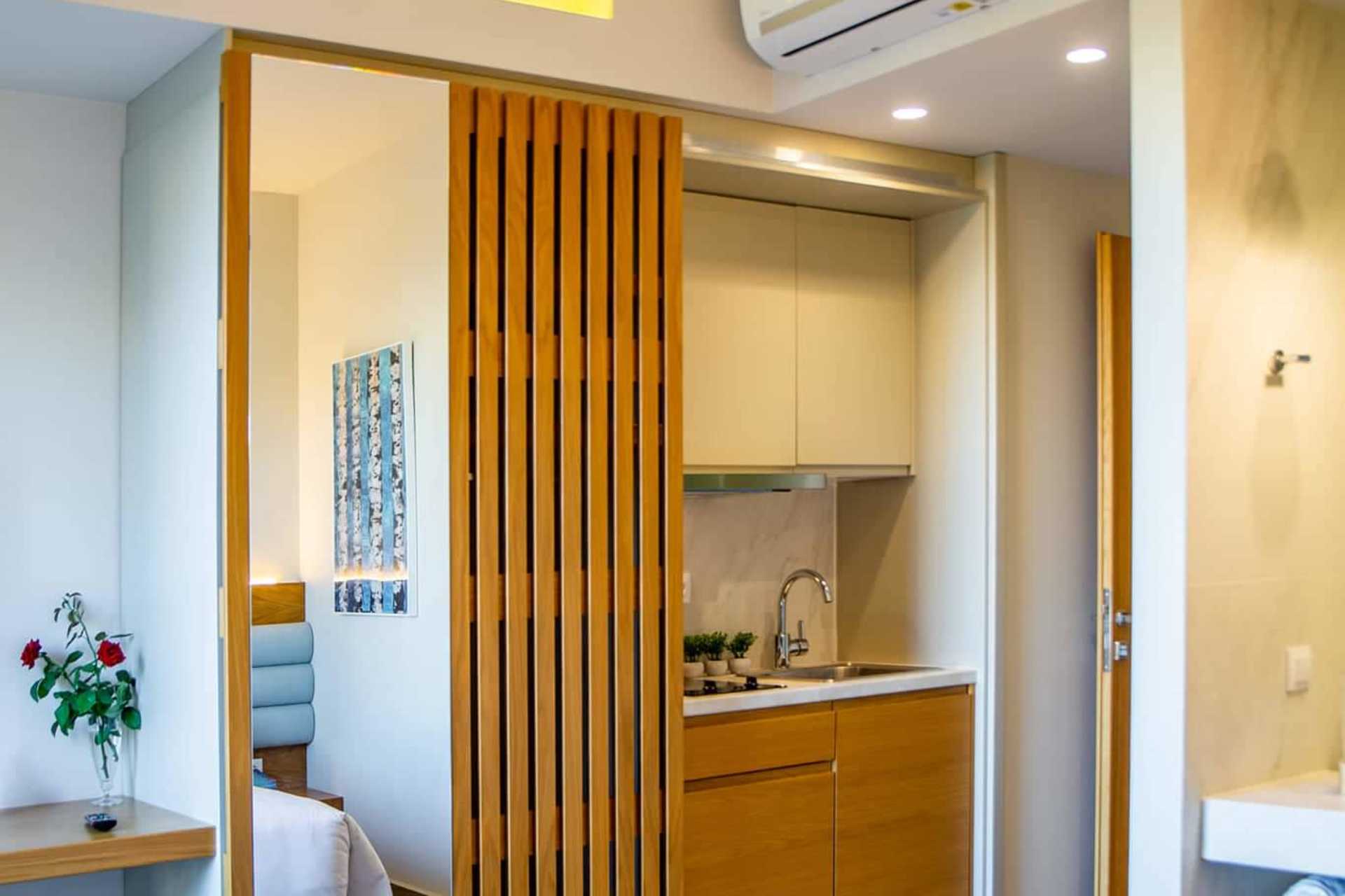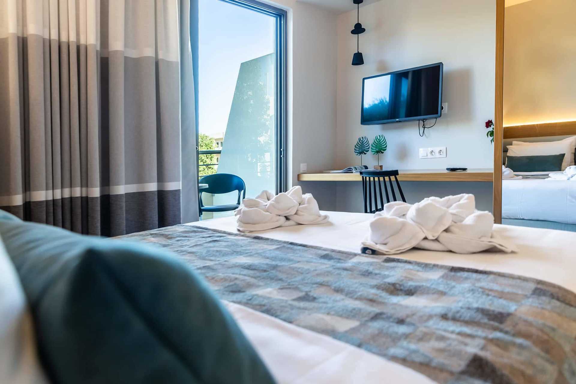 Enrumslägenhet superior med balkong. Sovrum kombinerat med minikök. En dubbelsäng eller två enkelsängar. Minikök med kokplattor, kylskåp, vattenkokare, kaffebryggare och enkel köksutrustning. Wifi och luftkonditionering ingår. Deponering mot avgift. Tv med internationella kanaler. Badrum med dusch och wc. Städning 6 ggr/vecka. Barn under två år räknas in i max antal personer i lägenheten.