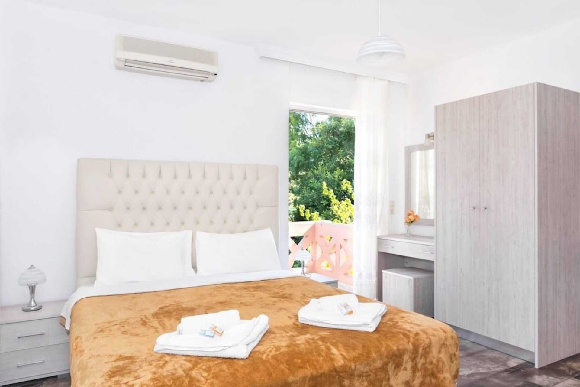 Tvårumslägenhet med balkong eller markterrass. Sovrum och kombinerat vardagsrum med minikök. En dubbelsäng eller två enkelsängar. Möjlighet till extrabädd i bäddsoffa. Minikök med kokplattor, kylskåp och enkel köksutrustning. Wifi ingår. Luftkonditionering mot avgift. Tv med lokala kanaler. Hårtork. Badrum med dusch och wc. Städning 3 ggr/vecka. Barn under två år räknas in i maxantalet personer i lägenheten.