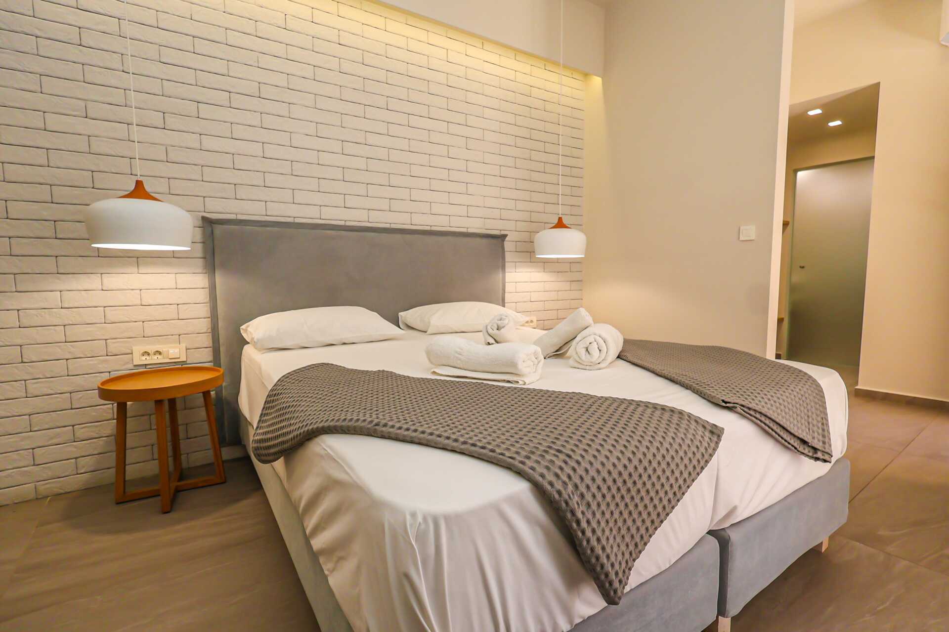 Trerumslägenheter med balkong. Två sovrum med en dubbelsäng eller två enkelsängar i varje sovrum. Minikök med kokplattor, kylskåp och enkel köksutrustning. Wifi och luftkonditionering ingår. Deponering mot avgift. Badrum med dusch och wc. Städning 6 ggr/vecka.