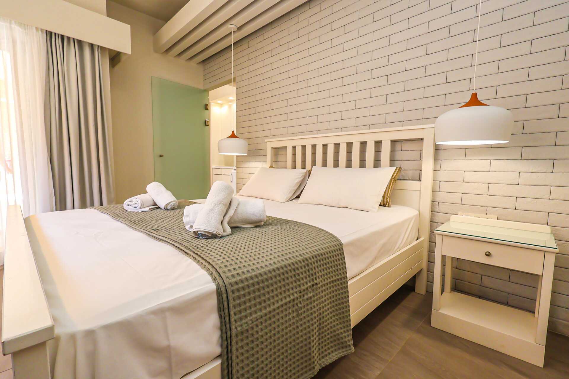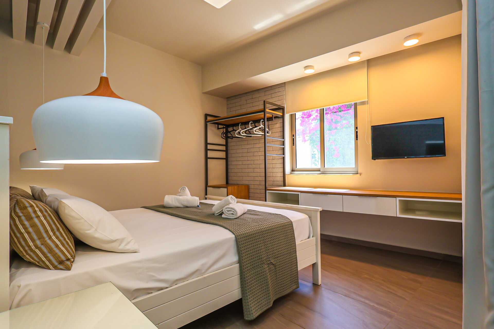Tvårumslägenheter med balkong eller delad uteplats. Ett sovrum med en dubbelsäng eller två enkelsängar. Minikök med kokplattor, kylskåp och enkel köksutrustning. Wifi och luftkonditionering ingår. Deponering mot avgift. Badrum med dusch och wc. Städning 6 ggr/vecka.