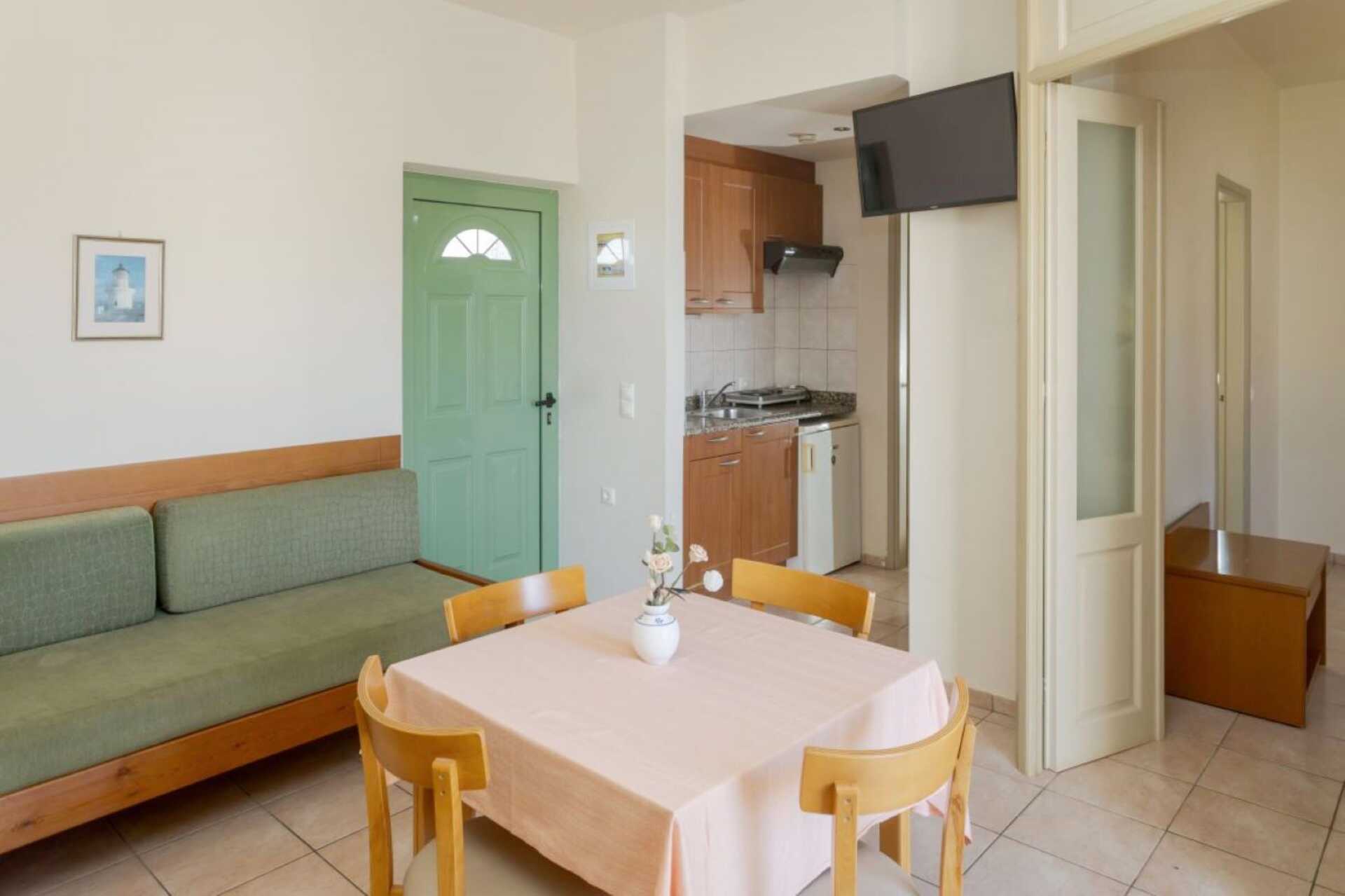 Tvårumslägenhet med balkong. Sovrum och kombinerat vardagsrum. En dubbelsäng. Möjlighet till två extrabäddar i två väggfasta bäddsoffor. Minikök med kokplattor, kylskåp och enkel köksutrustning. Wifi ingår. Luftkonditionering och deponering mot avgift. Tv med internationella kanaler. Hårtork. Badrum med badkar eller dusch samt wc. Städning 3 ggr/vecka.