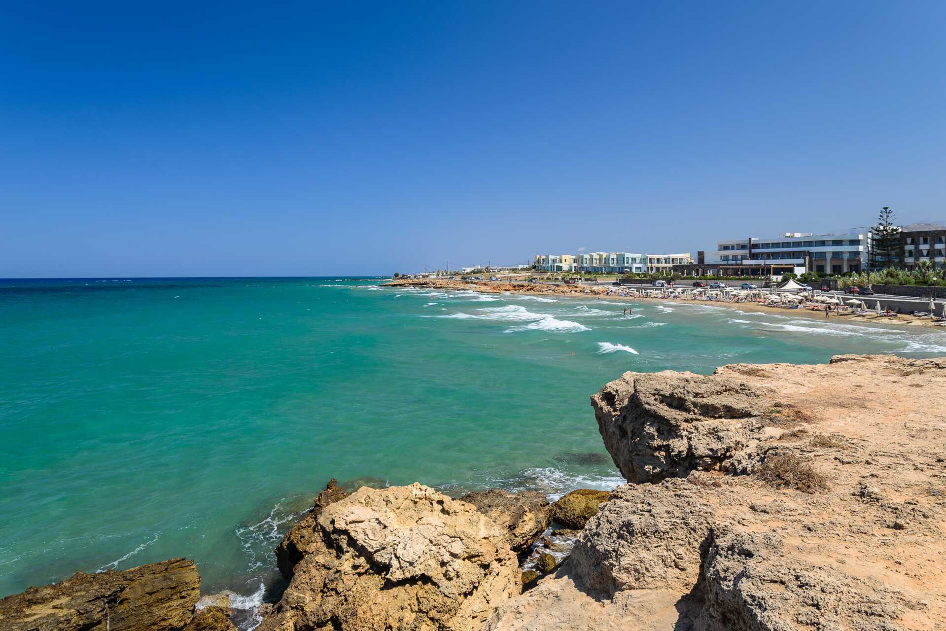 Hotellen som ligger vid stränderna på Kreta arrenderar området av kommunen och därför tillkommer en extra avgift för solstolar och parasoller.
