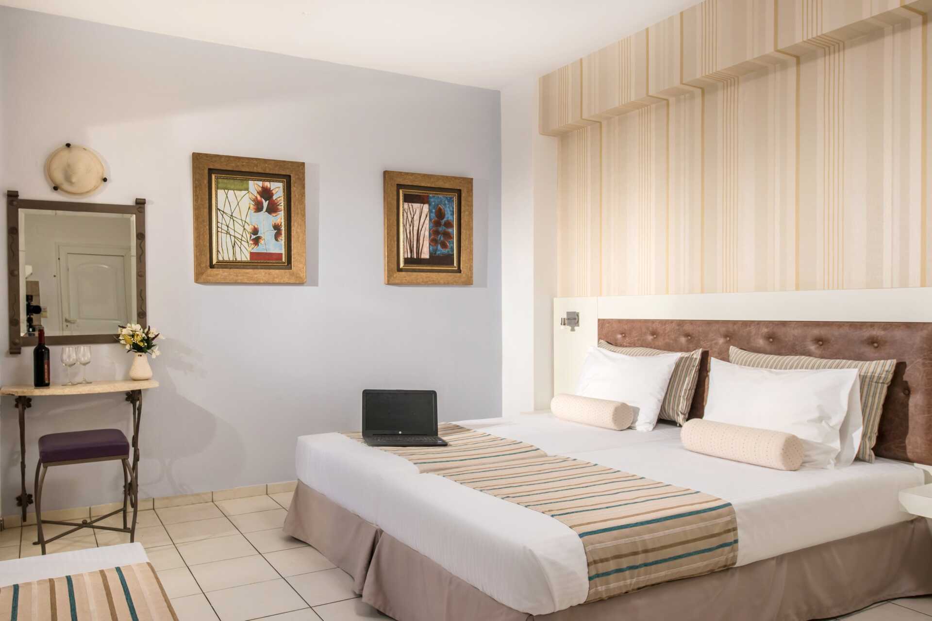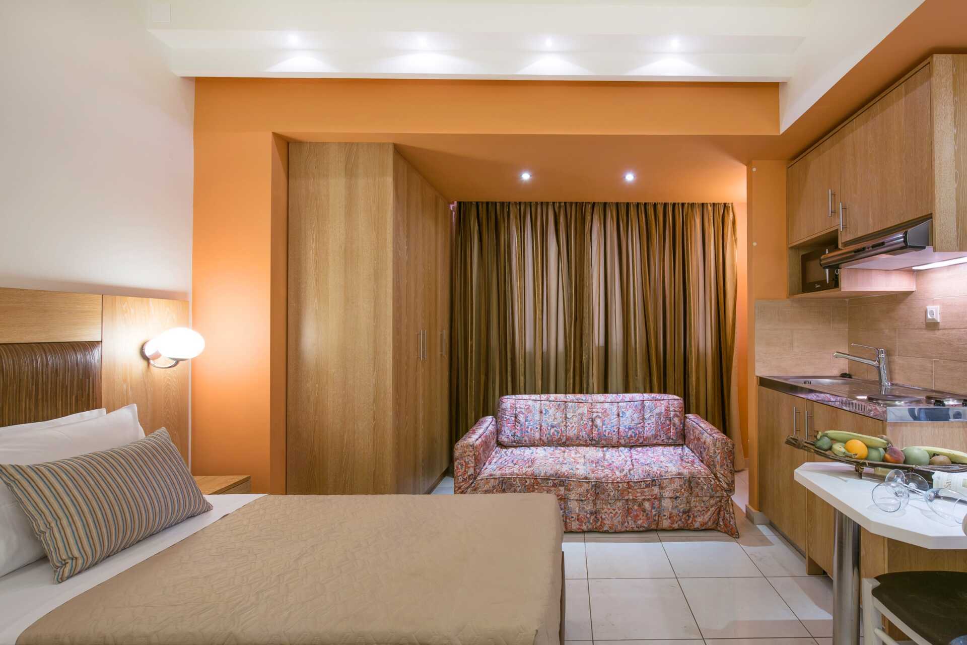Enrumslägenhet superior med balkong eller terrass. Sovrum kombinerat med minikök. Två enkelsängar. Möjlighet till extrabädd i bäddsoffa eller i hopfällbar säng. Minikök med kokplattor, kylskåp, vattenkokare, mikrovågsugn och enkel köksutrustning. Wifi ingår. Luftkonditionering och deponering mot avgift. Tv med internationella kanaler. Hårtork. Badrum med dusch och wc. Städning 2 ggr/vecka.