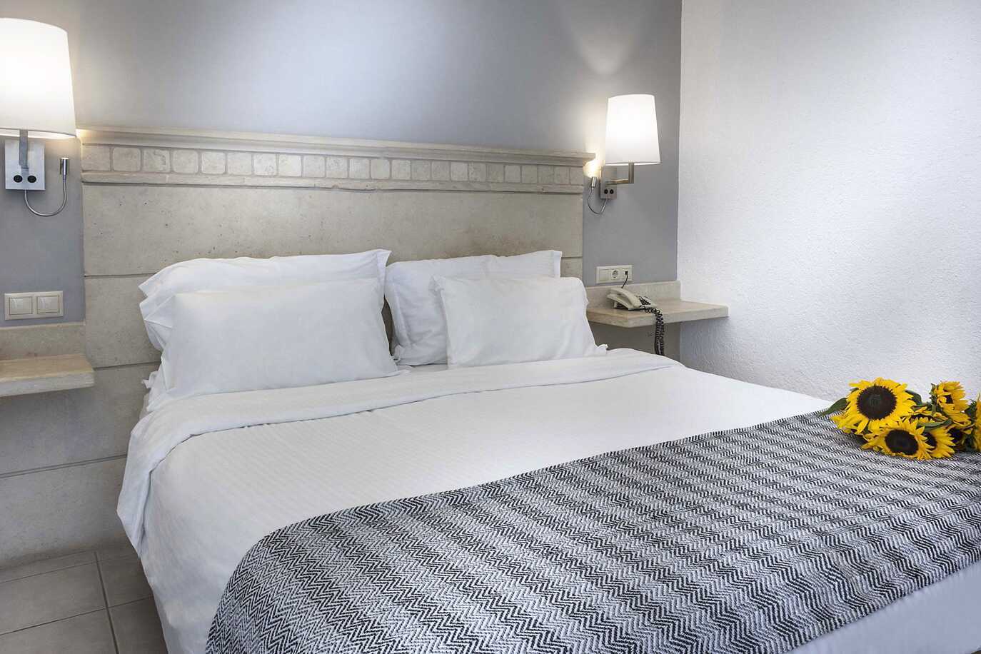 Dubbelrum med balkong. Två enkelsängar eller en dubbelsäng. Möjlighet till extrabädd i enkelsäng eller i bäddsoffa. Wifi och luftkonditionering ingår. Deponering mot avgift. Kylskåp. Vattenkokare. Tv med internationella kanaler. Hårtork. Badrum med badkar eller dusch samt wc. Städning 7 ggr/vecka.