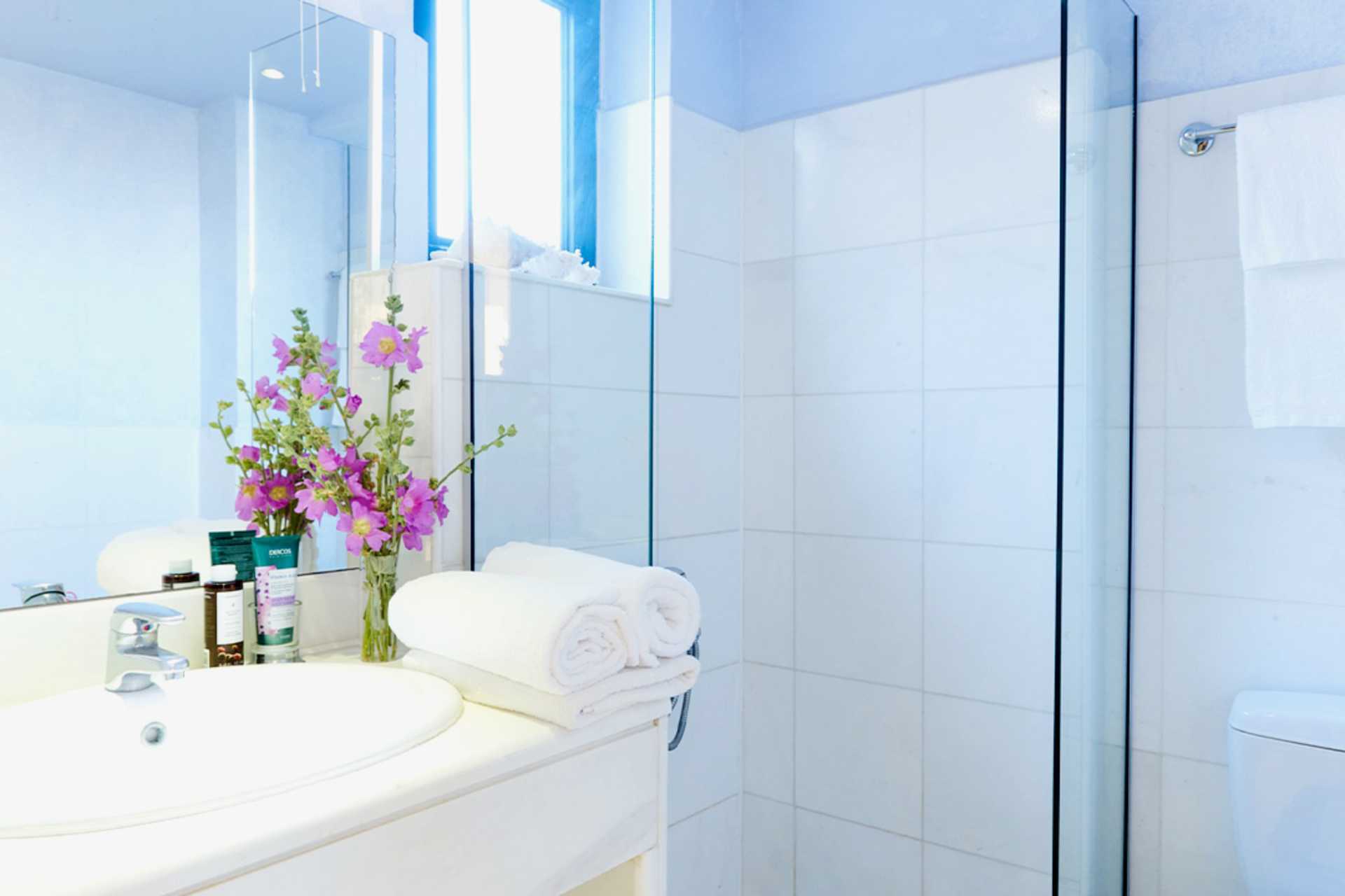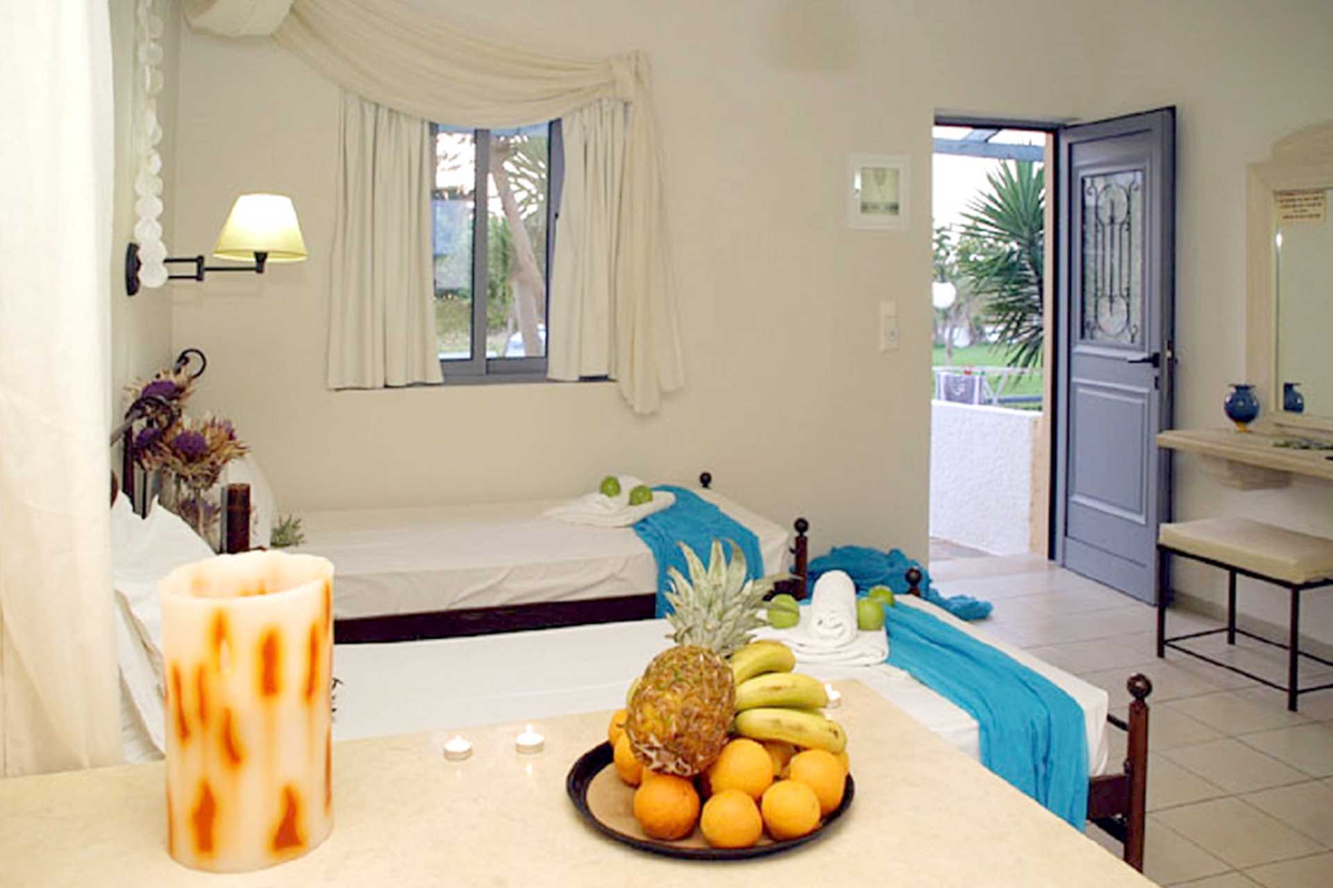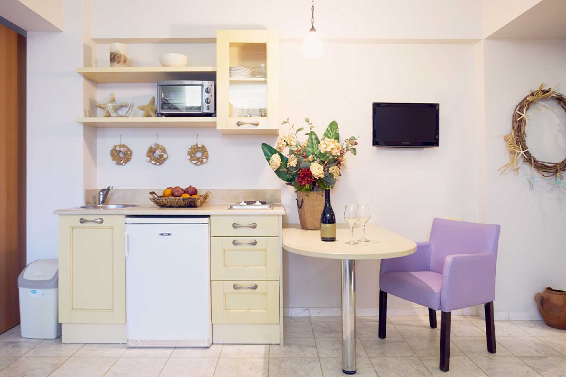 Enrumslägenhet med balkong eller terrass. Kombinerat sovrum med minikök. Två enkelsängar. Minikök med kokplattor, kylskåp, vattenkokare, kaffebryggare och enkel köksutrustning. Wifi ingår. Luftkonditionering och deponering mot avgift. Tv med internationella kanaler. Badrum med dusch och wc. Städning 5 ggr/vecka.