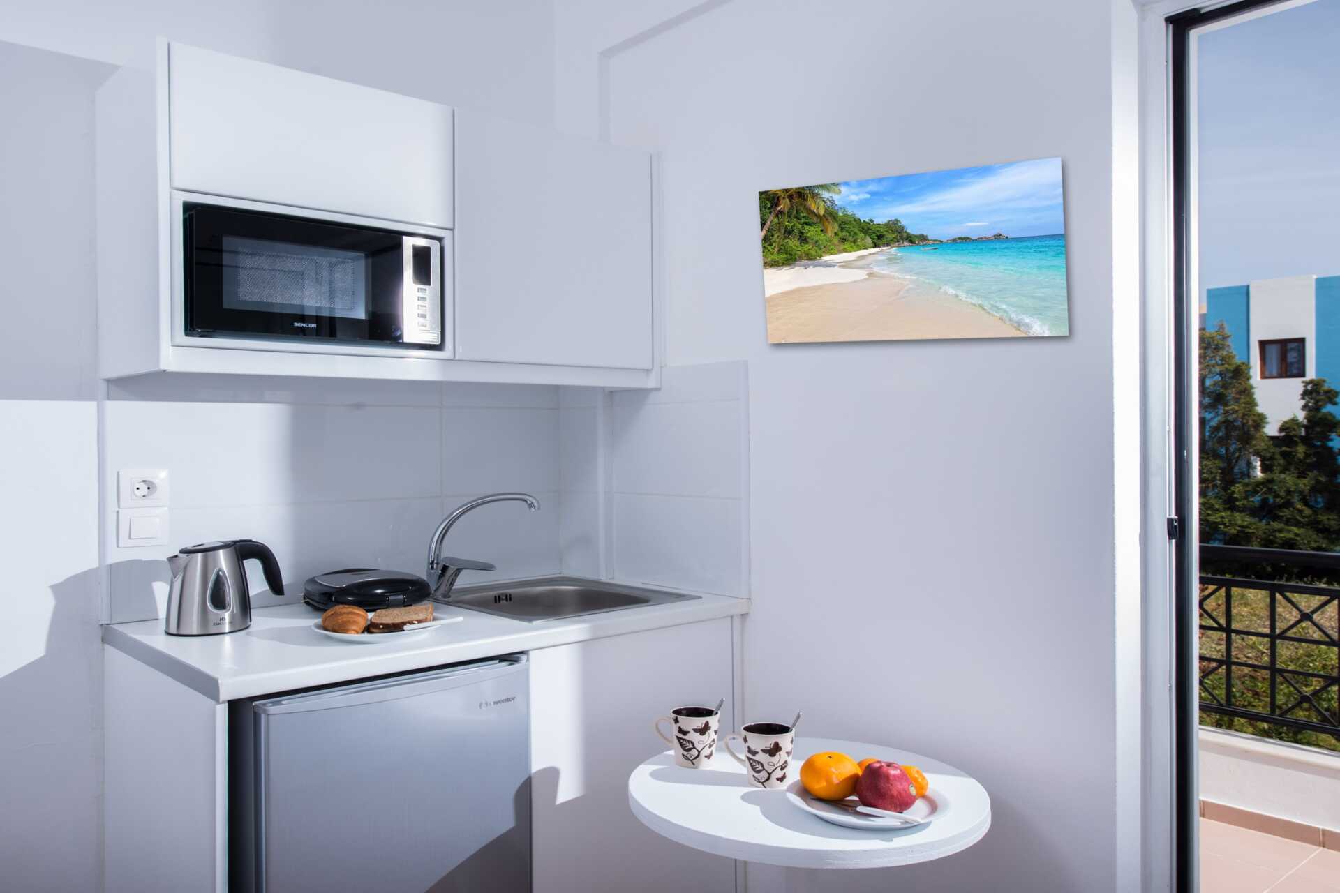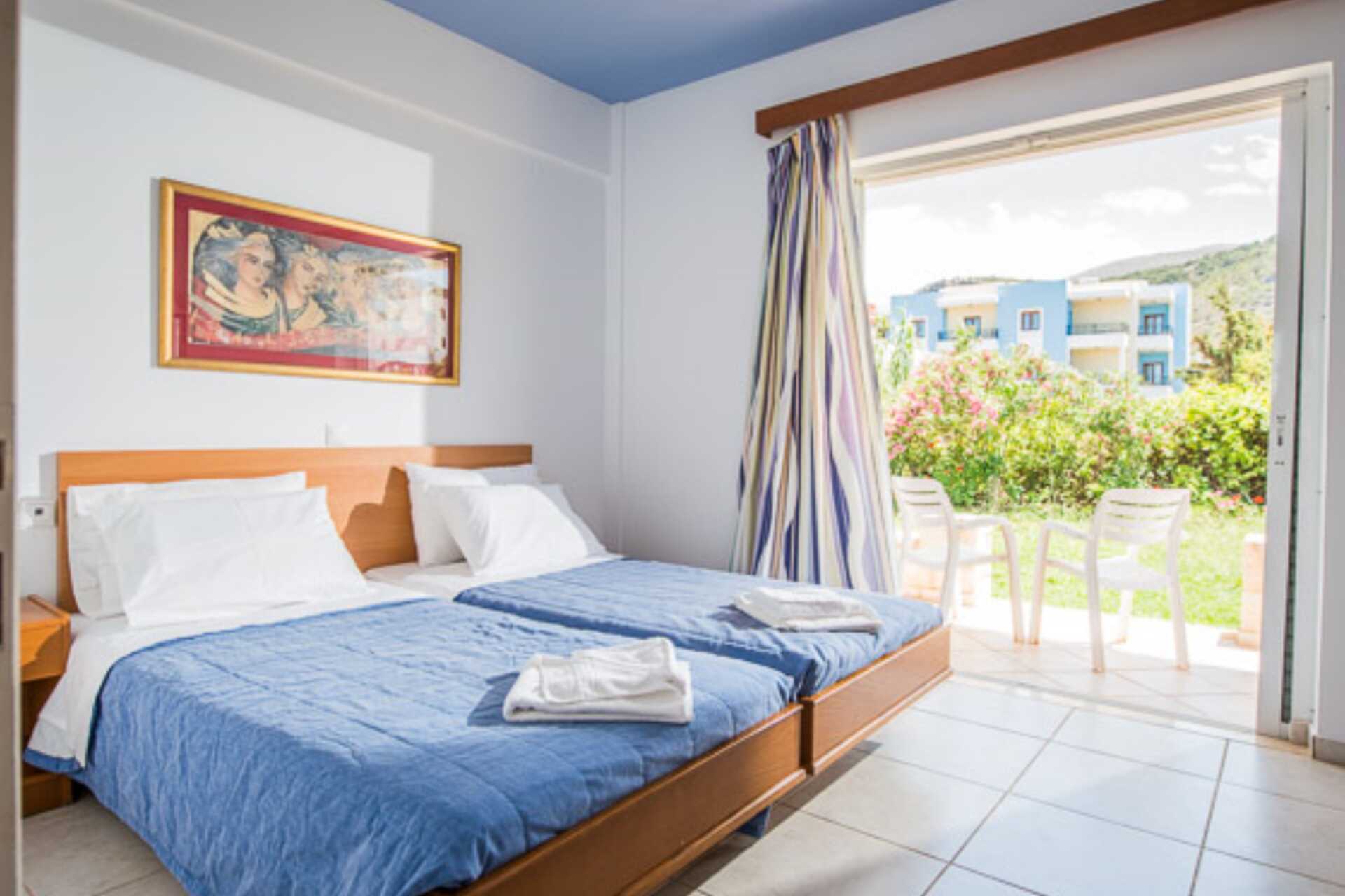 Tvårumslägenhet superior med balkong eller terrass. Ett sovrum och ett kombinerat vardagsrum/minikök. I sovrummet finns en dubbelsäng och i vardagsrummet finns möjlighet till två extrabäddar i bäddsoffa. Kök med kokplattor, kylskåp, kaffebryggare, vattenkokare, brödrost och enkel köksutrustning. Wifi och deponering ingår. Luftkonditionering mot avgift. Tv med internationella kanaler. Hårtork. Badrum med dusch och wc. Städning 7 ggr/vecka.