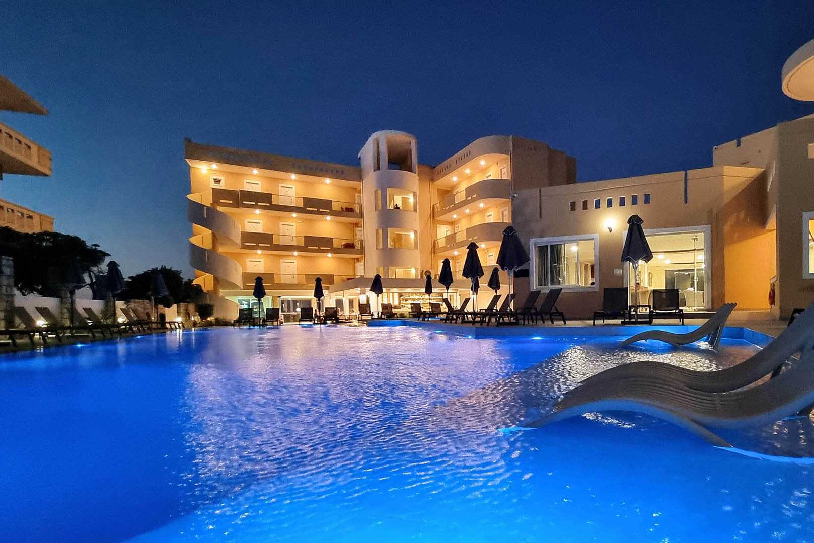 Hotellet består av tre byggnader, varav två med hiss. Minimarket. Utforskar du Kreta med hyrbil finns möjlighet till parkering utomhus på hotellet. Ca 600 meter till strandpromenaden med tavernor och caféer.