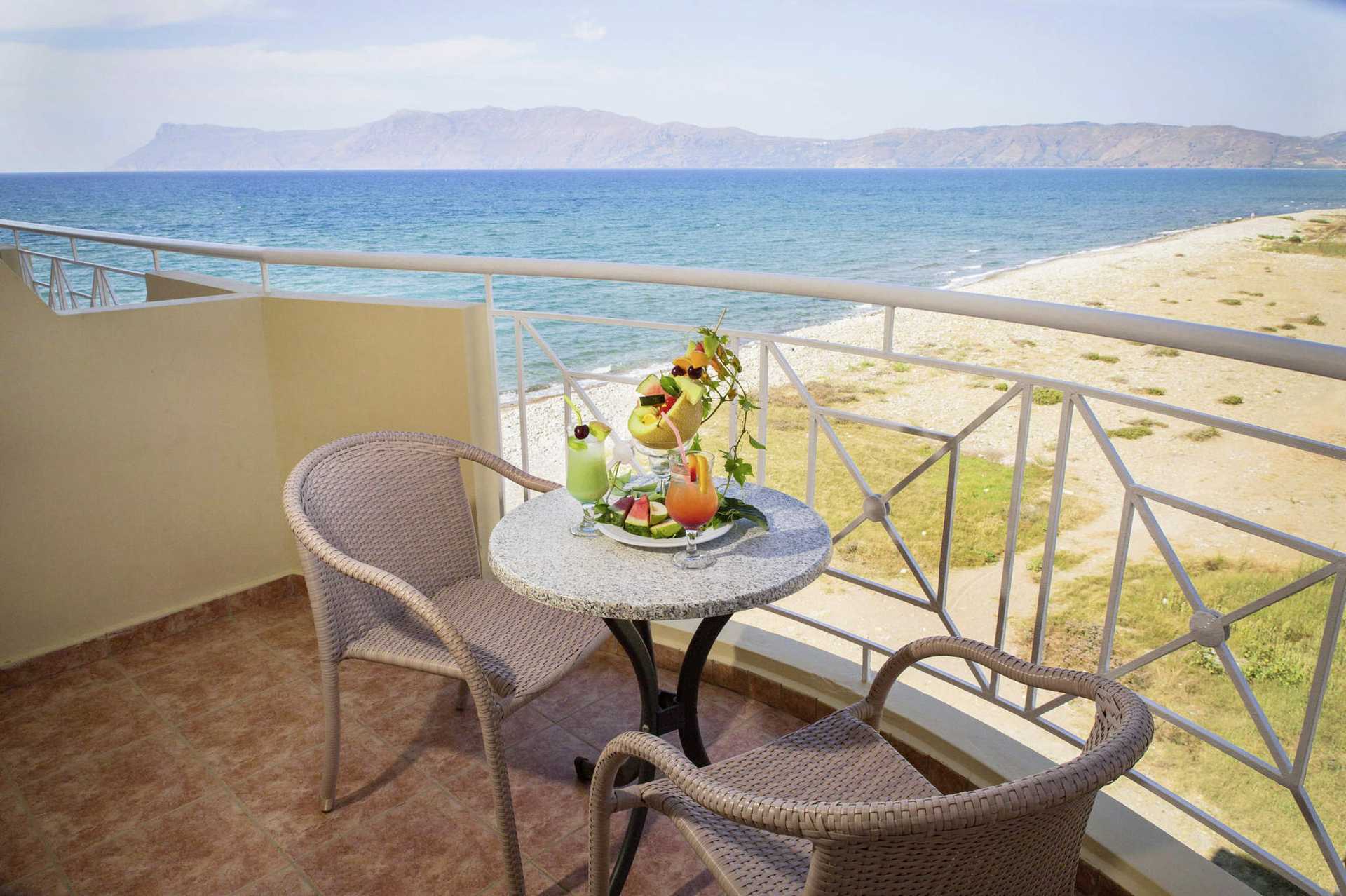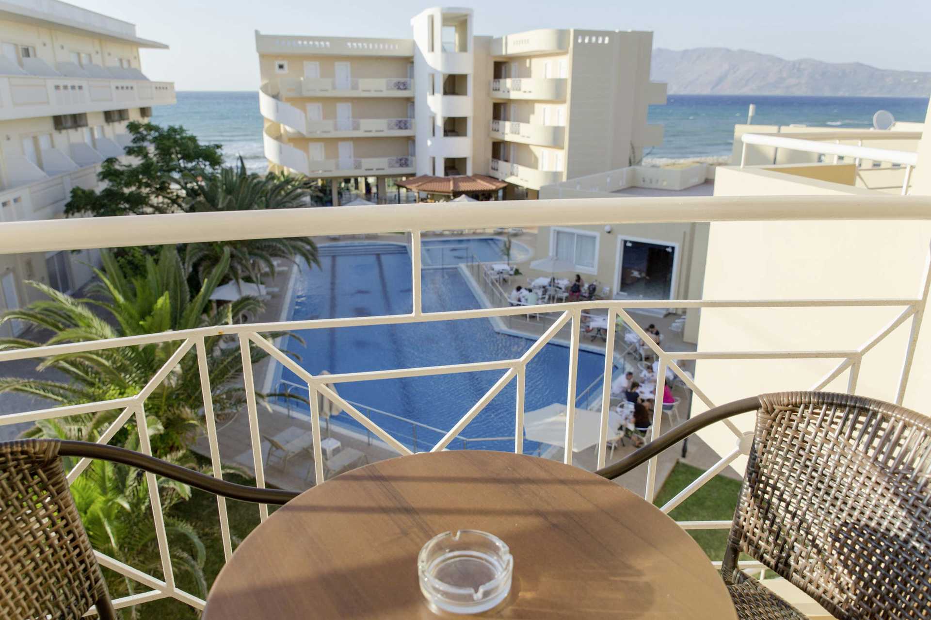 Dubbelrum med balkong med havsutsikt, med begränsad havsutsikt eller med poolutsikt. En dubbelsäng eller två enkelsängar. Möjlighet till extrabädd i bäddsoffa. Wifi och luftkonditionering ingår. Deponering mot avgift. Kylskåp. Tv med internationella kanaler. Hårtork. Badrum med badkar eller dusch samt wc. Städning 6 ggr/vecka.