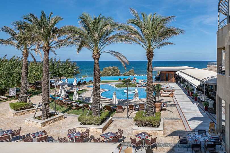 Effektiv körtid från flygplatsen i Chania (CHQ) till hotellen Kato Stalos är ca 45 minuter. Effektiv körtid från flygplatsen i Heraklion (HER) till hotellen i Kato Stalos är ca 2 timmar och 20 minuter. Restiden varierar beroende på rutt, antal hotellstopp och trafiken i området. Transfern sker vanligtvis utan medföljande Apollopersonal.