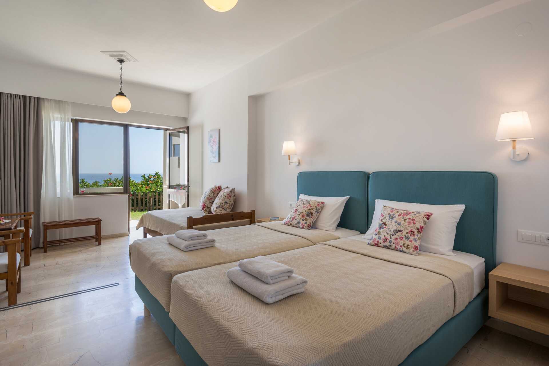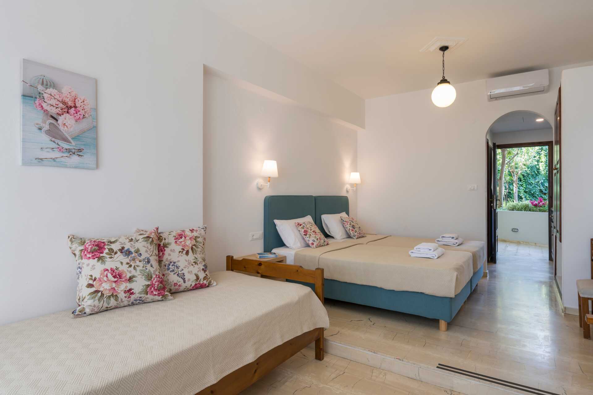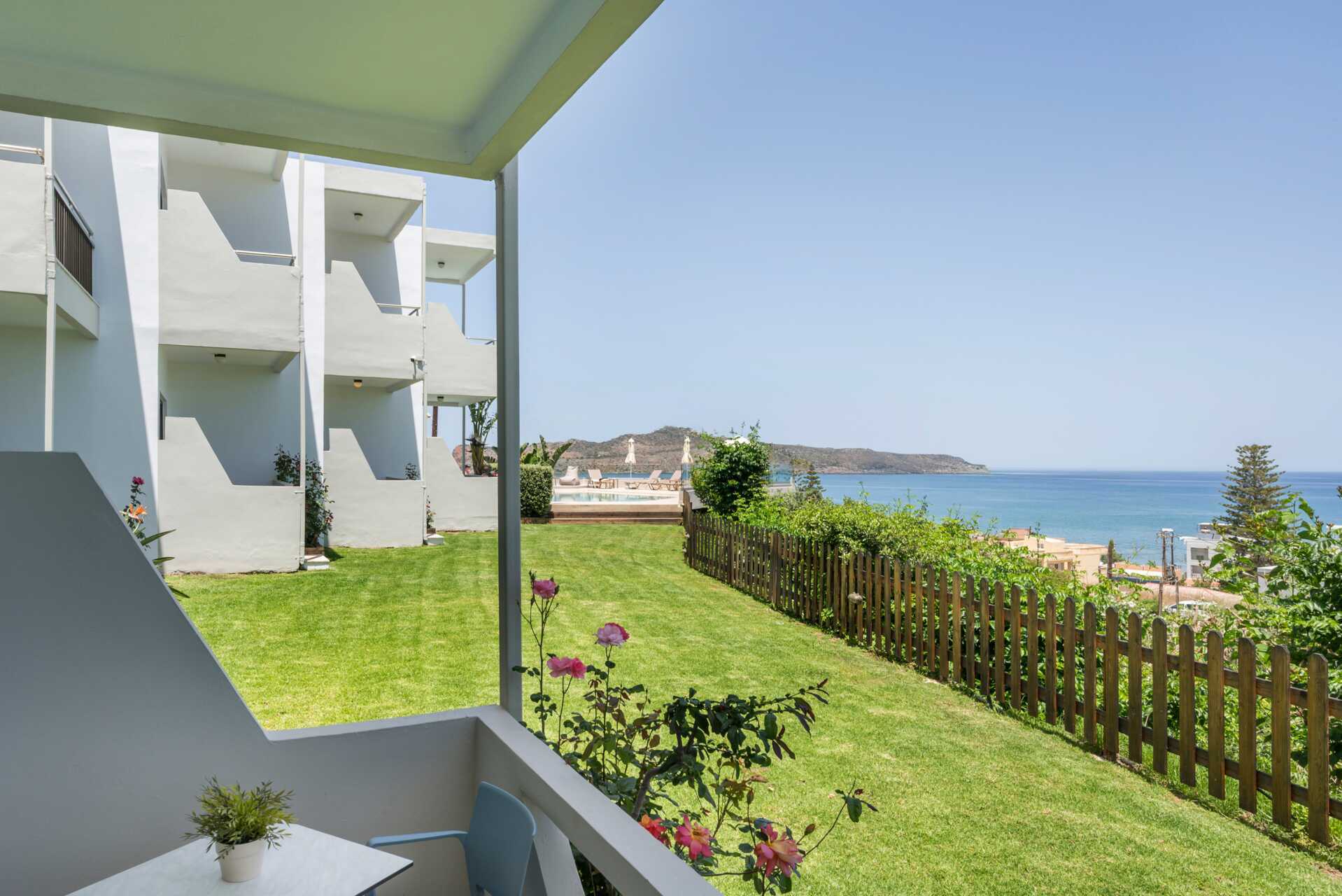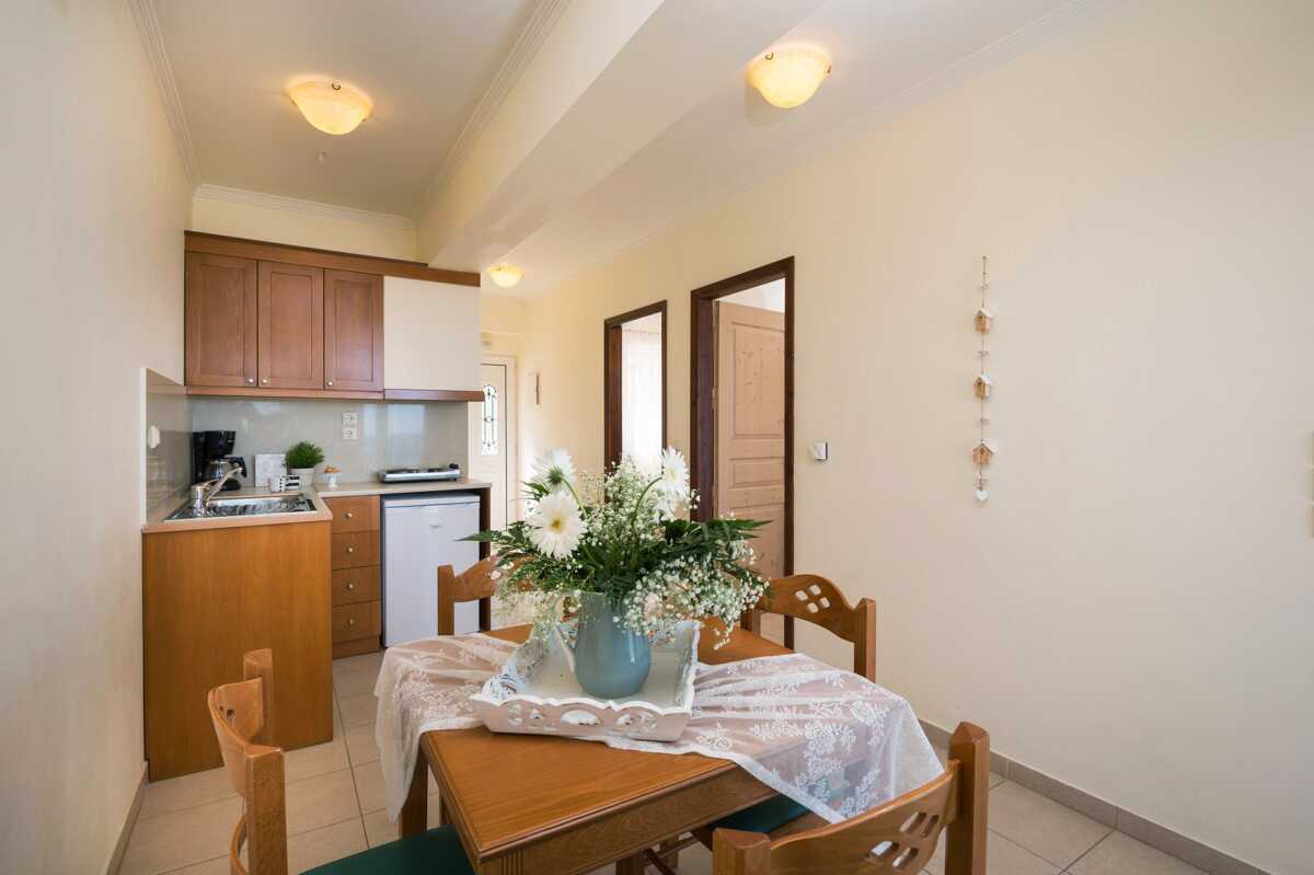 Enrumslägenhet med balkong med havsutsikt eller markterrass med begränsad havsutsikt. Kombinerat sovrum med vardagsrum och minikök. Två enkelsängar. Möjlighet till extrabädd i enkelsäng. Sovdelen ligger ett trappsteg upp. Minikök med kokplattor, kylskåp, vattenkokare, kaffebryggare och enkel köksutrustning. Wifi och luftkonditionering ingår. Deponering mot avgift. Tv med lokala kanaler. Hårtork. Badrum med badkar och wc. Städning 6 ggr/vecka.