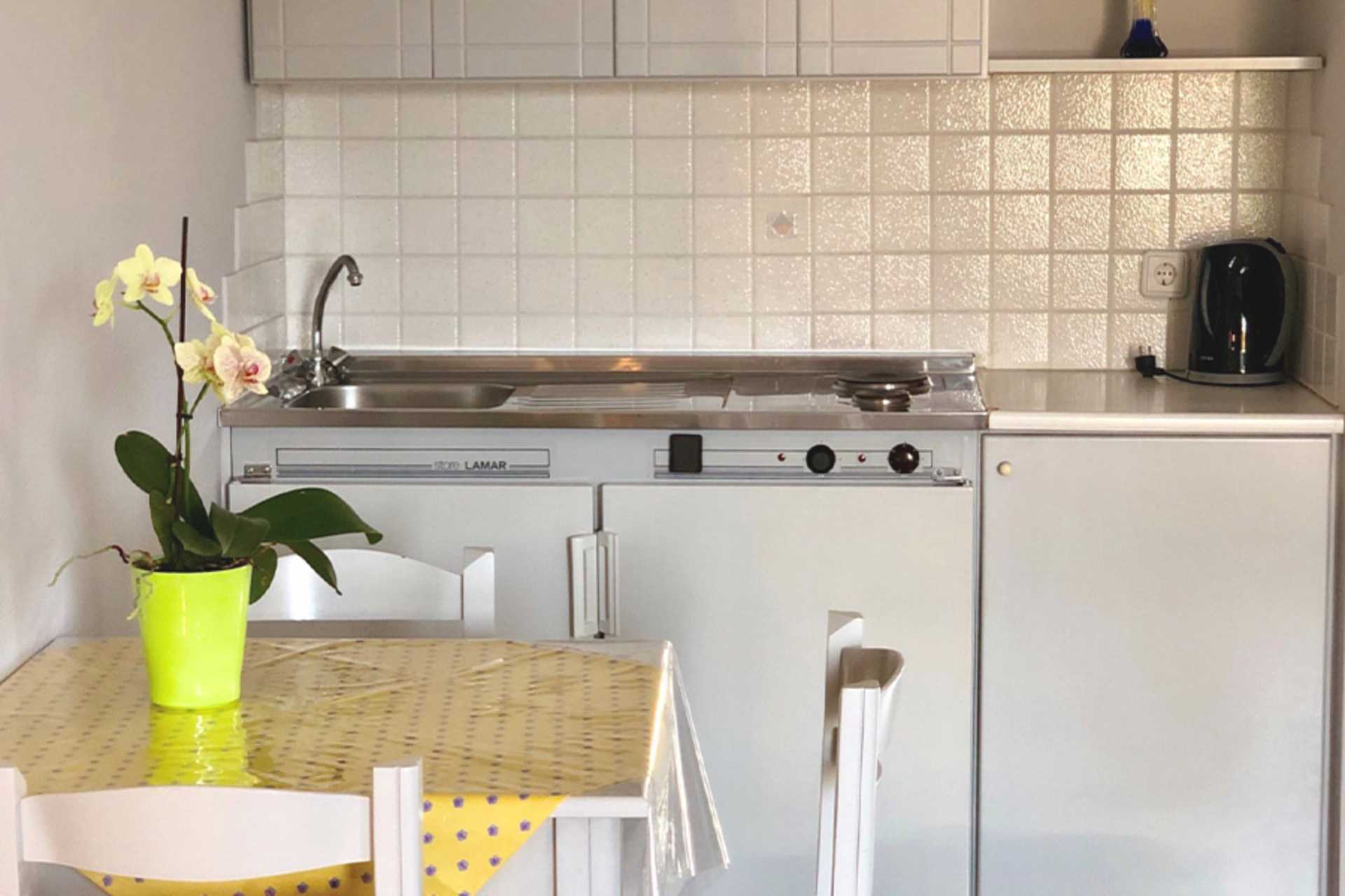 Enrumslägenhet med balkong eller terrass. Kombinerat sovrum med minikök. En enkelsäng eller två enkelsängar. Möjlighet till extrabädd i bäddsoffa. Minikök med kokplattor, kylskåp, kaffebryggare, vattenkokare och enkel köksutrustning. Wifi ingår. Deponering och luftkonditionering mot avgift. Strykjärn. Badrum med badkar eller dusch samt wc. Städning 6 ggr/vecka.