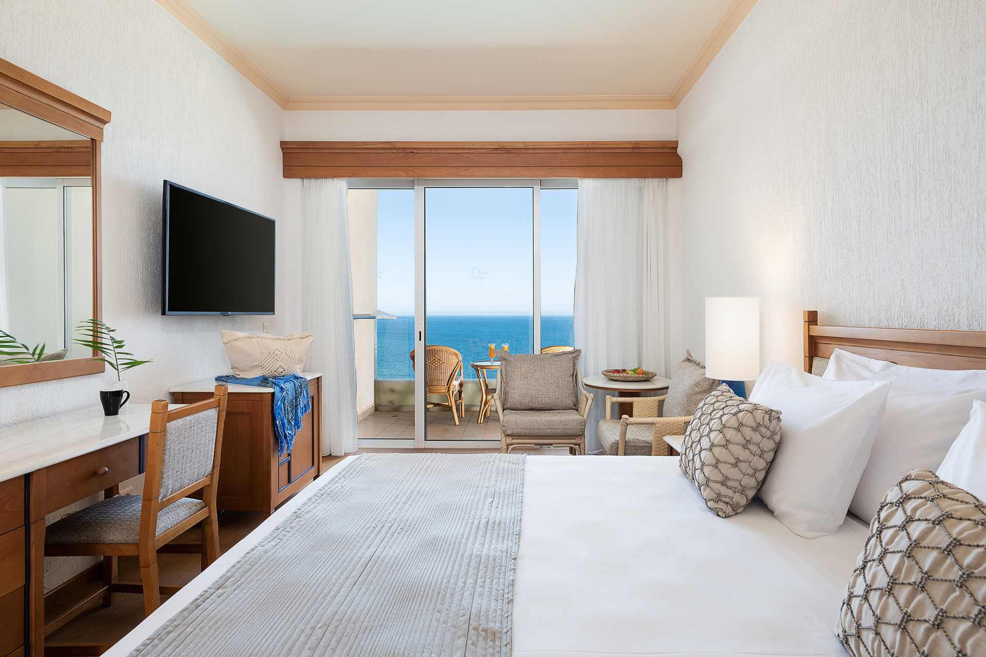 Superiorrum med balkong och havsutsikt. Åldersgränsen för att bo i den här rumstypen är 16 år. En dubbelsäng. Wifi, luftkonditionering och deponering ingår. Minibar mot avgift. Vattenkokare samt kaffe och te. Tv med internationella kanaler. Badrockar och tofflor. Hårtork. Badrum med badkar och wc. Städning 7 ggr/vecka. Barn under två år räknas in i maxantalet personer i rummet.