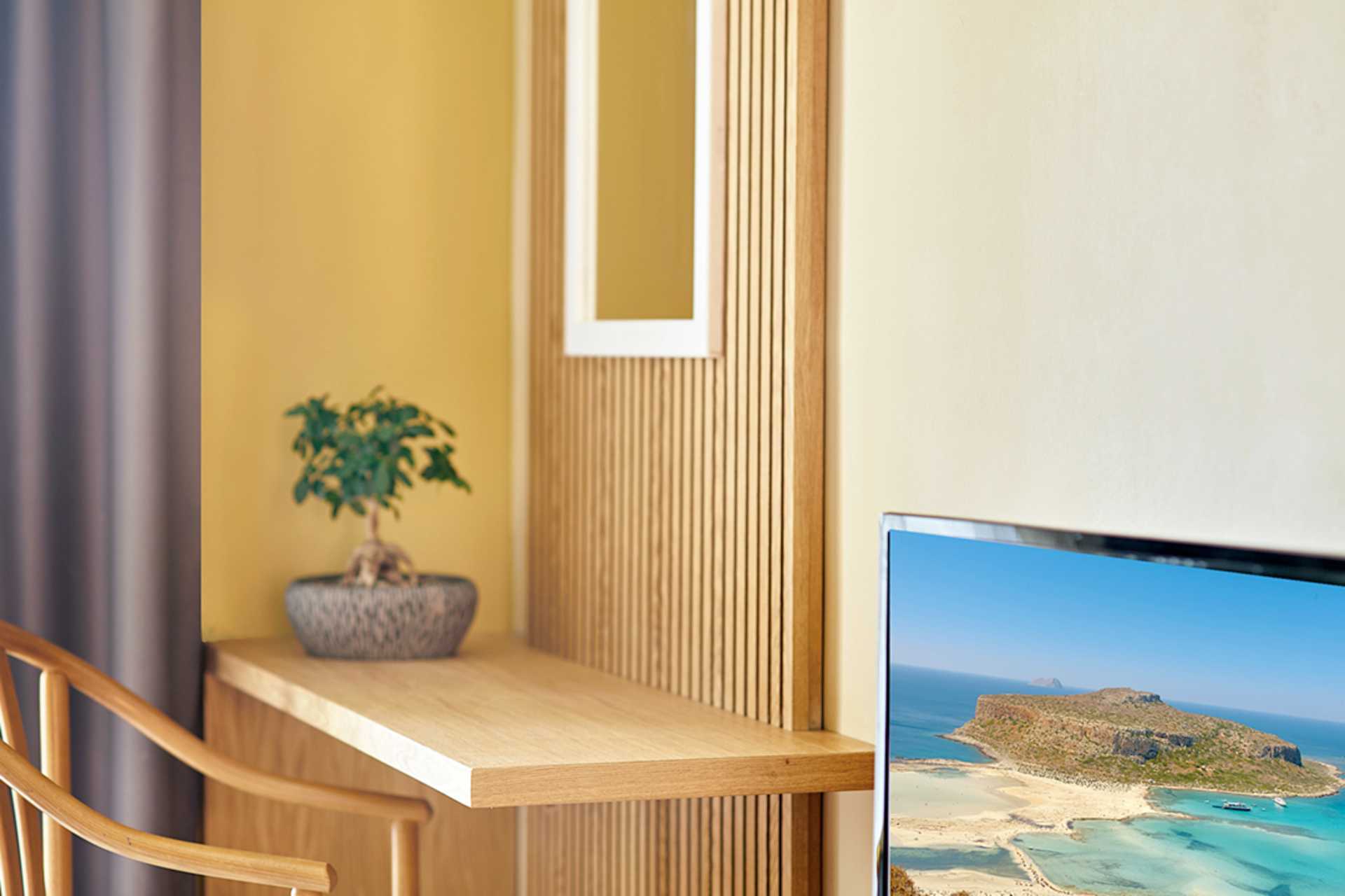 Tvårumslägenhet med balkong eller markbalkong, vissa med poolutsikt. Sovrum och kombinerat vardagsrum/minikök. I vissa lägenheter förekommer nivåskillnader med några trappsteg. Två enkelsängar. Möjlighet till extrabäddar i två bäddsoffor. Minikök med kokplattor, kylskåp, kaffebryggare, mikrovågsugn, vattenkokare, brödrost och enkel köksutrustning. Wifi, luftkonditionering och deponering ingår. Tv med internationella kanaler. Hårtork. Badrum med badkar eller dusch samt wc. Städning 6 ggr/vecka.