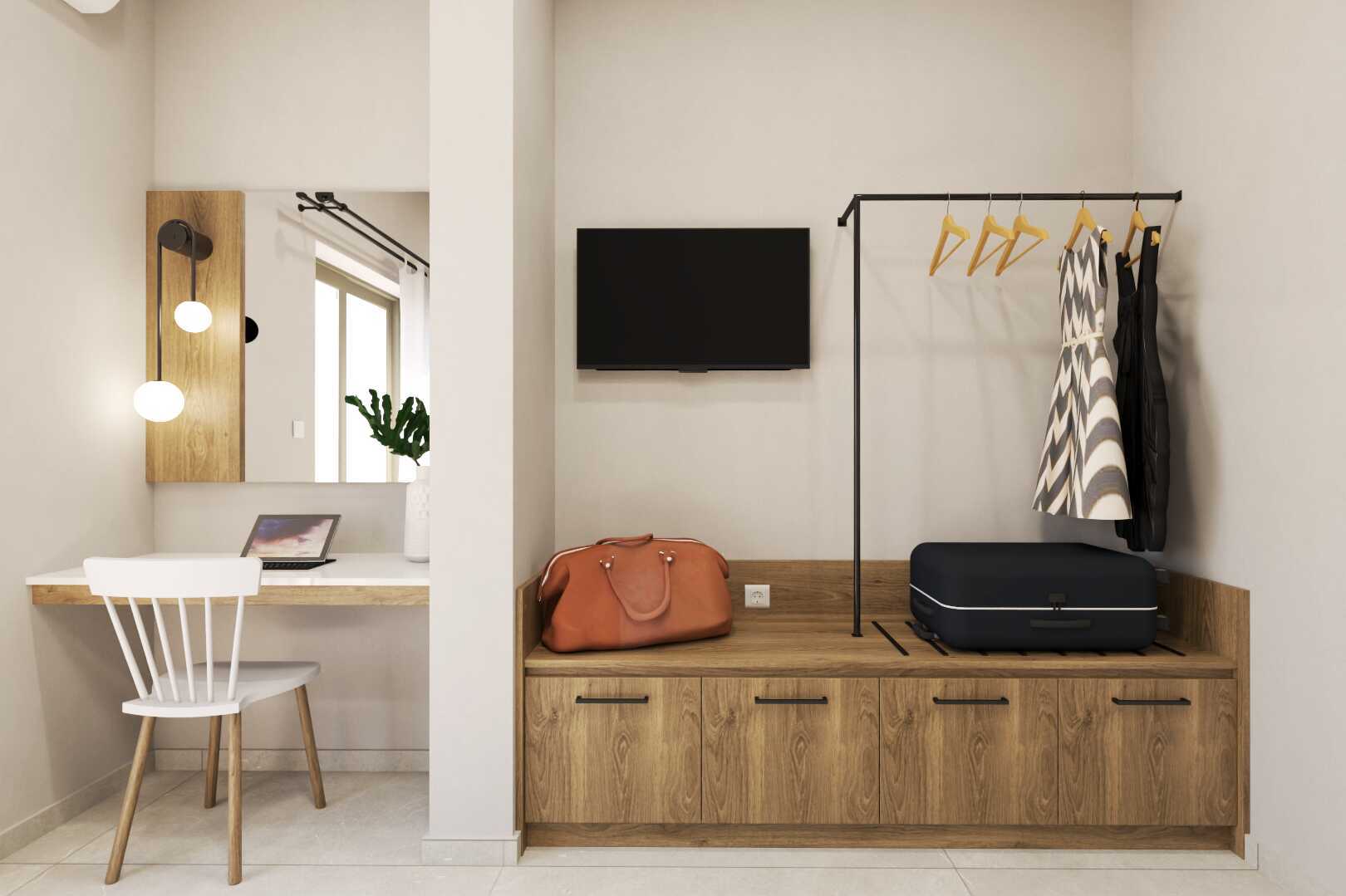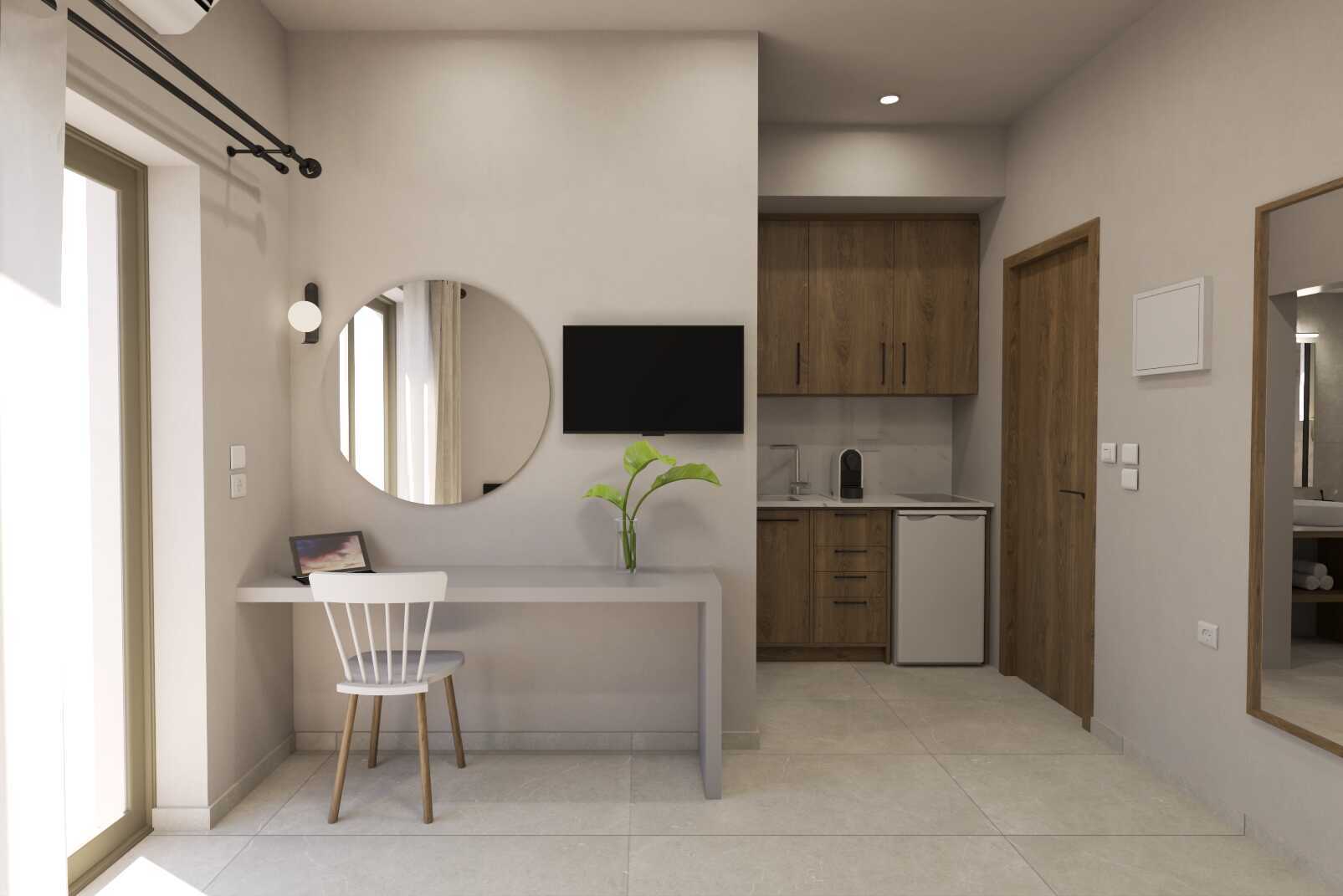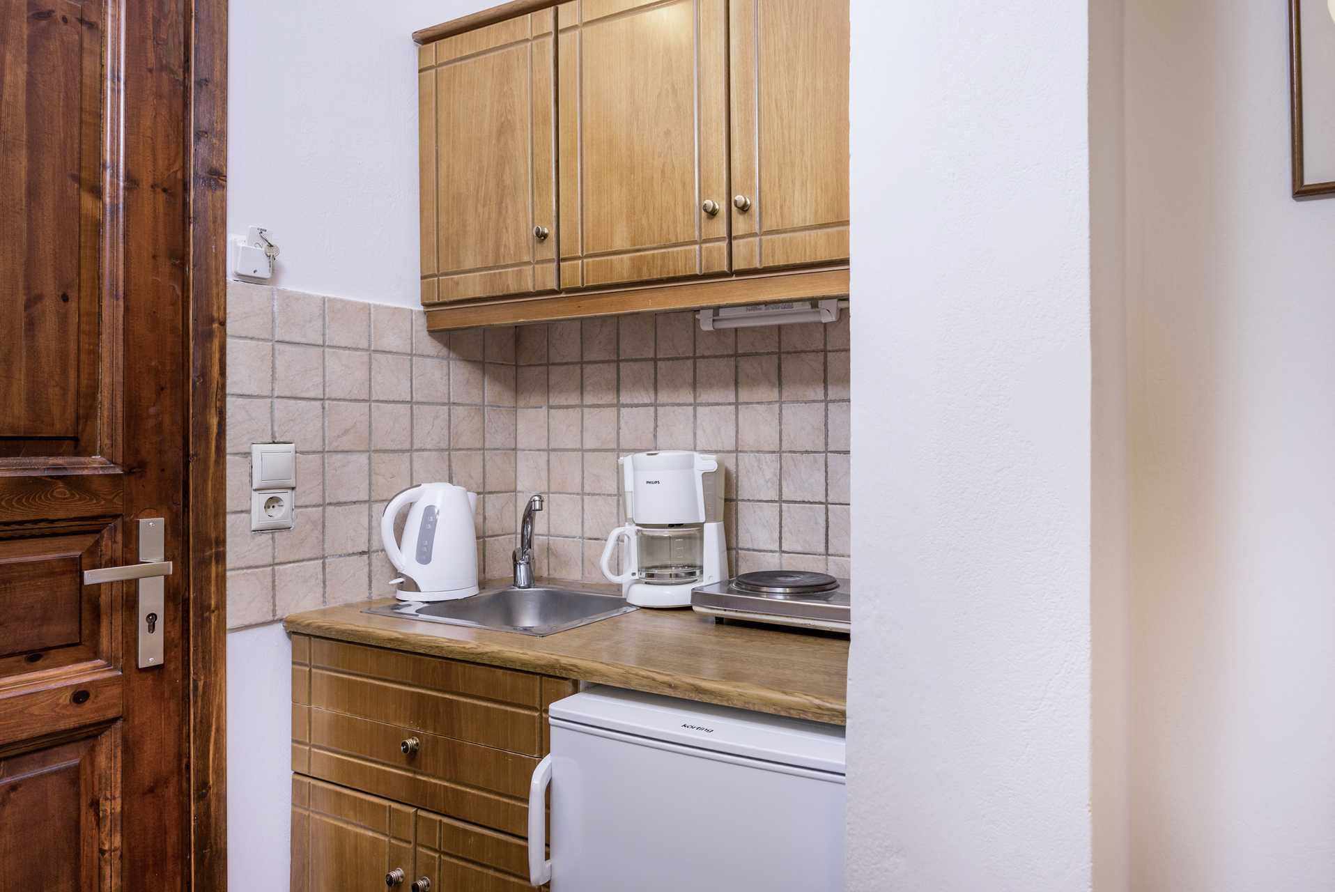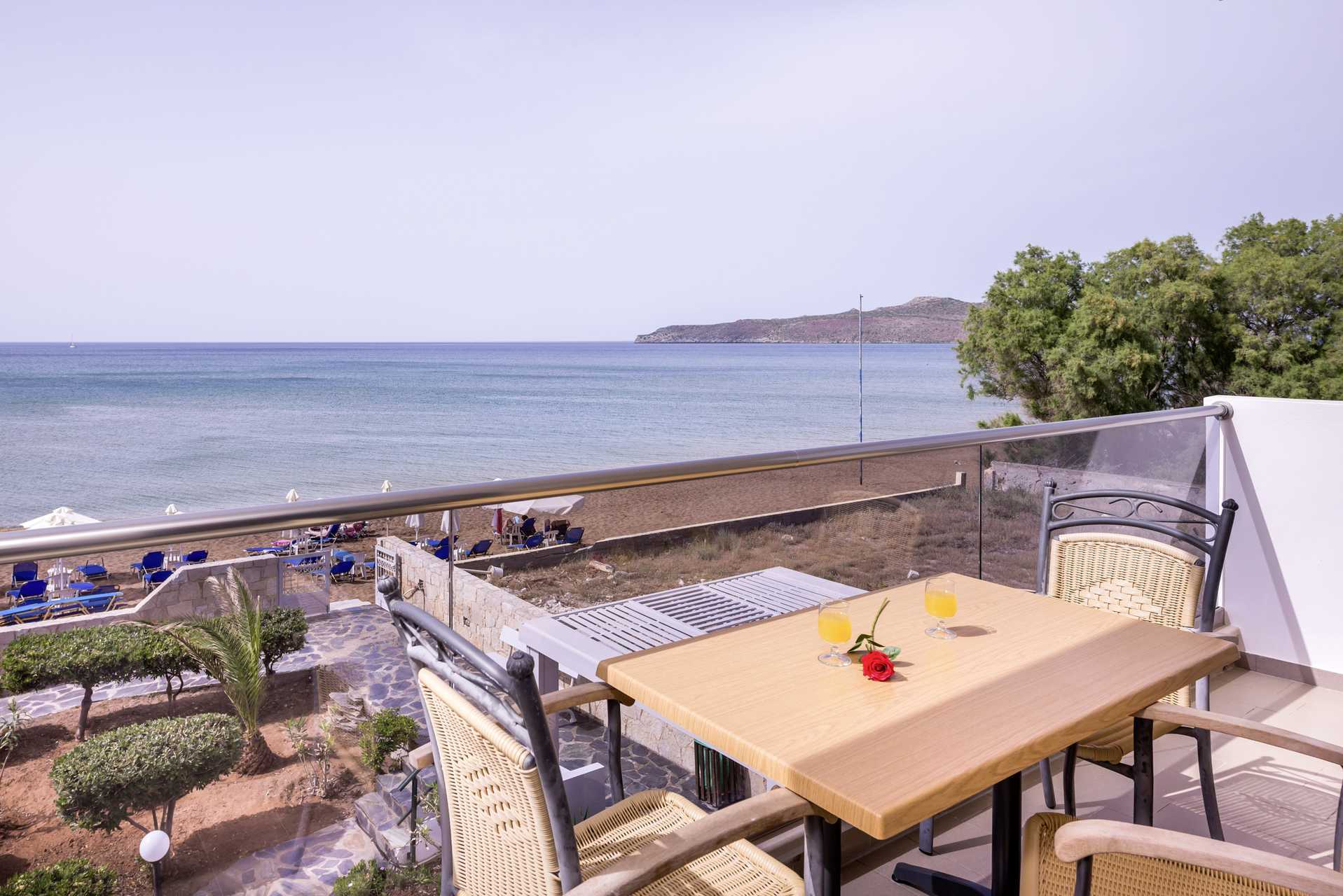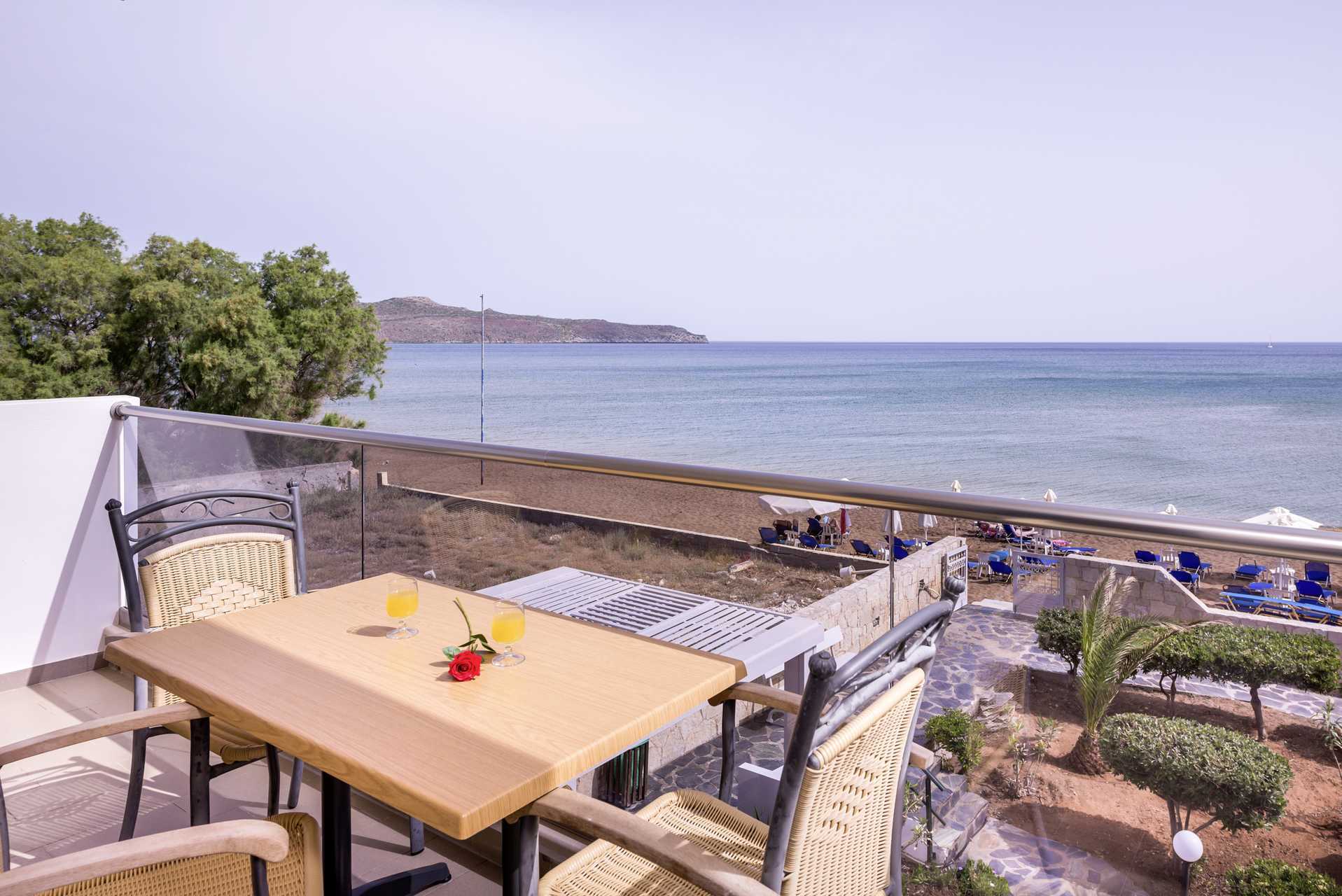 Enrumslägenhet med balkong eller markbalkong, vissa med havsutsikt eller begränsad havsutsikt. Myggnät i balkongdörrarna. Kombinerat sovrum med vardagsrum och minikök. Två enkelsängar. Möjlighet med extrabädd i bäddsoffa. Minikök med kokplattor, kylskåp, kaffebryggare, vattenkokare och enkel köksutrustning. Matplats på balkongen. Wifi, luftkonditionering och deponering ingår. Tv med internationella kanaler. Badrum med dusch och wc. Städning 6 ggr/vecka.