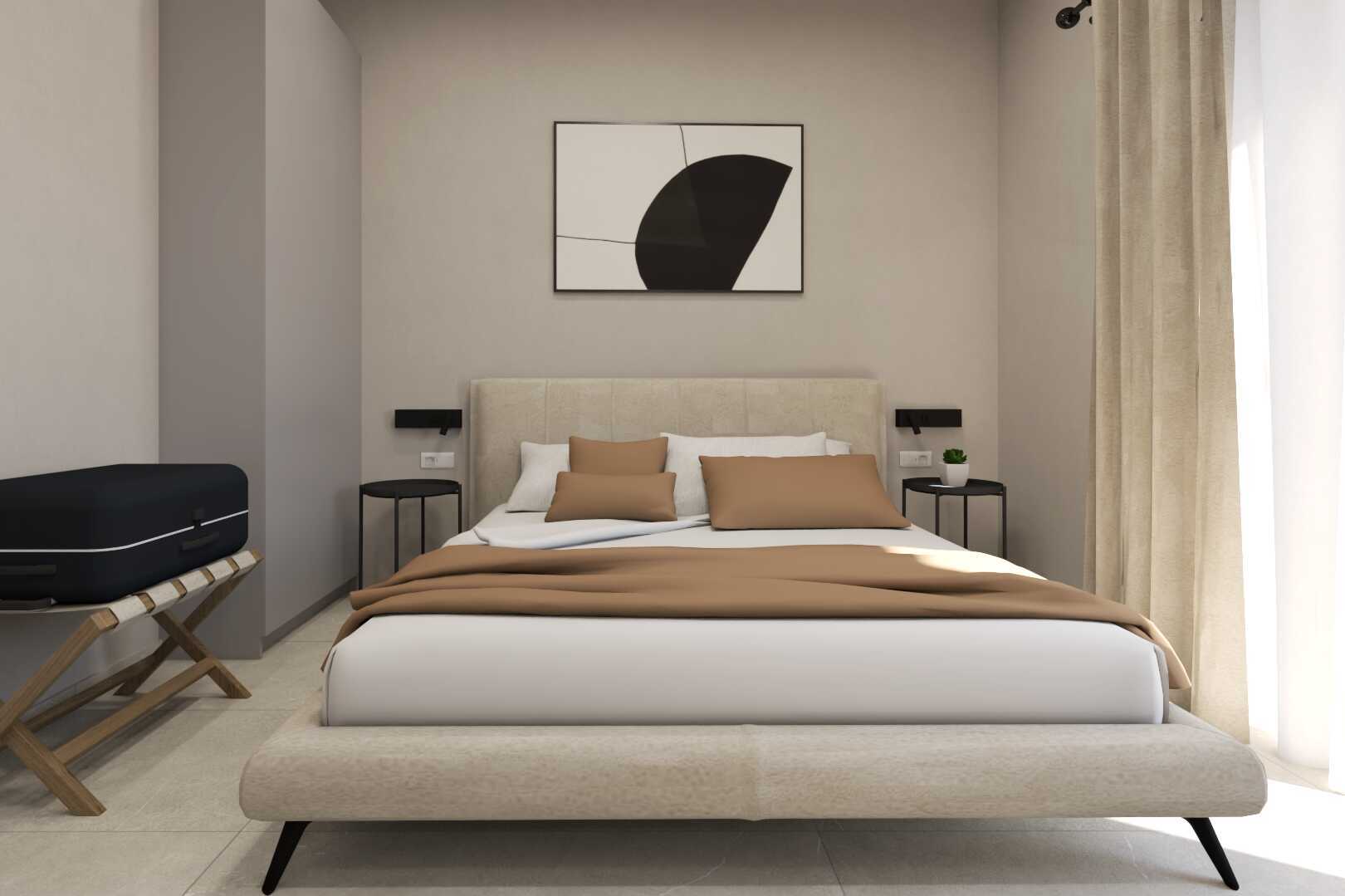Tvårumslägenhet med balkong eller markbalkong, vissa med havsutsikt. Myggnät i balkongdörren. Två sovrum som förbinds av en liten hall med minikök, kokplattor, kaffebryggare, vattenkokare, kylskåp och enkel köksutrustning. Matplats på balkongen/markbalkongen. Två enkelsängar i varje sovrum. Wifi, luftkonditionering och deponering ingår. Tv med internationella kanaler. Badrum med dusch och wc. Städning 6 ggr/vecka.