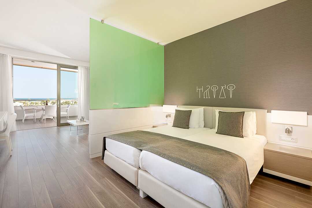 Deluxerum med balkong eller terrass, vissa med poolutsikt. En dubbelsäng eller två enkelsängar. Möjlighet till extrabädd i bäddsoffa. Wifi, luftkonditionering och deponering ingår. Minibar mot avgift. Vattenkokare samt kaffe och te. Tv med internationella kanaler. Hårtork. Badrockar och tofflor. Badrum med badkar, separat dusch samt wc. Städning 7 ggr/vecka. Barn under två år räknas in i max antal personer i rummet.