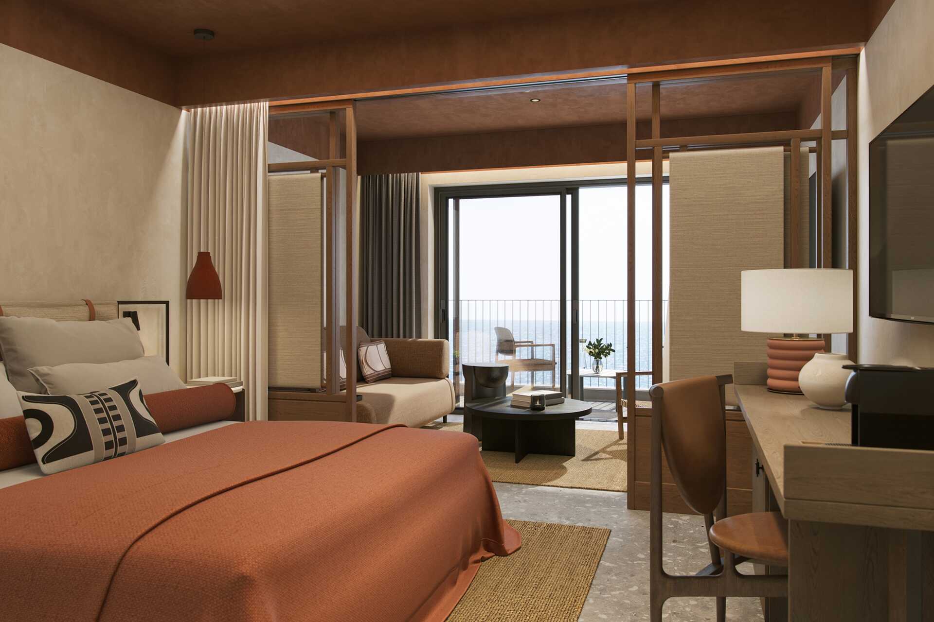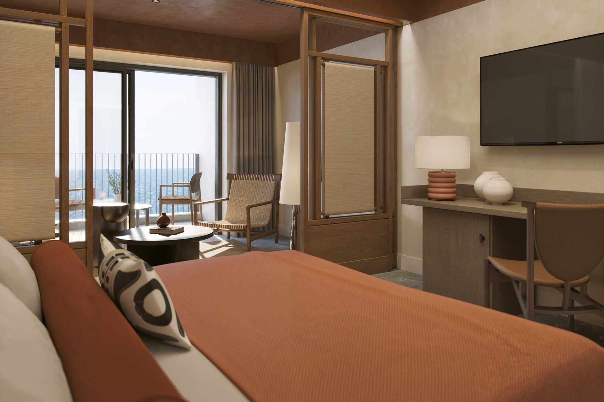 Juniorsvit med balkong eller terrass, vissa med havsutsikt. Rummet kan separeras till två delar med en skjutdörr. En dubbelsäng. Möjlighet till extrabädd i bäddsoffa. Wifi, deponering och luftkonditionering ingår. Litet kylskåp. Vattenkokare samt kaffe och te. Tv med internationella kanaler. Badrockar och tofflor. Hårtork. Badrum med dusch. Städning 7 ggr/vecka. Barn under två år rääkns in i max antal personer i rummet.