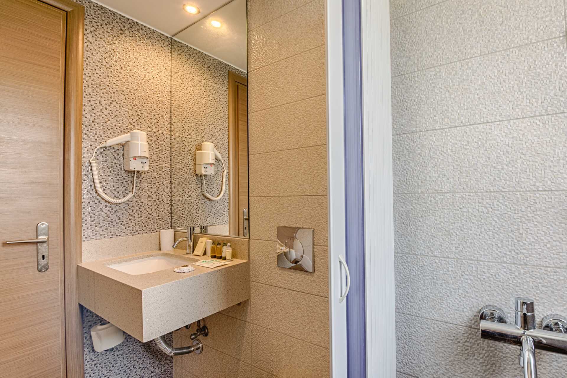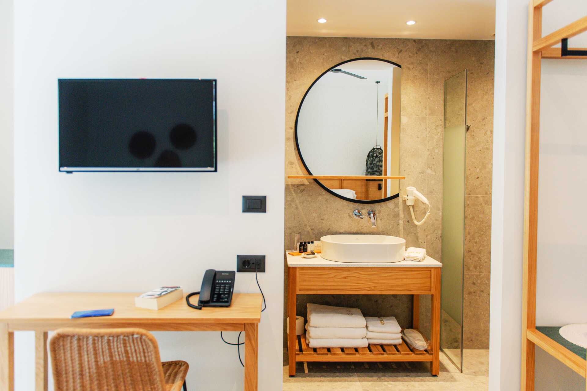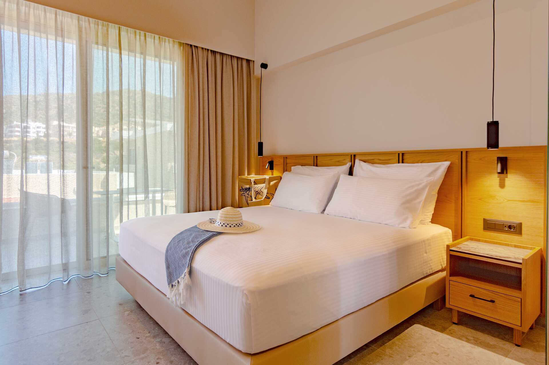 Superiorrum med balkong eller terrass. En dubbelsäng. Wifi, luftkonditionering och deponering ingår. Kylskåp. Vattenkokare. Tv med internationella kanaler. Hårtork. Badrum med dusch och wc. Städning 6 ggr/vecka.