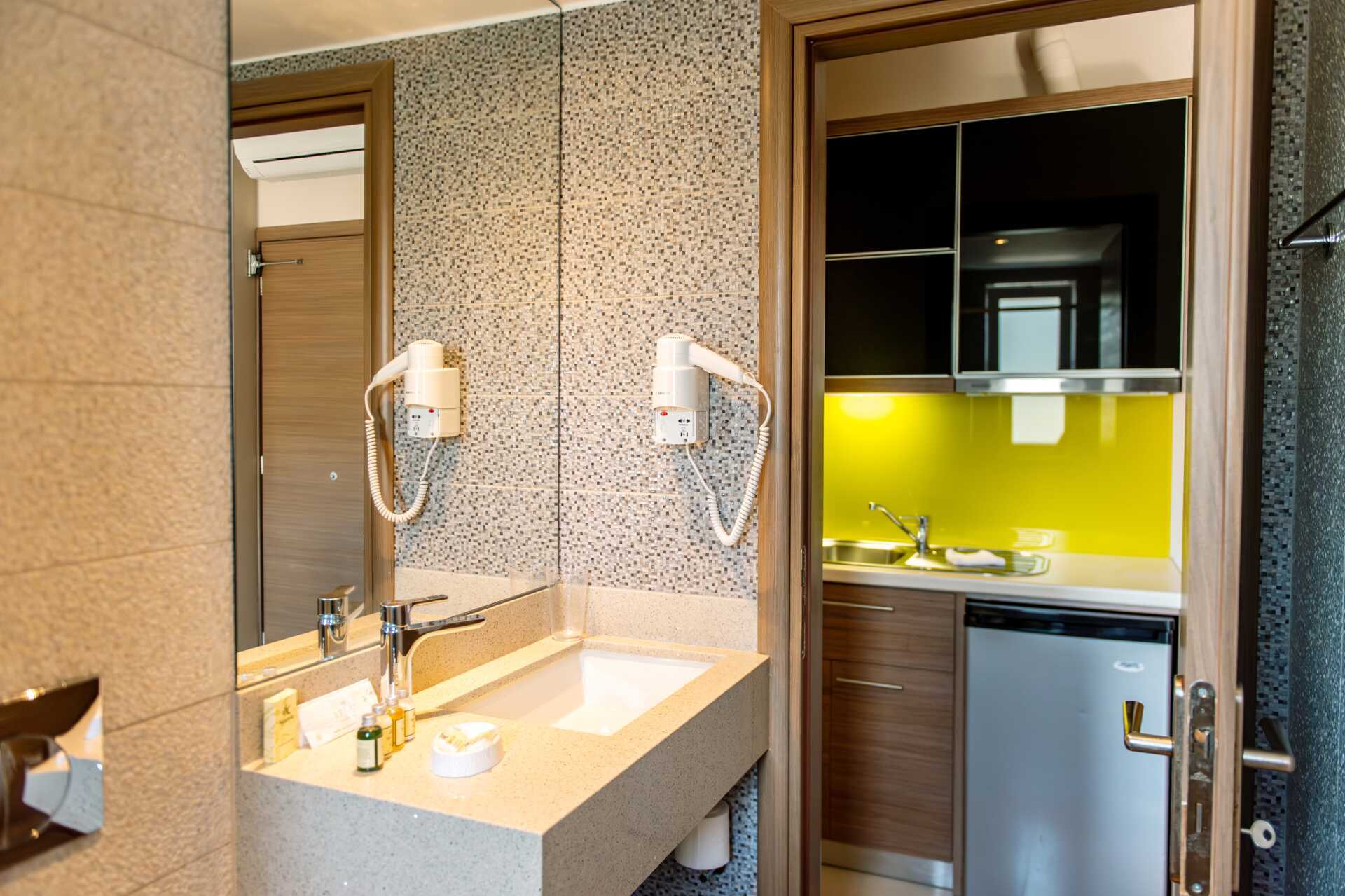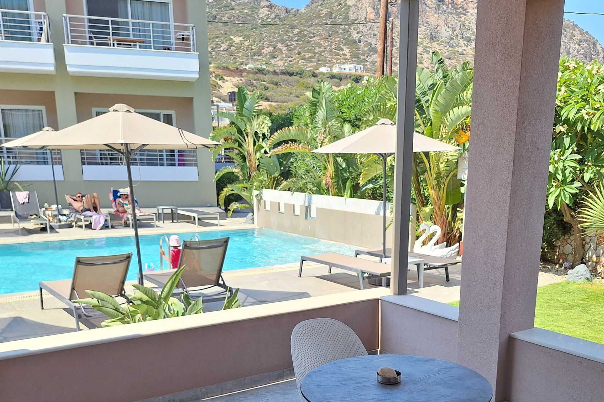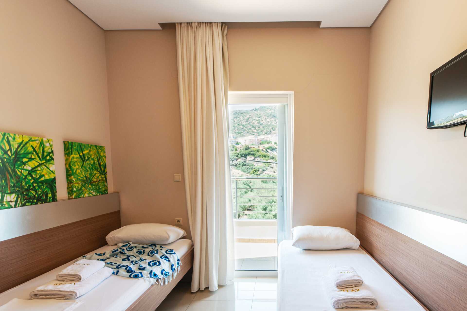 Enrumslägenhet superior med balkong eller terrass. Sovrum kombinerat med minikök. En dubbelsäng. Möjlighet till extrabädd i bäddsoffa. Minikök med kokplattor, kylskåp, vattenkokare och enkel köksutrustning. Wifi, luftkonditionering och deponering ingår. Tv med internationella kanaler. Hårtork. Badrum med dusch och wc. Städning 6 ggr/vecka.